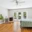Large picture windows flood the interiors with soft garden light and frame the tranquil landscape from nearly every room. A generous terrace balcony with double doors overlooks the flowering treetops and expansive yard—easily spacious enough to accommodate a generous sized pool.