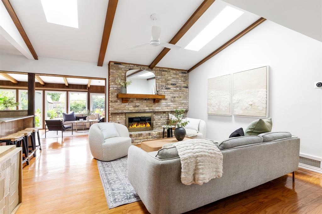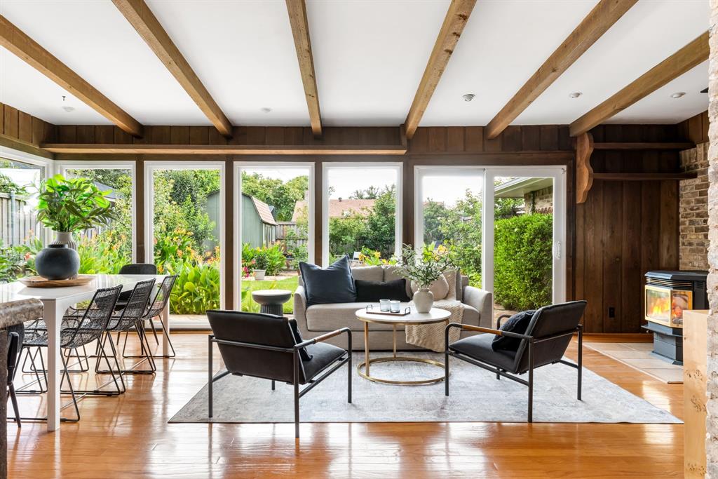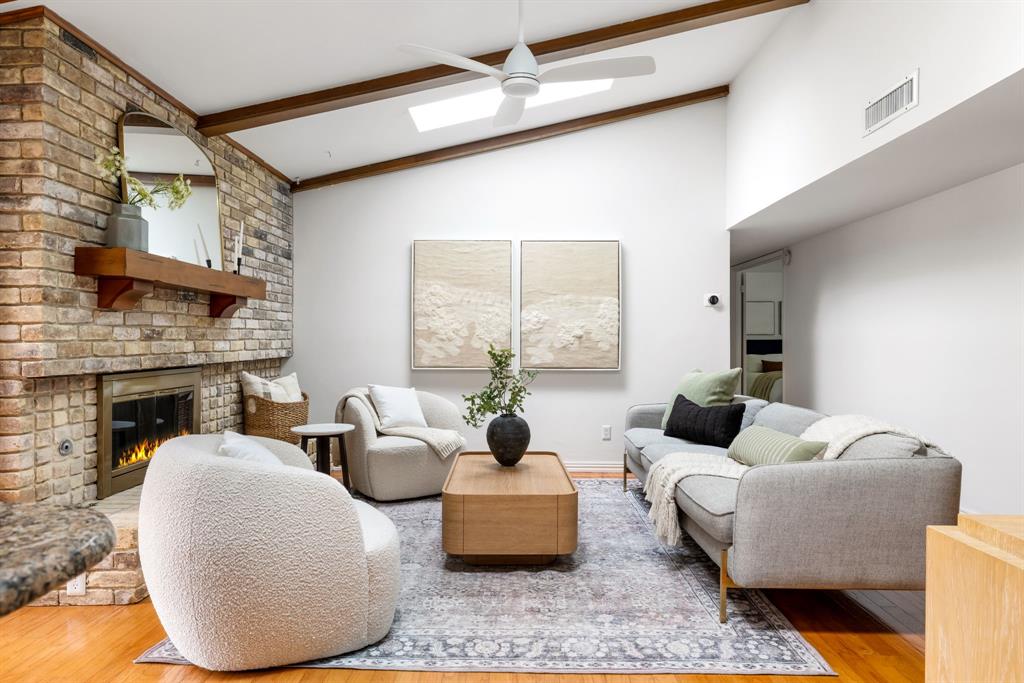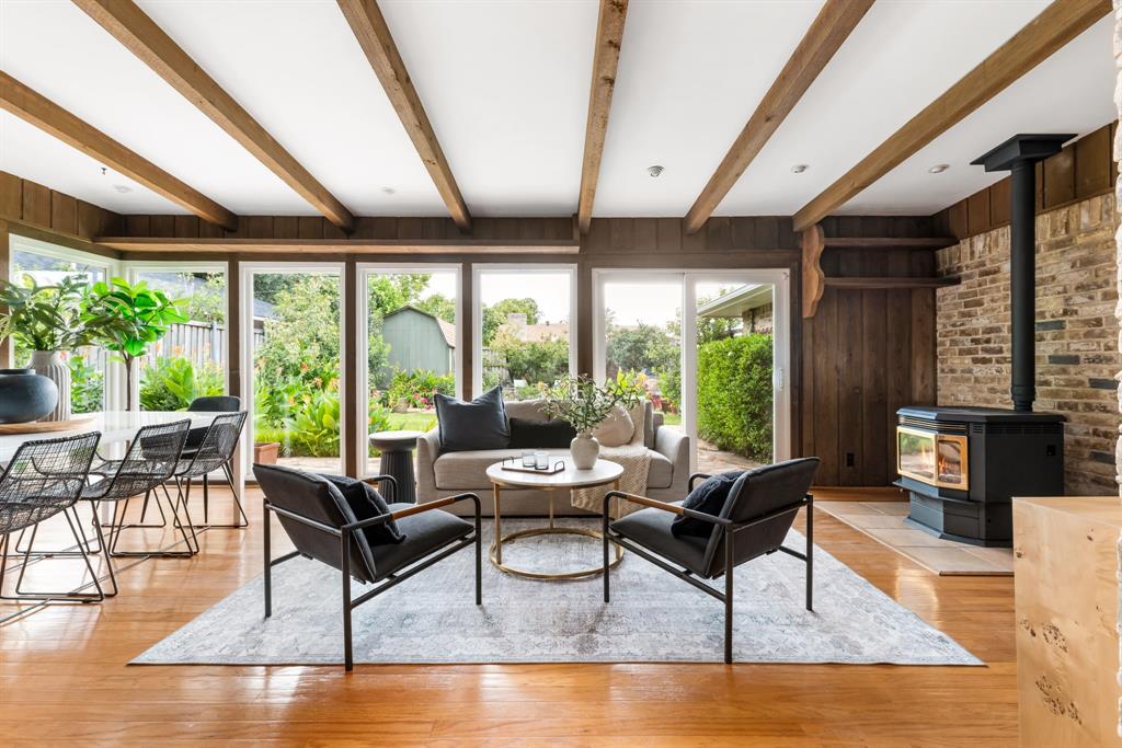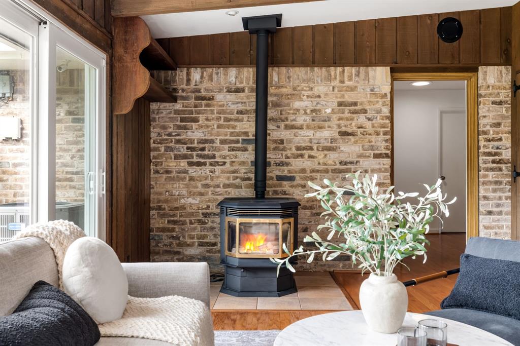 Meticulously maintained and located in the sought-after Bradford Estates neighborhood! This 3 bedroom, 2 bathroom home is a true gem, featuring warm and inviting wood detailing and gorgeous beamed ceilings. Two separate living areas provide ample flexibility, one centered around a cozy brick fireplace and the other, with its pellet stove, offering tranquil views of the backyard. The functional floorplan is also equipped with two dining areas, perfect for entertaining or utilizing one as a dedicated home office with its new carpet in 2025. The private spaces are equally impressive, boasting a tastefully renovated primary bath in 2018 and secondary bath in 2019. The effortless elegance extends to the backyard, where a handsome stone patio with built-in barbecue grill and landscape lighting awaits. To top it all off, the list of upgrades is simply incredible. The home is secured by 38 foundation support piers, updated PEX plumbing, and impact-resistant Class-4 Timberline roof. Enjoy peace of mind with a 2022 high-efficiency LEED Silver HVAC system, Aprilaire 1410 air cleaner, and energy-efficient Simonton windows with a lifetime warranty. All this plus an updated alarm panel replaced in 2025, 8-camera home surveillance system, and a steel insulated, quiet-drive garage door. Conveniently located with easy access to shopping, dining, and just minutes from Bachman Lake Park. An opportunity like this is rare, schedule your showing TODAY!