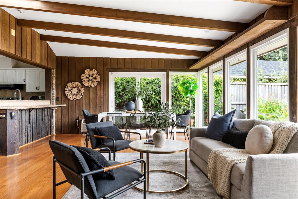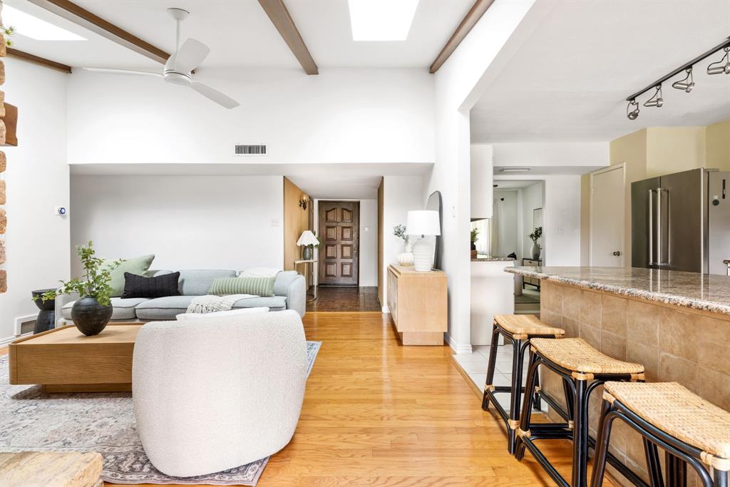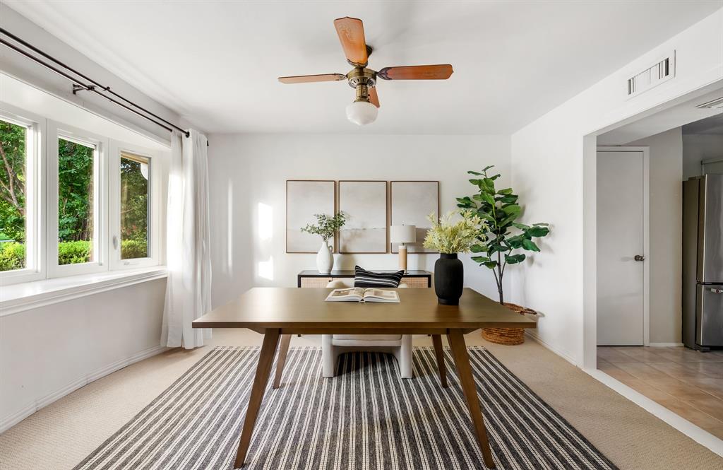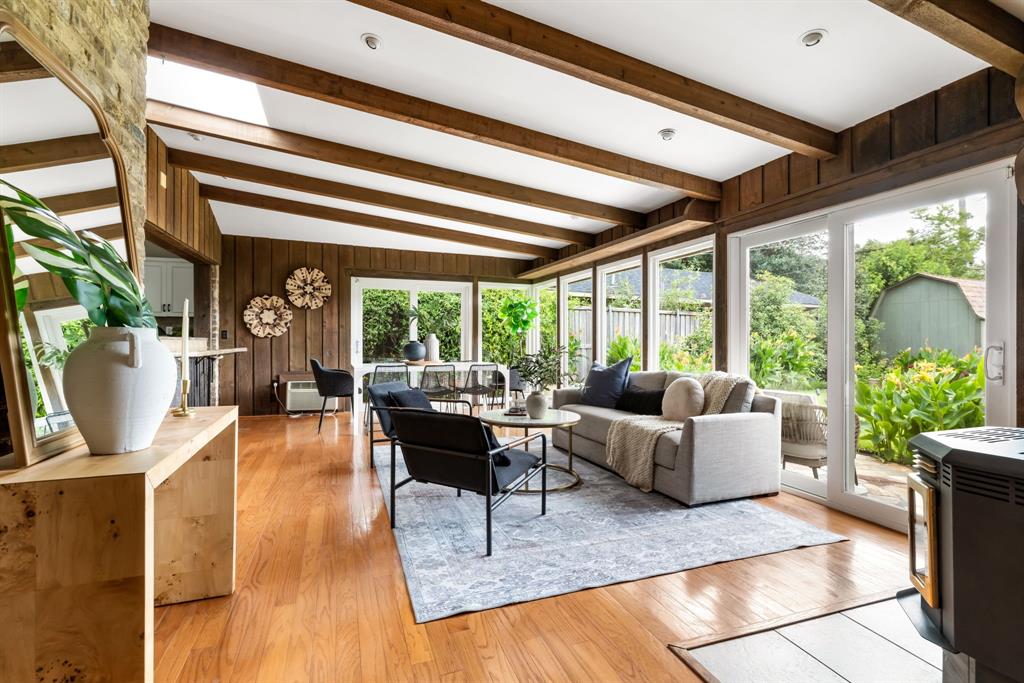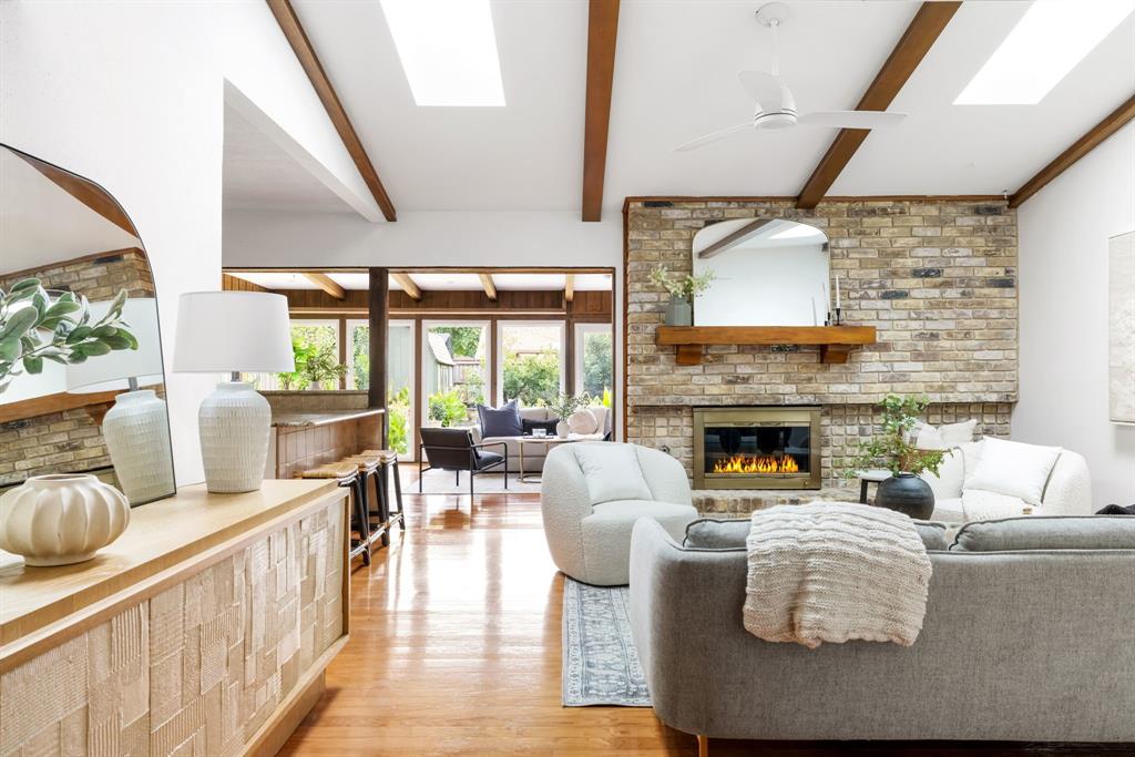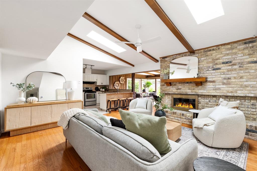 Meticulously maintained and located in the sought-after Bradford Estates neighborhood! This 3 bedroom, 2 bathroom home is a true gem, featuring warm and inviting wood detailing and gorgeous beamed ceilings. Two separate living areas provide ample flexibility, one centered around a cozy brick fireplace and the other, with its pellet stove, offering tranquil views of the backyard. The functional floorplan is also equipped with two dining areas, perfect for entertaining or utilizing one as a dedicated home office with its new carpet in 2025. The private spaces are equally impressive, boasting a tastefully renovated primary bath in 2018 and secondary bath in 2019. The effortless elegance extends to the backyard, where a handsome stone patio with built-in barbecue grill and landscape lighting awaits. To top it all off, the list of upgrades is simply incredible. The home is secured by 38 foundation support piers, updated PEX plumbing, and impact-resistant Class-4 Timberline roof. Enjoy peace of mind with a 2022 high-efficiency LEED Silver HVAC system, Aprilaire 1410 air cleaner, and energy-efficient Simonton windows with a lifetime warranty. All this plus an updated alarm panel replaced in 2025, 8-camera home surveillance system, and a steel insulated, quiet-drive garage door. Conveniently located with easy access to shopping, dining, and just minutes from Bachman Lake Park. An opportunity like this is rare, schedule your showing TODAY!