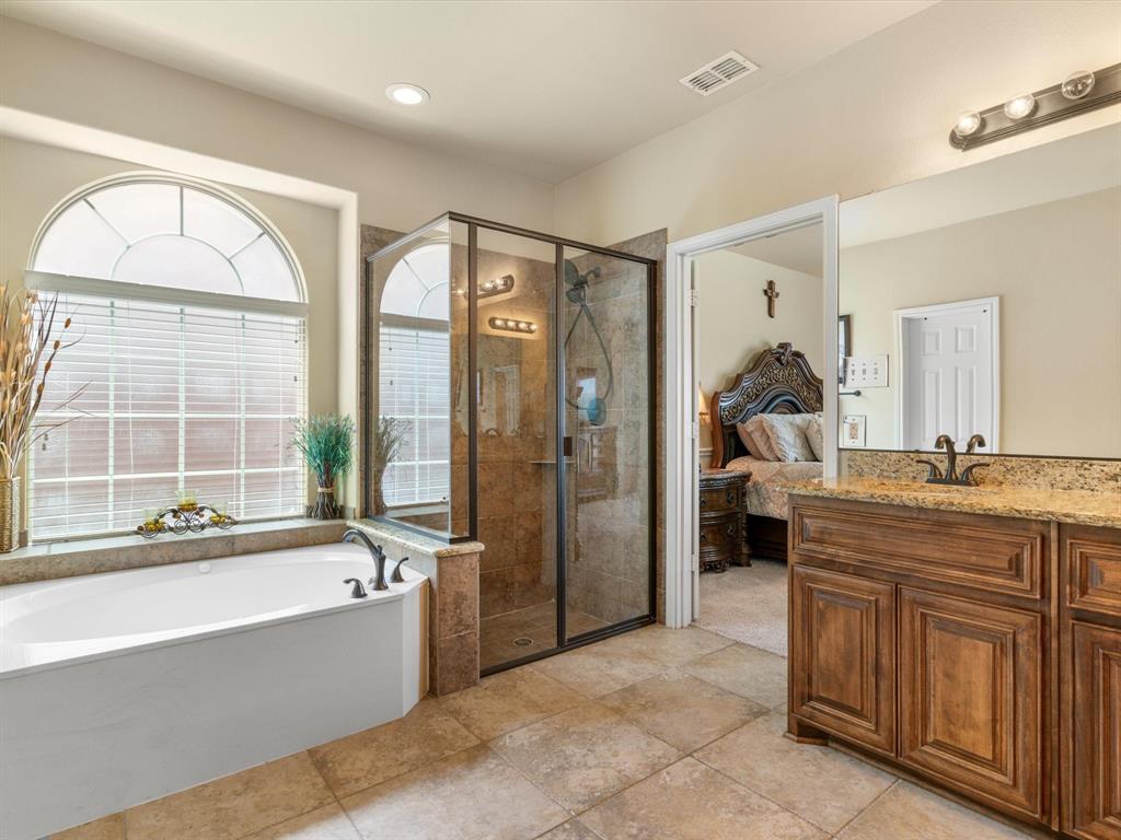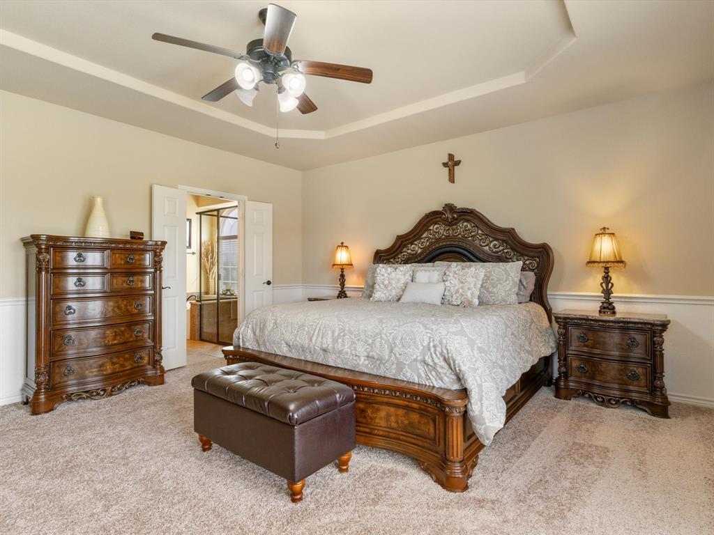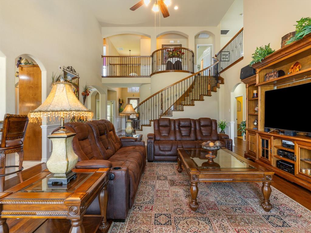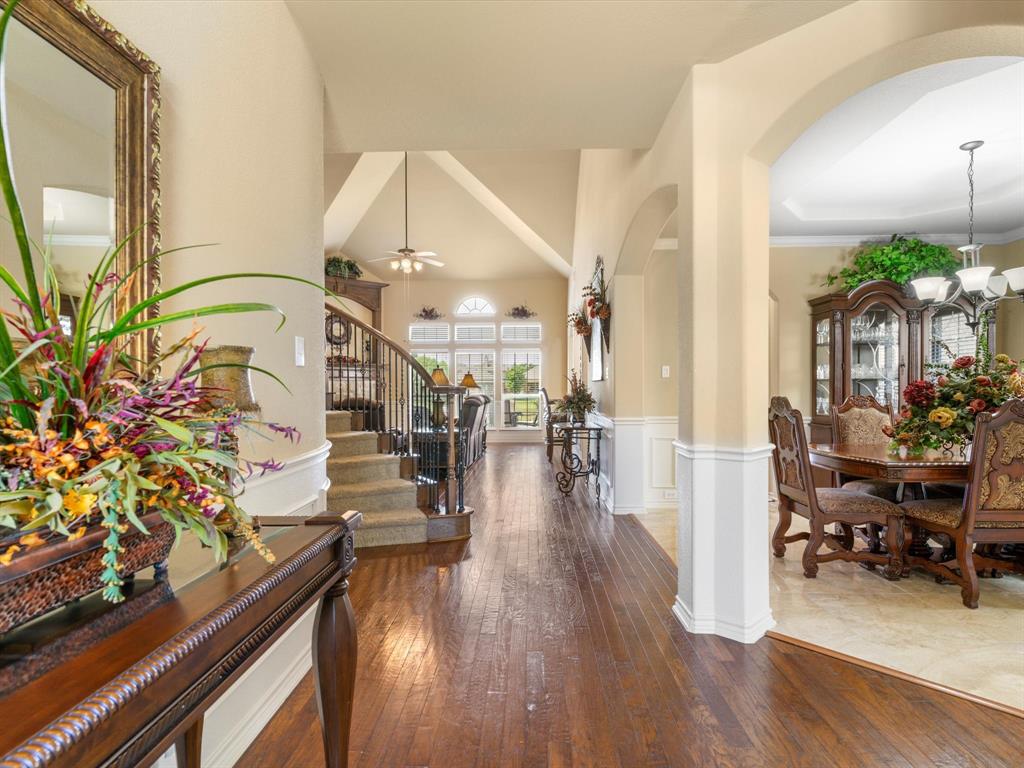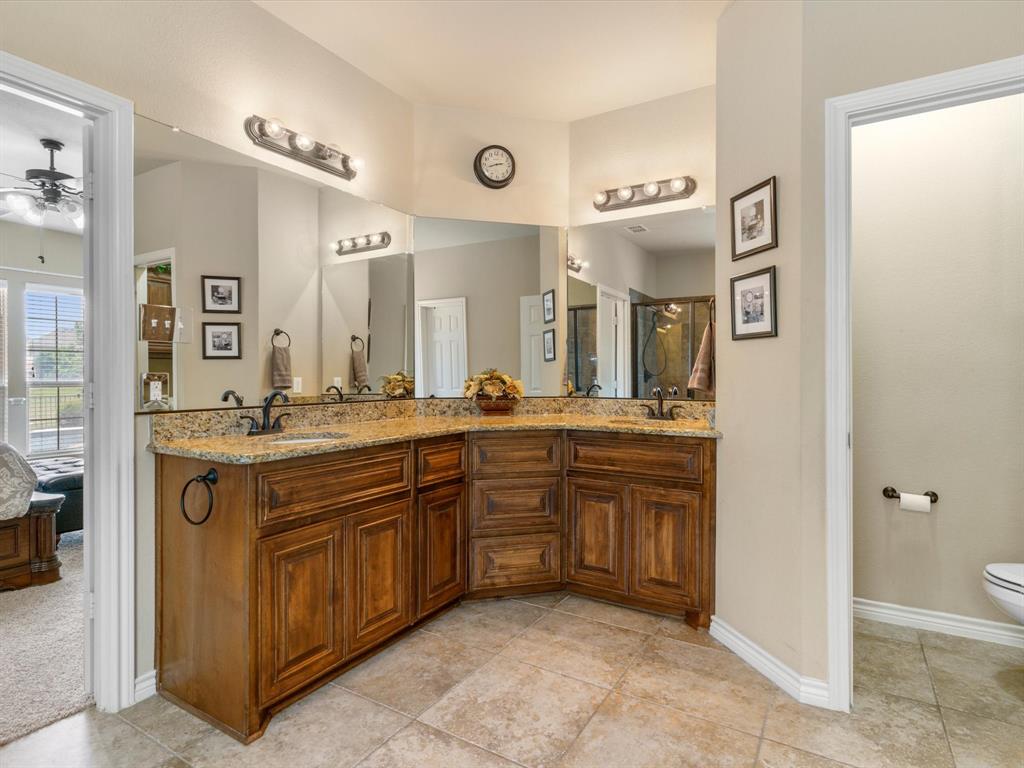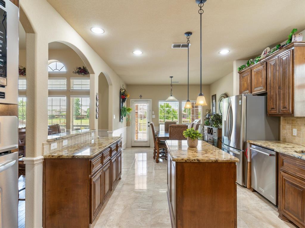 This beautifully maintained 5 bedroom, 4 bathroom home offers the perfect blend of luxury, functionality, and style. Nestled on a premium lot backing to a scenic community greenbelt with a peaceful pond and fountain, this property delivers unmatched views and privacy. Step inside to soaring ceilings, rich hardwood floors, elegant wainscoting, and an open concept layout flooded with natural light. The heart of the home features a chef’s kitchen with solid wood cabinetry, double ovens, a gas cooktop, and a spacious butler’s pantry perfect for entertaining. The formal dining room and dedicated office provide both sophistication and practicality. The upstairs media room is a true cinematic experience with 7.1 surround sound, stadium seating, and a mini kitchen for movie night snacks. The game room features built-in desks and custom cabinetry ideal for homework or hobbies. Retreat outdoors to your private oasis complete with a covered patio, full outdoor kitchen, sparkling swimming pool, hot tub, cozy fire pit, and lush landscaping all overlooking the tranquil greenbelt. Additional highlights include spacious walk in closets throughout, 3 car garage with a large tornado shelter, tankless gas water heaters, built-in sound system, and beautiful architectural details throughout. This home is a rare find with room for everyone and every occasion. Come experience the perfect balance of everyday comfort and elevated living! Youtube 2832 Stackhouse for a full video walkthrough.
