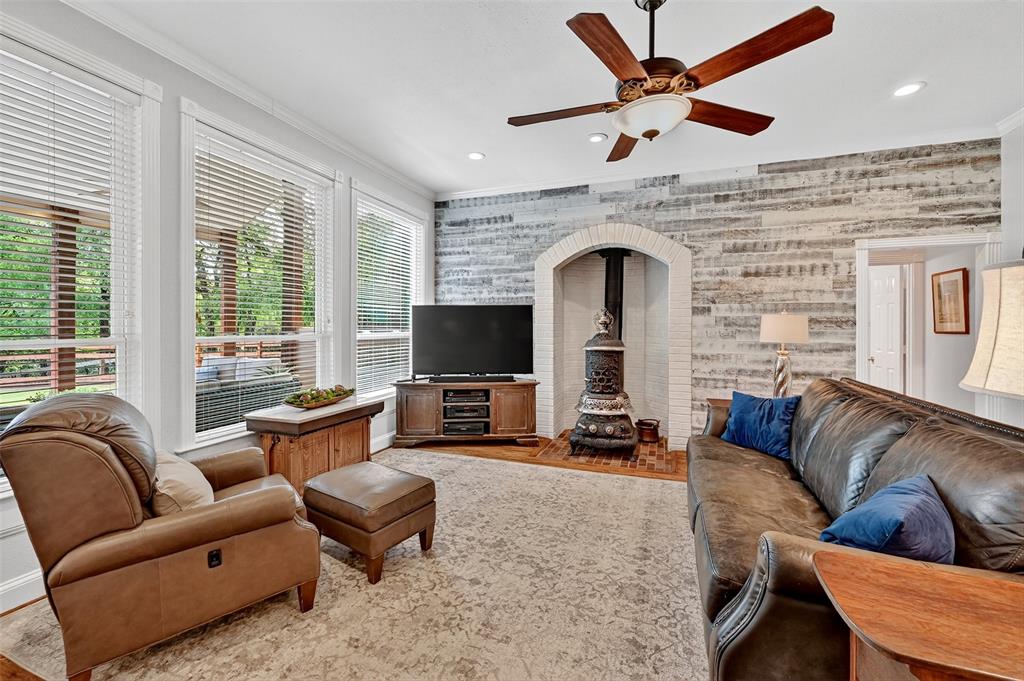 Incredible 7.47-acre Horse Property near the Denton Greenbelt nestled just north of Lake Lewisville & minutes from Denton, 0ffering a rare blend of peaceful country living with convenient access to everything you need. Fully fenced with pipe & no-climb, shaded pecan tree pasture & stocked pond-ideal for wildlife & relaxing afternoons. Horse lovers will appreciate the sandy loam soil, four-stall barn with a tack room & wash rack, approx. 70x130 riding arena with room to extend. Two hay & equipment storage sheds provide ample space. Spacious 3800 sq ft. 4 bed, 3.5 updated baths, three living areas, formal dining room, two offices, sunroom offering amazing sunset views. Remodeled kitchen is a chefs dream, with quartzite countertops, stainless steel appliances, breakfast nook, butlers pantry & walk-in pantry for abundant storage. Cozy up in the family room around the wood-burning stove during cool Texas evenings. Primary bedroom suite is currently located upstairs, a main-level primary suite could be created with minor modifications to suit your lifestyle. 26x35 insulated metal garage-workshop on concrete with a 12-ft lean-to & 30-amp covered trailer parking, new pipe & no-climb fencing throughout -2024, cedar fencing in the backyard, pressure-treated retaining wall, maintained pasture, driveway with new river rock stone. Home has been updated over the years with vinyl windows. Three heat pump systems -2021 & 2025, All baths remodeled, Hot water heaters replaced within the last five years, garage door & Bluetooth wall-mounted opener, wall-mounted cabinets & epoxy floors -2024, Hardie Board siding. Ag exemption. Located in desirable Aubrey ISD. Offers quick, easy access to Hwy 380, I-35, Denton, Lake Ray Roberts, & Lake Lewisville, providing a perfect balance of tranquility & convenience. Whether you’re a serious equestrian, a nature lover, or simply looking for a beautiful country retreat. This remarkable horse property is ready to welcome you home.