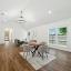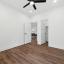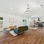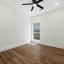 Step inside to find stylish laminate flooring throughout and an open-concept layout perfect for entertaining. The spacious kitchen features sleek granite countertops, dark tile flooring, and plenty of cabinet space—ideal for home chefs. The bedrooms are thoughtfully positioned for privacy and functionality: one near the entrance (perfect for a home office or guest room), two located off the living area, and the secluded primary suite tucked away at the back of the home for added peace and quiet.