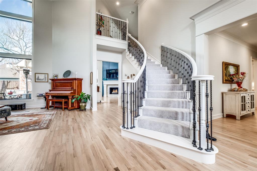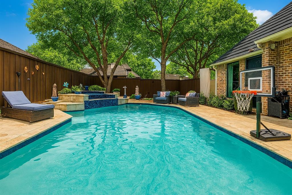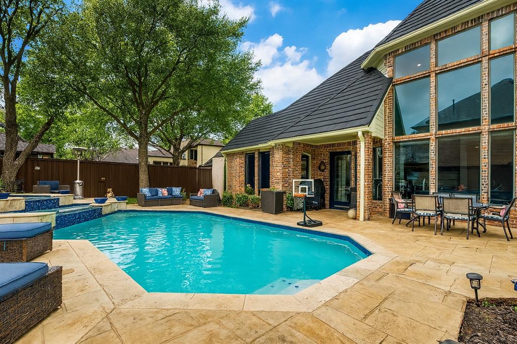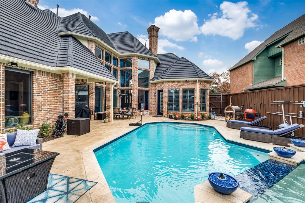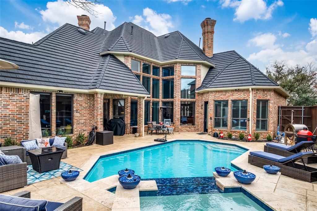 Refined sophistication meets everyday luxury at this striking custom home in the coveted Bent Tree North neighborhood. Set on a beautifully landscaped corner lot, this brick masterpiece makes a commanding first impression with its grand circular drive, towering arched entry, and meticulous curb appeal. Step inside and be immediately swept away by the soaring ceilings, sweeping staircase, and walls of glass bathing the home in natural light. Offering expansive, thoughtfully crafted interiors designed with elegance and functionality in mind, this home was designed for the buyer who demands elegance, functionality, and a bold sense of style. Rich hardwood floors flow throughout an open-concept layout that blends glamorous entertaining spaces with warm, livable comfort. The stunning living room is anchored by a show-stopping two-story marble fireplace and dramatic windows overlooking the backyard oasis. A modern lounge with custom bar and sleek feature wall makes the perfect spot to sip cocktails or unwind by the fire. The kitchen is both striking and functional, complete with quartz counters, premium stainless appliances, oversized island, wine fridge, and seamless flow into the family room. Retreat to the luxurious primary suite, where expansive windows, private patio access, and a spa-inspired bathroom with freestanding tub and dual vanities create your personal sanctuary. Upstairs, generously sized bedrooms and a game room-media space offer flexibility for work, play, or hosting. Step outside to the ultimate resort-style escape, complete with pool, spa, sun deck, and multiple lounge areas designed for unforgettable evenings under the Texas sky. Minutes from the Dallas North Tollway and zoned to Plano ISD, this is more than a home, it’s a lifestyle. Sophisticated. Edgy. Iconic. Welcome to 17515 Torrey Pine Dr.