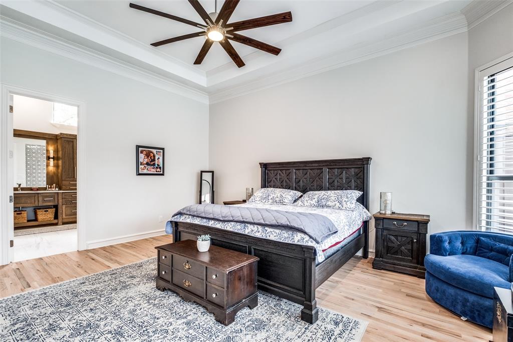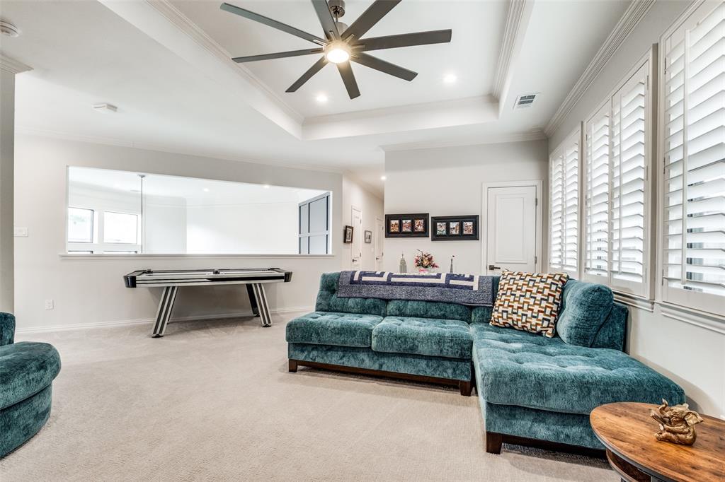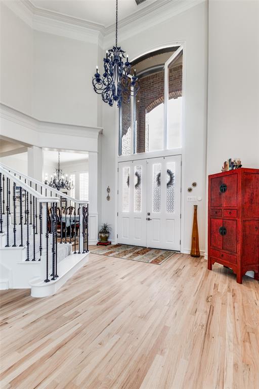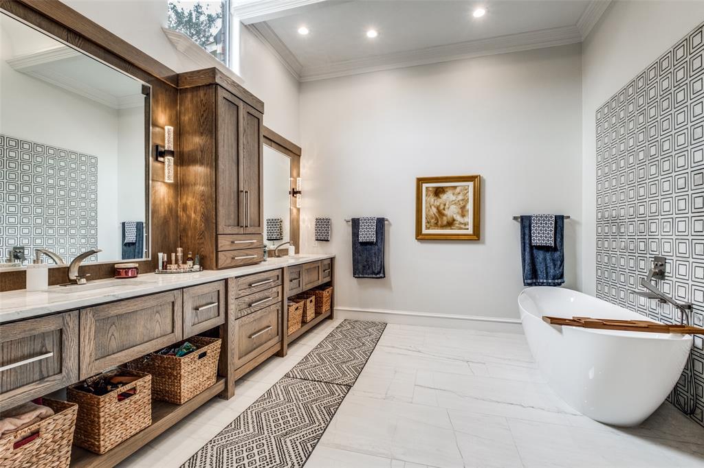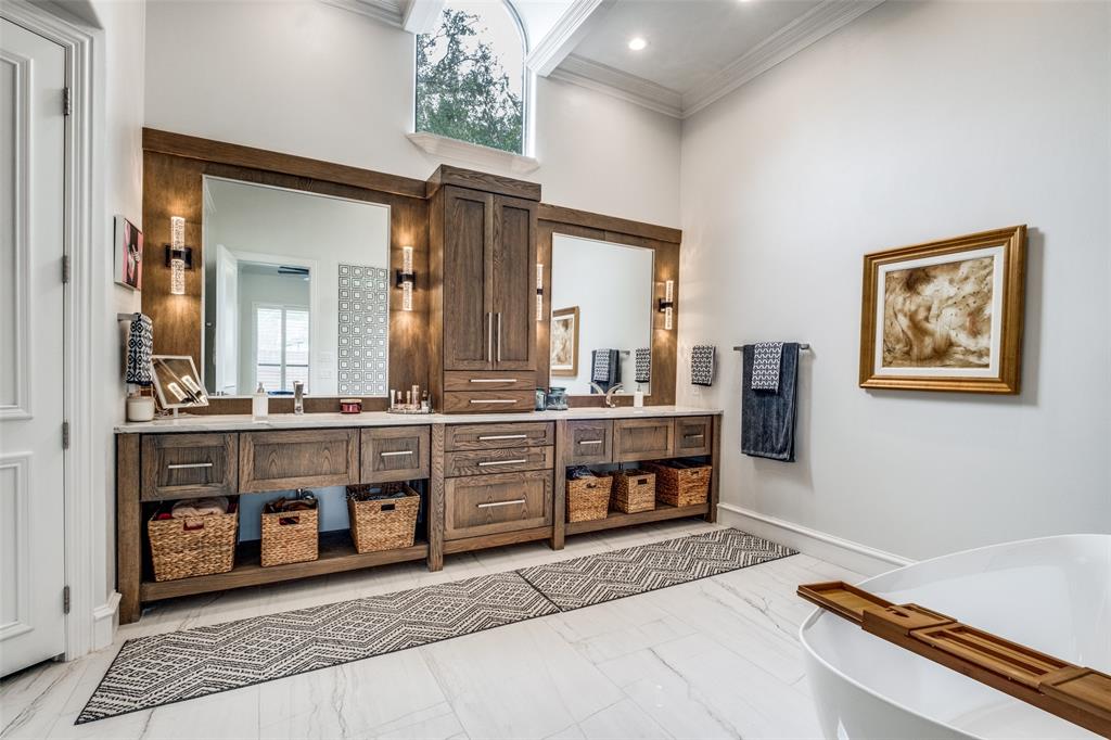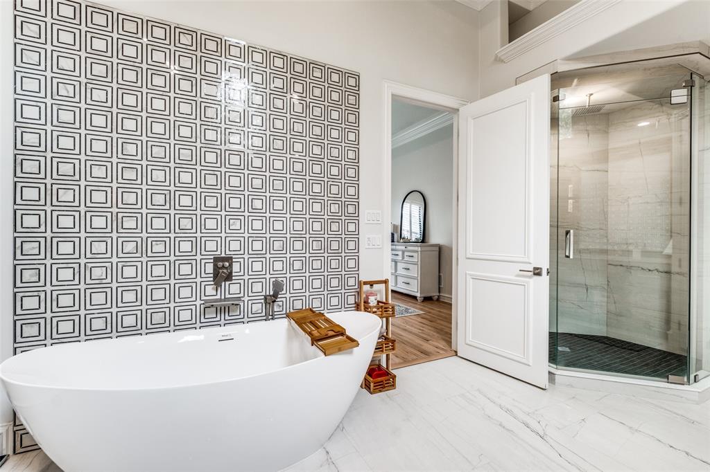 Refined sophistication meets everyday luxury at this striking custom home in the coveted Bent Tree North neighborhood. Set on a beautifully landscaped corner lot, this brick masterpiece makes a commanding first impression with its grand circular drive, towering arched entry, and meticulous curb appeal. Step inside and be immediately swept away by the soaring ceilings, sweeping staircase, and walls of glass bathing the home in natural light. Offering expansive, thoughtfully crafted interiors designed with elegance and functionality in mind, this home was designed for the buyer who demands elegance, functionality, and a bold sense of style. Rich hardwood floors flow throughout an open-concept layout that blends glamorous entertaining spaces with warm, livable comfort. The stunning living room is anchored by a show-stopping two-story marble fireplace and dramatic windows overlooking the backyard oasis. A modern lounge with custom bar and sleek feature wall makes the perfect spot to sip cocktails or unwind by the fire. The kitchen is both striking and functional, complete with quartz counters, premium stainless appliances, oversized island, wine fridge, and seamless flow into the family room. Retreat to the luxurious primary suite, where expansive windows, private patio access, and a spa-inspired bathroom with freestanding tub and dual vanities create your personal sanctuary. Upstairs, generously sized bedrooms and a game room-media space offer flexibility for work, play, or hosting. Step outside to the ultimate resort-style escape, complete with pool, spa, sun deck, and multiple lounge areas designed for unforgettable evenings under the Texas sky. Minutes from the Dallas North Tollway and zoned to Plano ISD, this is more than a home, it’s a lifestyle. Sophisticated. Edgy. Iconic. Welcome to 17515 Torrey Pine Dr.
