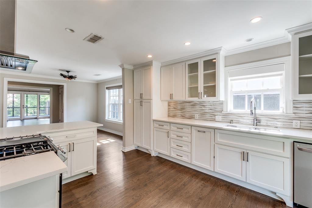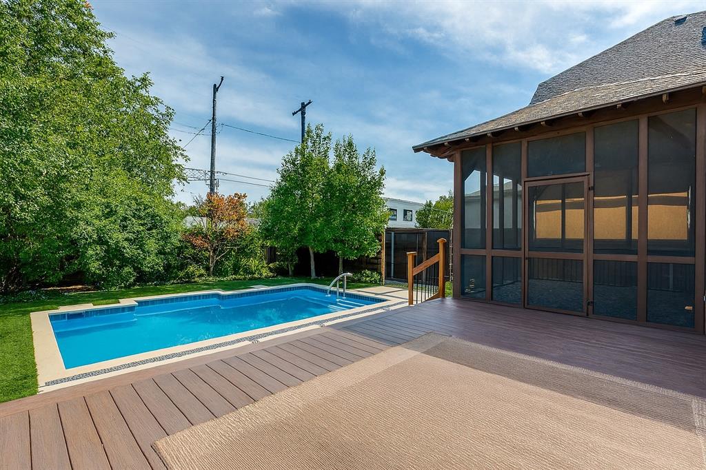 Sophisticated Living in the Heart of Briarwood. Welcome to 4910 W Amherst Ave, a masterfully renovated retreat nestled in one of Dallas’ most desirable neighborhoods. This exceptional single-story home blends timeless character with high-end modern finishes, creating an elegant yet comfortable lifestyle just steps from Inwood Village and Highland Park’s finest offerings. From the moment you arrive, the home’s tailored curb appeal sets a welcoming tone, framed by mature trees, manicured landscaping, and a striking yellow entry door that hints at the vibrant style within. Inside, vaulted ceilings with exposed beams and expansive picture windows flood the living space with natural light, while wide-plank oak floors flow seamlessly throughout the open-concept layout. The designer kitchen is a true showpiece, featuring beautiful countertops, custom cabinetry, stainless appliances, and a sleek gas range with statement vent hood, perfect for both everyday living and upscale entertaining. The spacious primary suite offers built-in cabinetry, a walk-in closet with custom shelving, and a spa-like bath adorned with double vanities, quartz counters, and an oversized frameless glass shower. Step outside and discover a private backyard sanctuary rarely found at this price point. A sparkling pool is surrounded by artificial turf and lush landscaping, while a fully screened-in porch with vaulted ceilings and string lights offers year-round enjoyment, ideal for al fresco dining, lounging, or evening cocktails with friends. Additional features include a gas fireplace, recessed lighting, generous storage, and modernized mechanicals, delivering comfort, style, and peace of mind. Located just minutes from the shops and restaurants of Lovers Lane, top private schools, and some of Dallas’ most exclusive enclaves, this home is the total package. Whether you're upsizing, downsizing, or rightsizing—4910 W Amherst Avenue is a rare opportunity to enjoy refined living in the heart of the city.