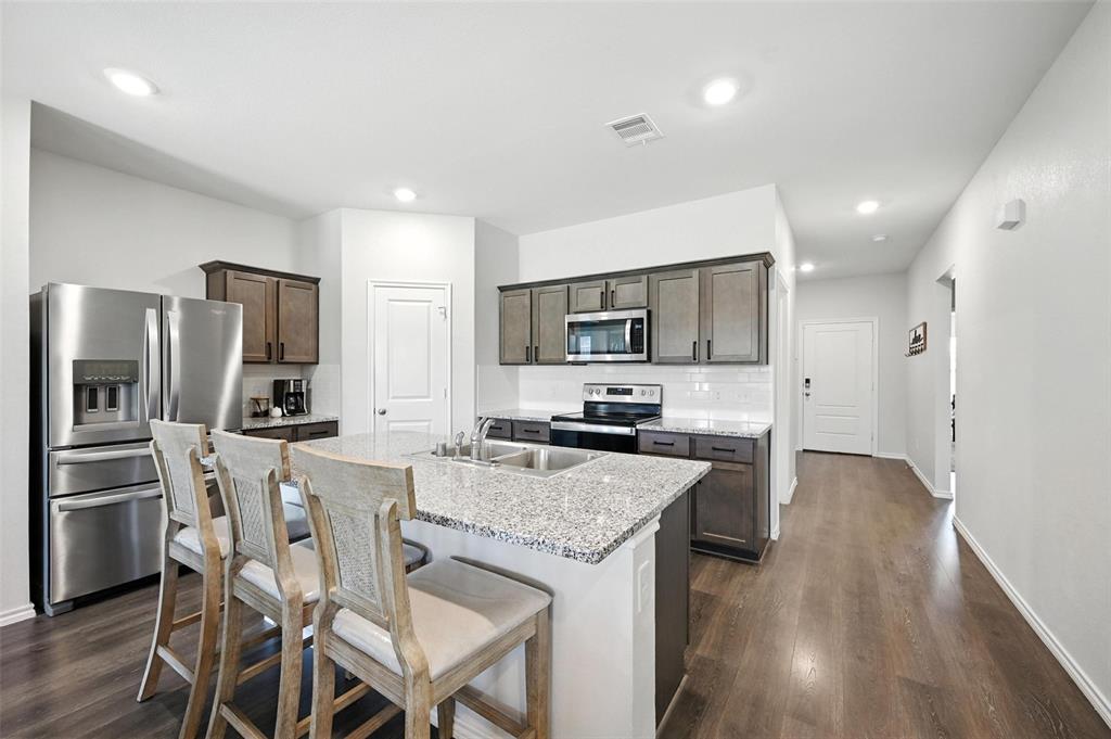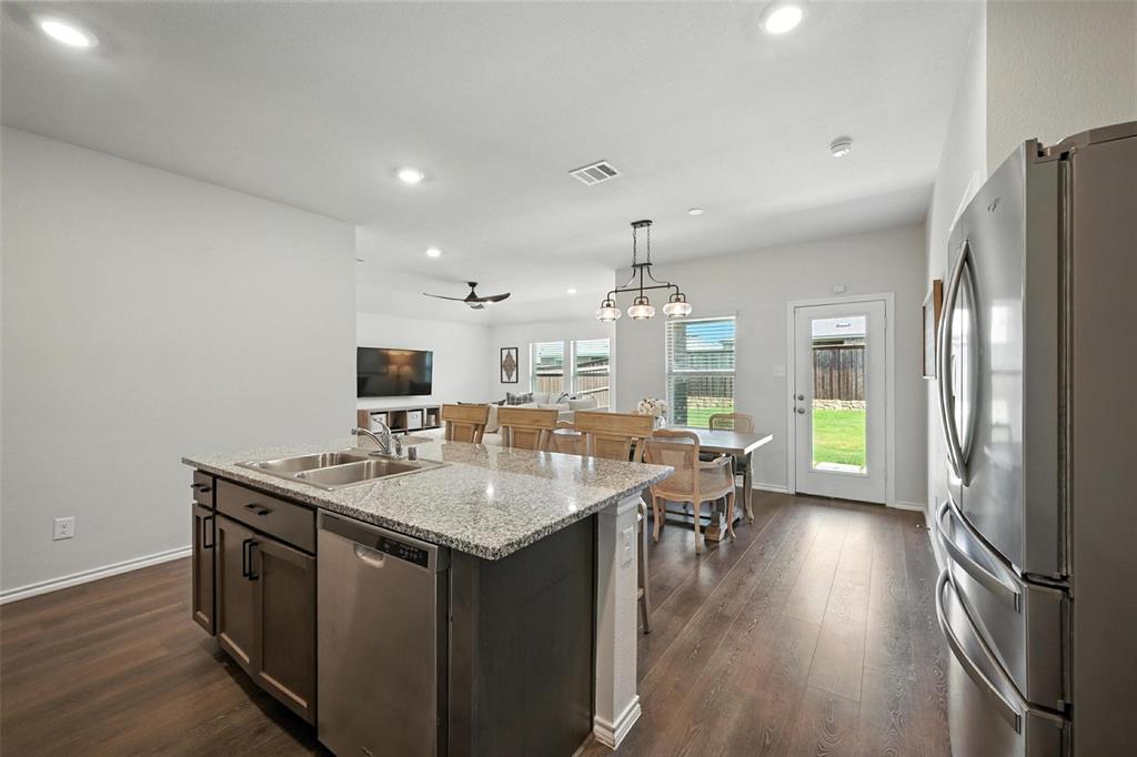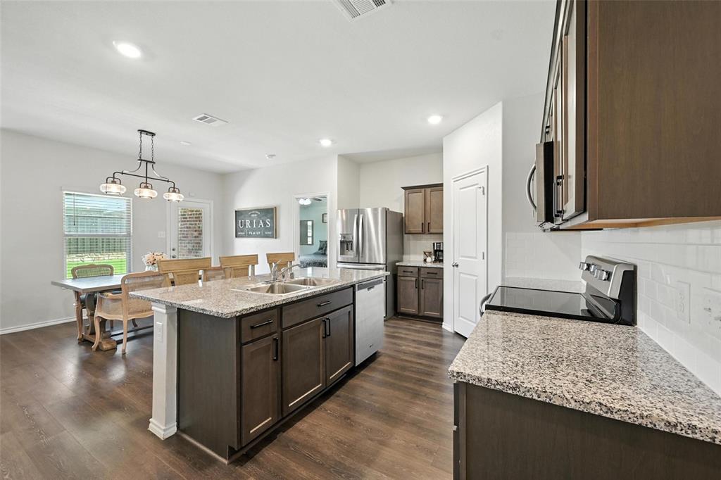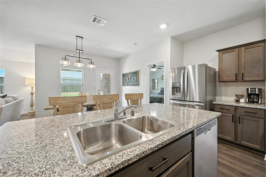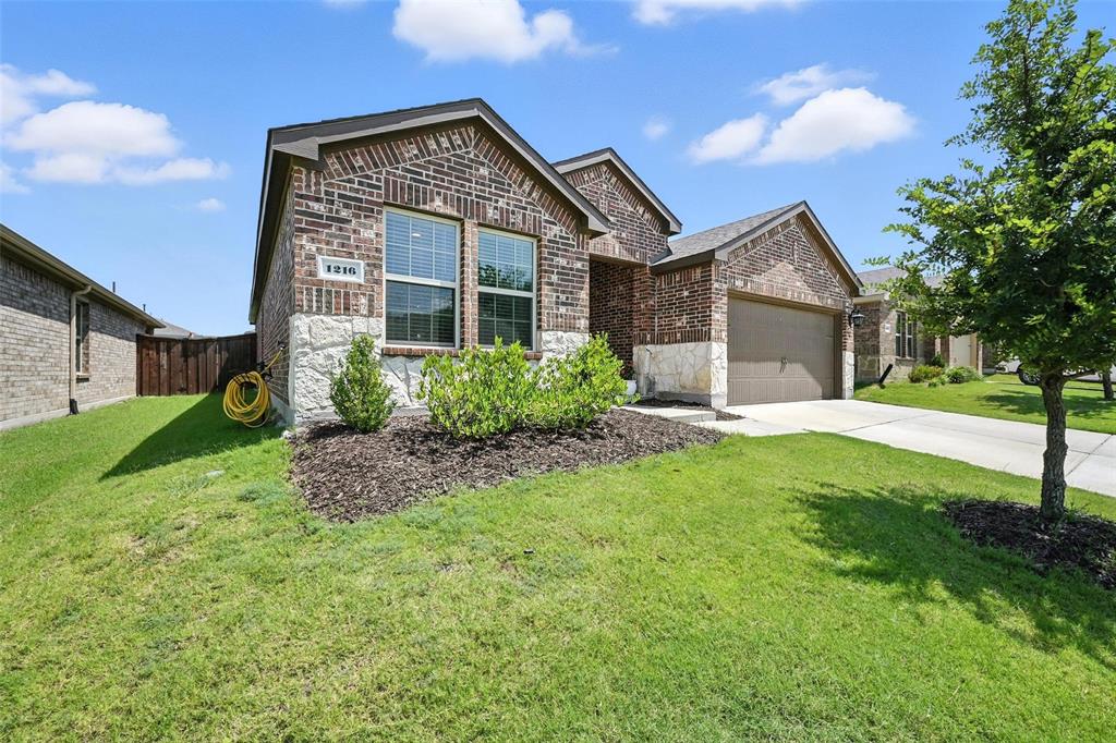 FHA 2.875% assumable loan available to qualified buyers. Refrigerator, washer & dryer are INCLUDED. Welcome to this charming single-story home nestled on a cul-de-sac—offering the perfect blend of style, function, and comfort. Featuring 3 bedrooms and 2 bathrooms, this thoughtfully designed layout is ideal for first-time homeowners or those looking to downsize without compromising quality. Step inside to discover luxury vinyl plank flooring that flows seamlessly throughout the main living areas, creating a clean, modern aesthetic. The heart of the home is the spacious kitchen, complete with trend-forward gray-stained cabinetry, granite countertops, an oversized island with barstool seating, stainless steel appliances, and a walk-in pantry—perfect for everyday living and entertaining alike. The private primary suite offers a peaceful retreat with an ensuite bath that includes a walk-in shower and a generous walk-in closet. Additional highlights include a separate laundry room, a tankless water heater for energy efficiency, and a two-car garage with ample storage. Enjoy outdoor living on the covered patio, ideal for morning coffee or evening gatherings. Located in a desirable cul-de-sac setting, this home delivers low-maintenance living in a welcoming neighborhood. This is the perfect chance to own a move-in ready home in one of North Texas’s fastest-growing and most charming communities. Living in Celina means enjoying the best of both worlds: small-town charm with wide open skies, quiet streets, and community events, all while being just a short drive from Frisco, Prosper, and major conveniences.