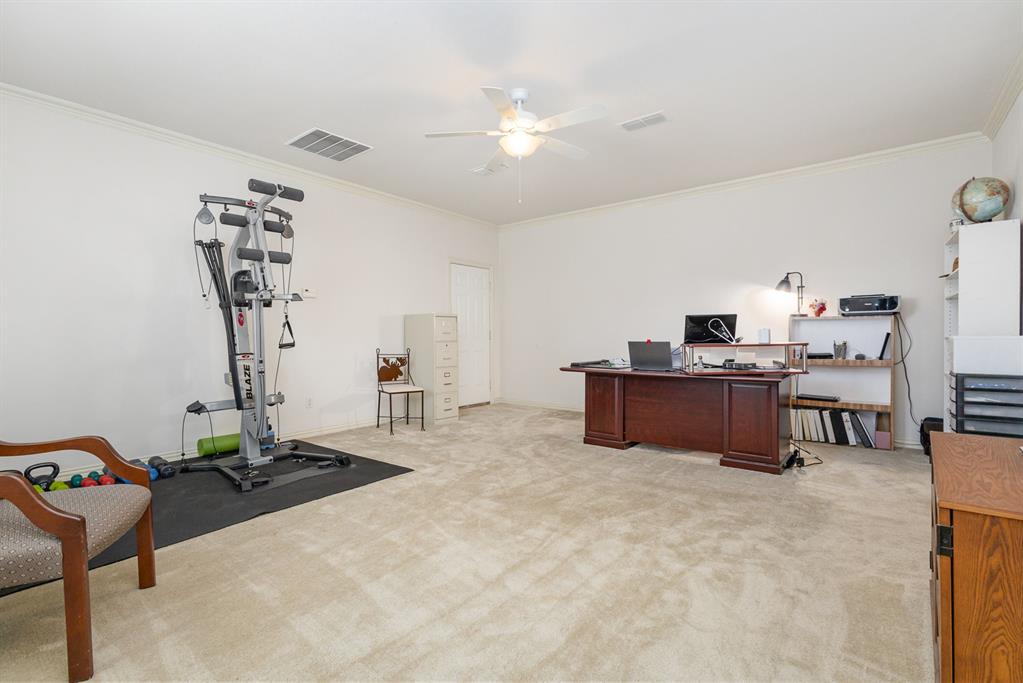 Inside, discover a versatile layout with two dedicated home offices, making this home ideal for a home business. The main living area features a gas fireplace, and a well-equipped kitchen with all new appliances offers plenty of room to host family and friends. The primary suite is a private retreat with a jetted tub, dual vanities, and generous storage. A spacious bonus flex room at the back of the home is perfect as a game room, media room, or second living area, adding incredible versatility.