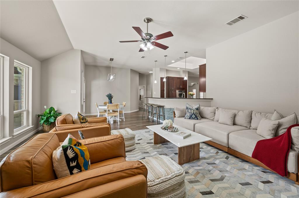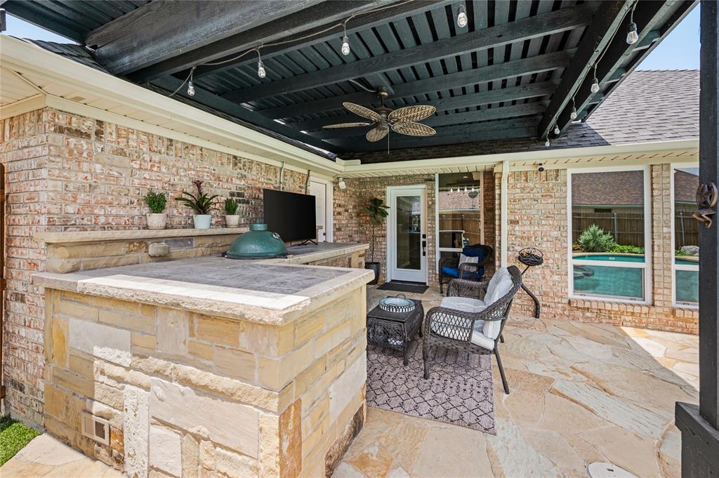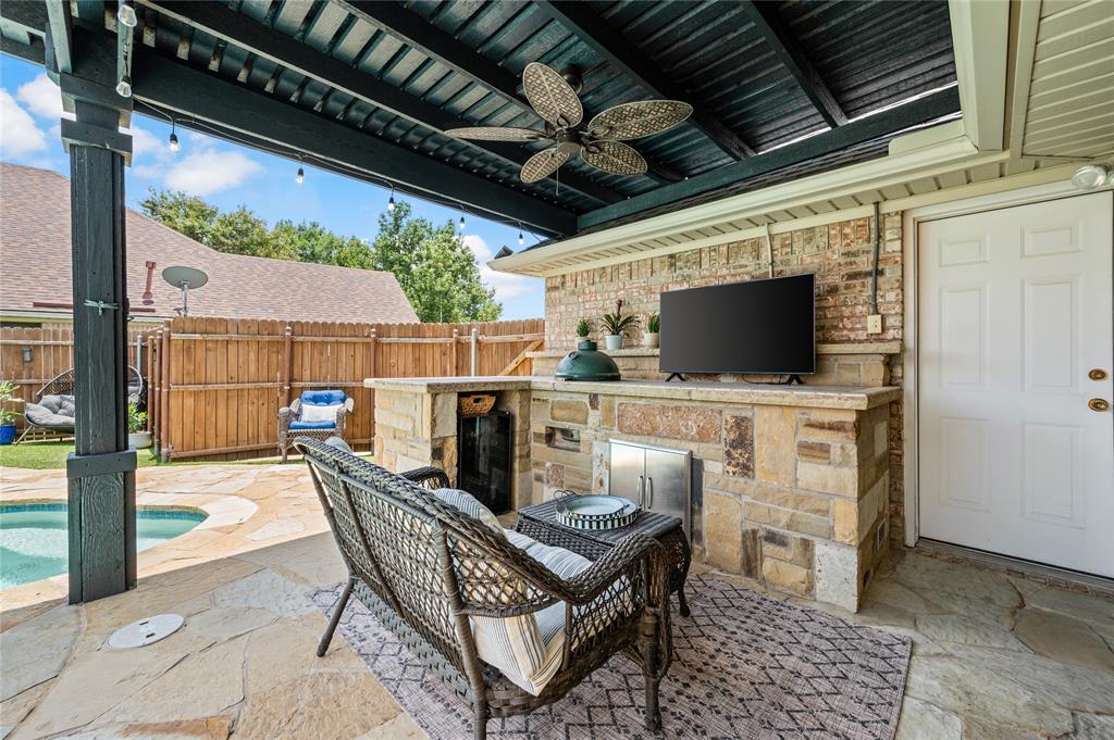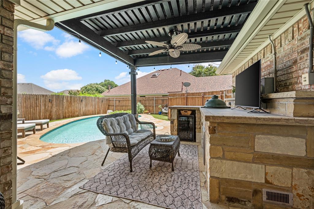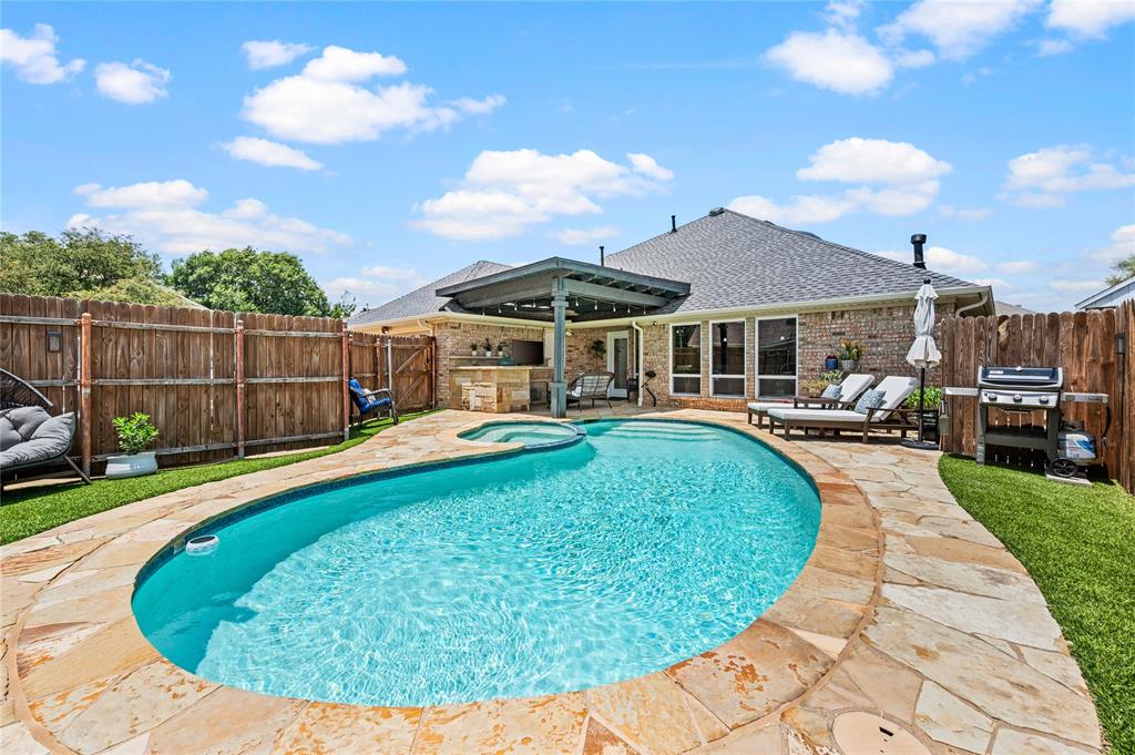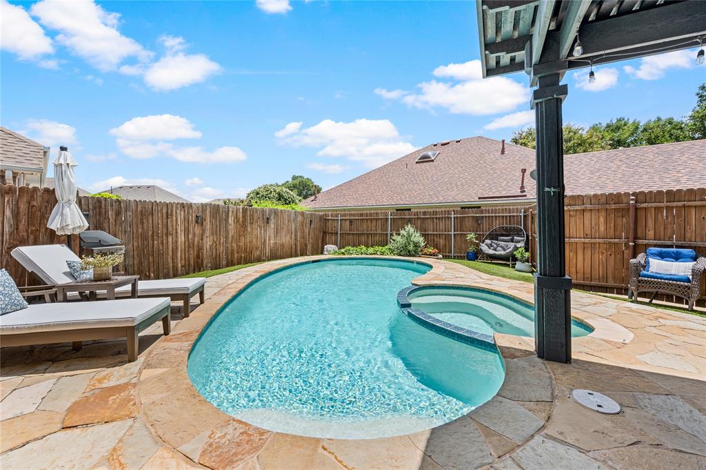 Welcome to your dream home! Move right in and don't worry about a thing with this immaculate 4 bedroom, 2 bath residence. Along with its functionality, comfort and great style all the big ticket items have been taken care of for you! Features you will love: Spacious floor plan with soaring high ceilings and abundant amount of natural light throughout the home. Open-concept, gourmet kitchen features granite countertops, stainless steel appliances, and a beautiful skylight making it ideal for entertaining or enjoying everyday living. Split-bedroom layout offers a private primary suite, separate from three spacious secondary bedrooms – perfect for family, guests, or a home office. Large primary suite has ample closet space and an ensuite with a bright bay window, granite top dual vanities, a linen storage cabinet, and a private water closet. Private backyard oasis which is ideal for entertaining around the updated pool, new deck o'seal, and turf. Barbecuing under your freshly stained covered patio will be a delight. This home has been freshly painted along with new fixtures, modern finishes, and upgraded bathrooms. Located in a quiet cul-de-sac within the highly sought-after Keller ISD. Many updates include 2 year old roof, 3 year old HVAC system, newer water heater and sprinkler system, and more. Come take a look at this beautiful home before you miss out! Please schedule a private showing.
