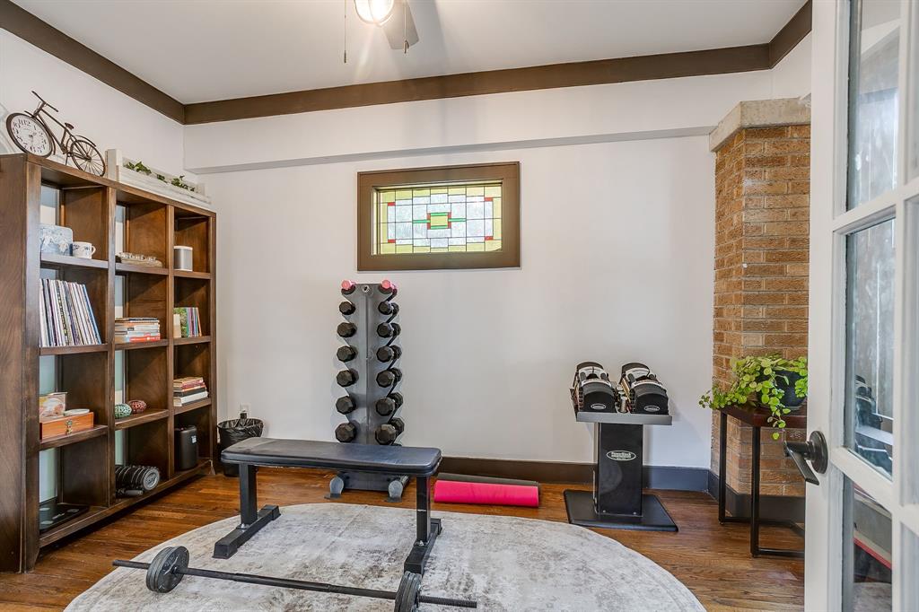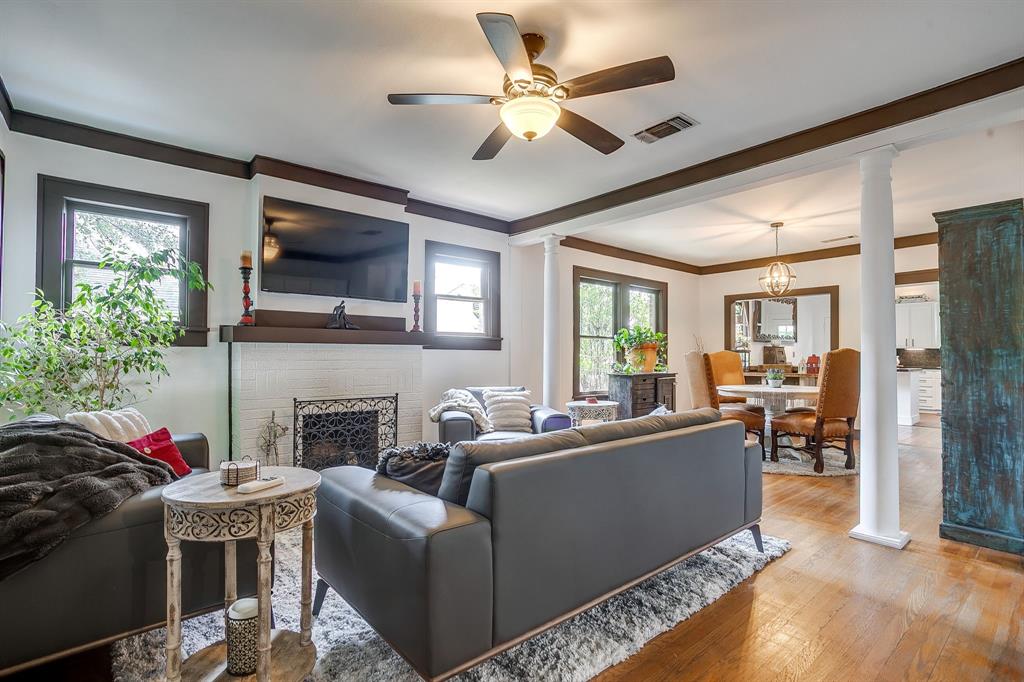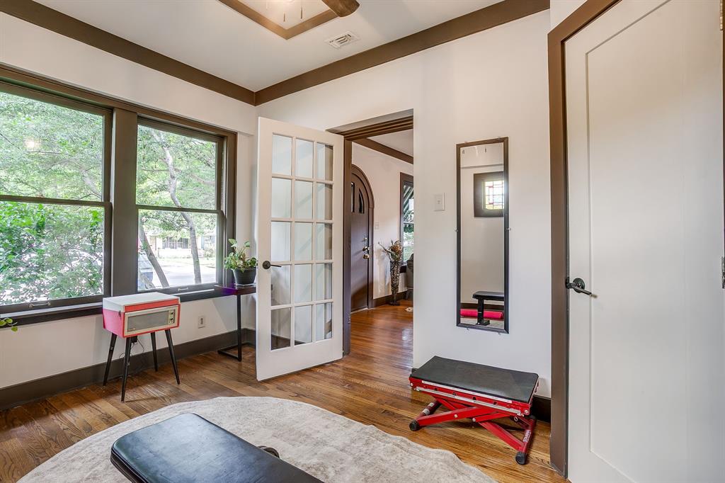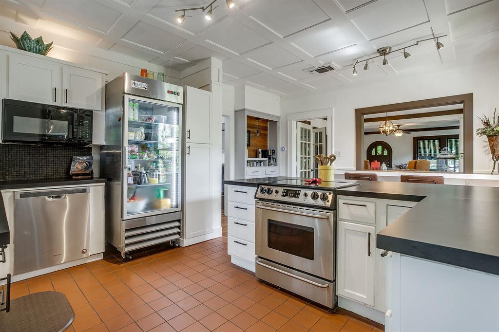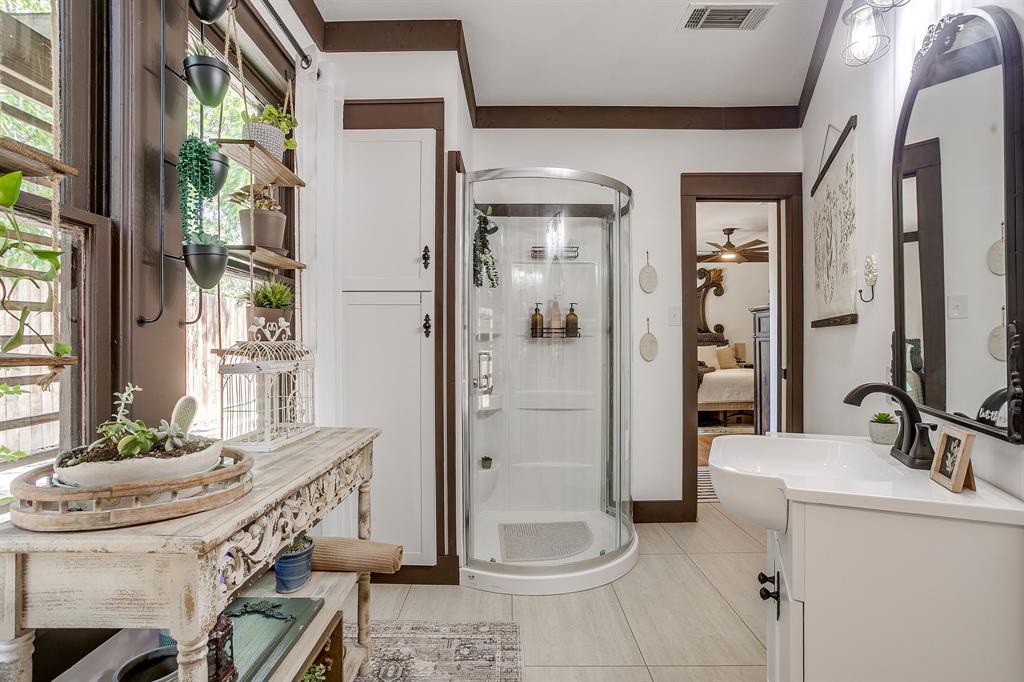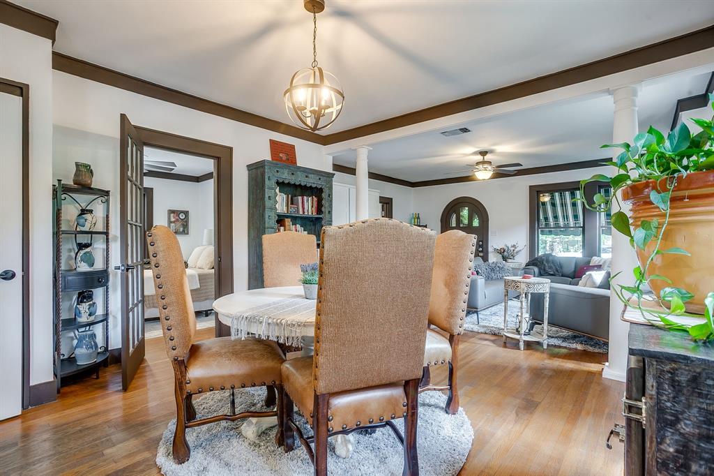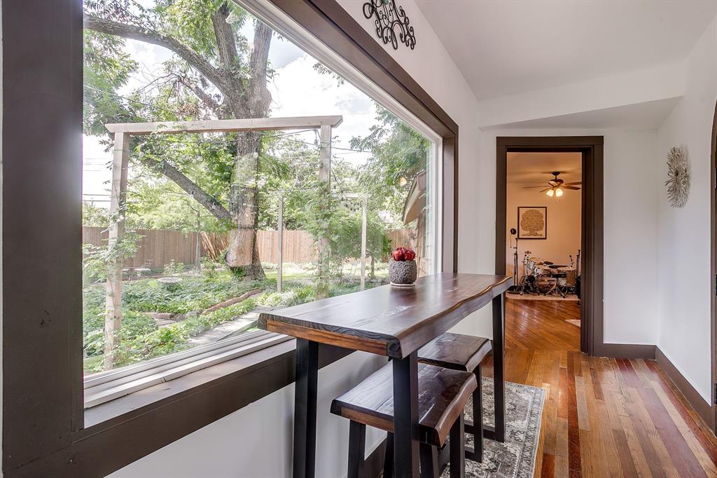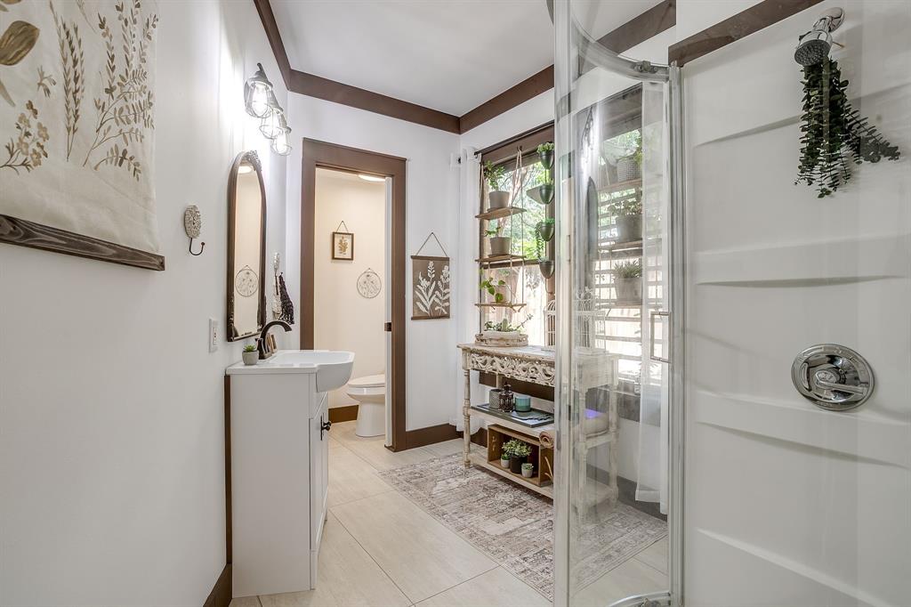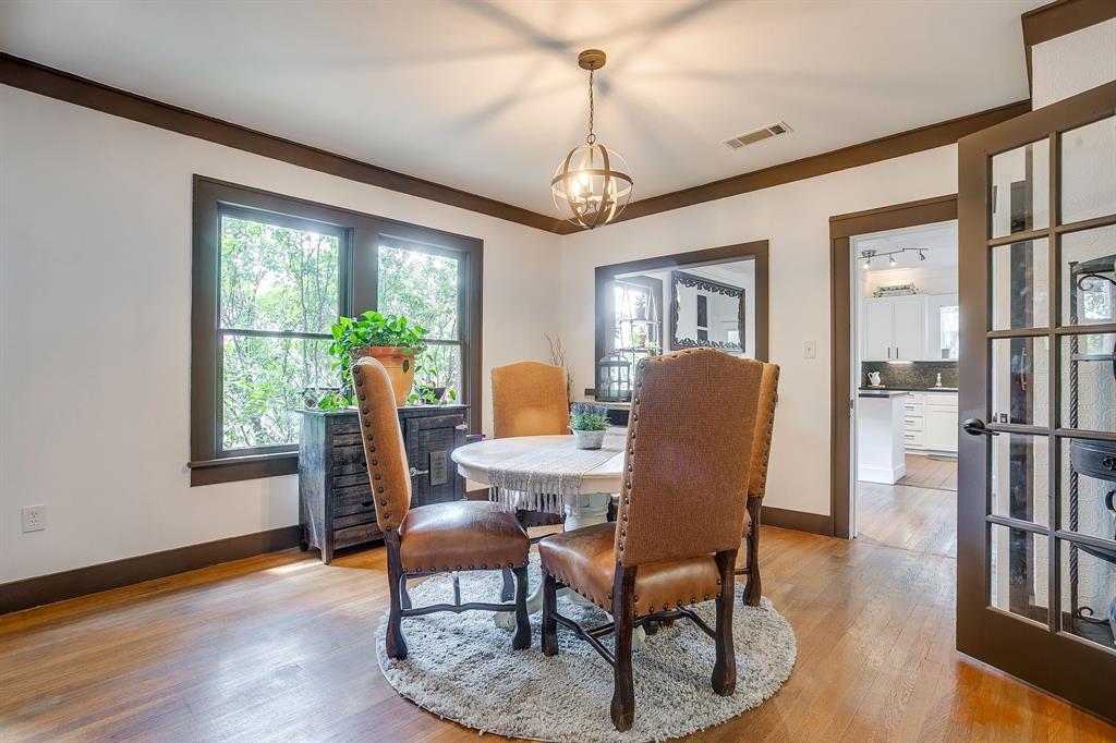 From the arched doors to the whimsical green shingle roof and window awnings, every detail speaks of craftsmanship and character. The owners thoughtfully expanded the home with an additional bedroom and bath, carefully sourcing reclaimed wood so the original hardwood floors flow seamlessly throughout.