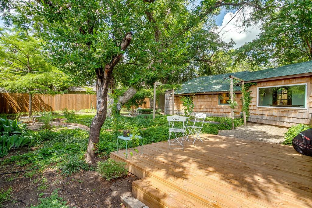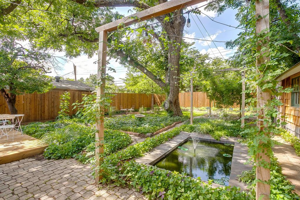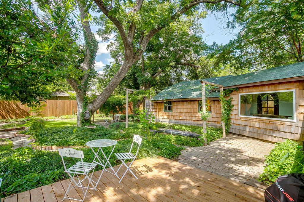 Inside, even the vintage blue-and-white tile in the original bathroom has been lovingly preserved, a reminder of the home’s history. Outside, the landscaped backyard invites you to linger, complete with a koi pond and cedar shake accents that enhance the cottage-like appeal. The gated parking area doesn’t just provide security—it adds to the sense of sanctuary, feeling like its own private retreat.