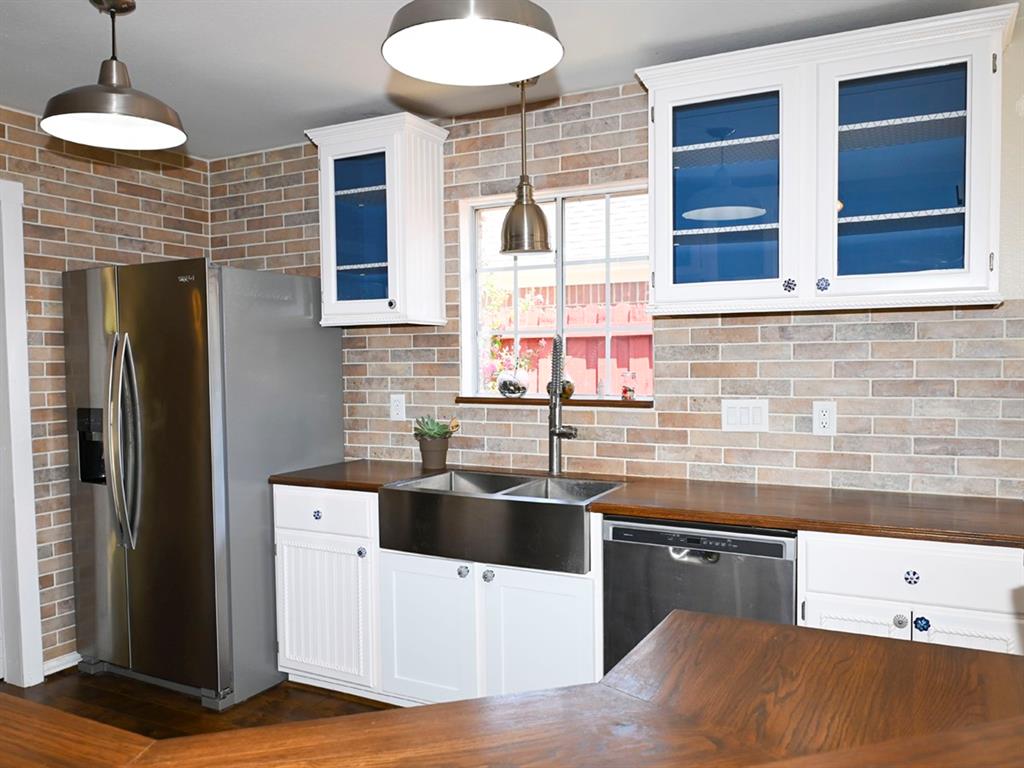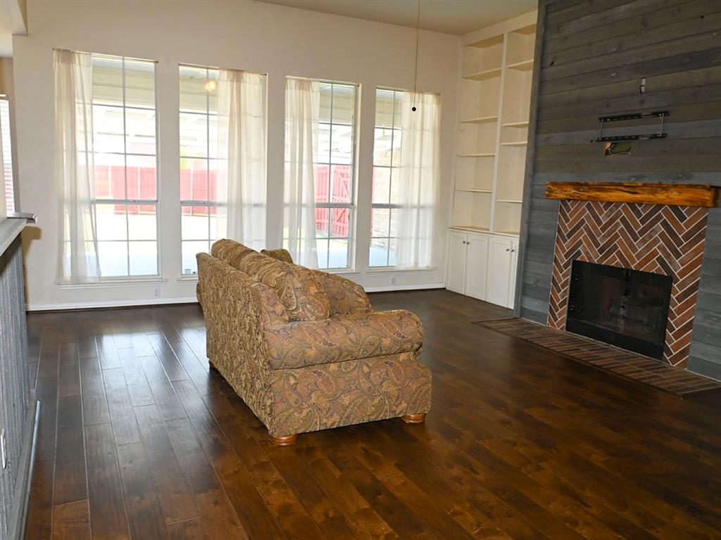 PRICE REDUCED! NOW $349,900! COME SEE! WHAT A DEAL! Cute home in a quiet neighborhood with four newly carpeted bedrooms! Entry hall offers access to formal dining room and adjacent Living room with brick fireplace and wooden floors thorough out. Kitchen is well appointed adjacent to breakfast room and windows overlooking the OVERSIZED, completely fenced backyard just off the big covered patio with room for play yard and extra storage buildings. The master bath has 2 separate sinks, jacuzzi tub and shower. Large utility room in central hall. Fourth bedroom is suitable for playroom, office or other. All remaining appliances included in sales price and stay with property. Driveway in back with room for 4 cars and 2 car garage. Great family home and waiting for your offer!