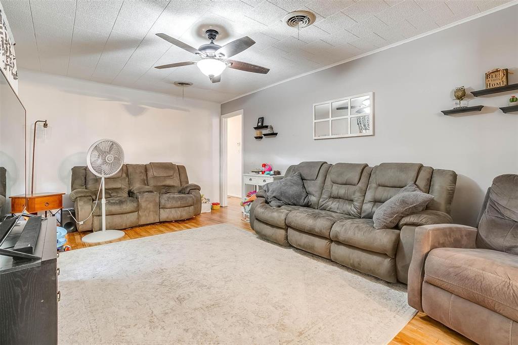 Cute home on a corner lot features a large backyard with two storage buildings, a storm cellar, sunroom, and plenty of space for the whole family. Huge open kitchen and dining with ample counter space and gas appliances. Gorgeous hardwood floors. Established neighborhood with mature trees. Excellent proximity to schools. New roof August 2023. 4-minute drive to H-E-B!