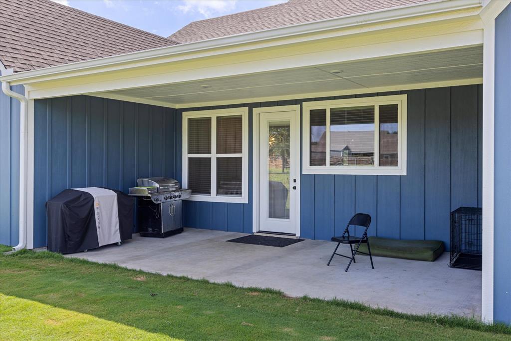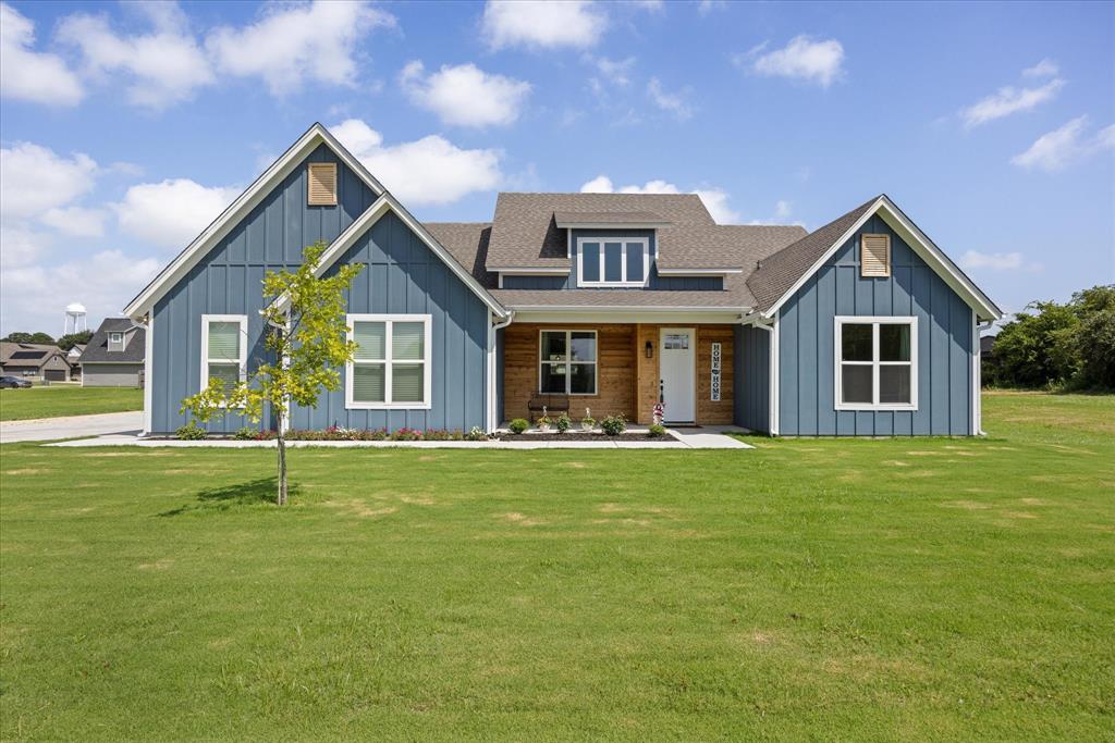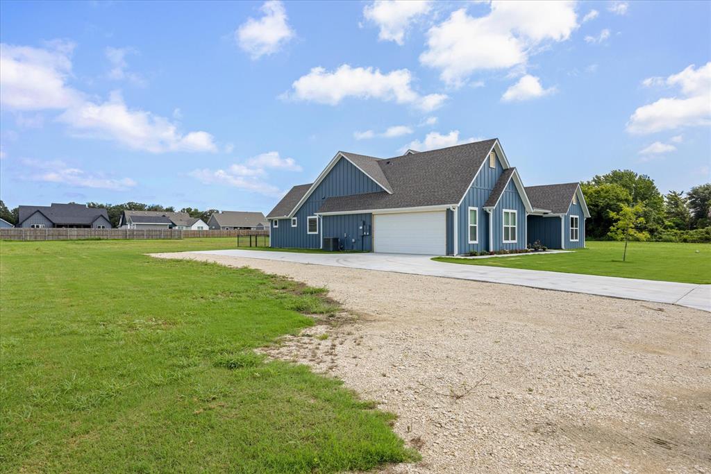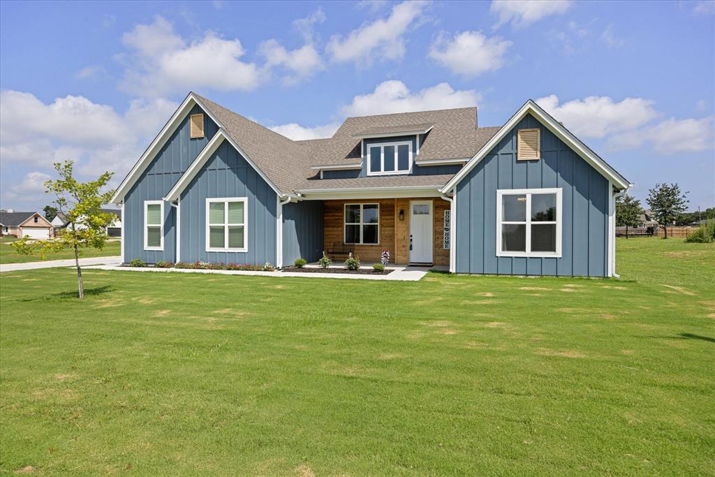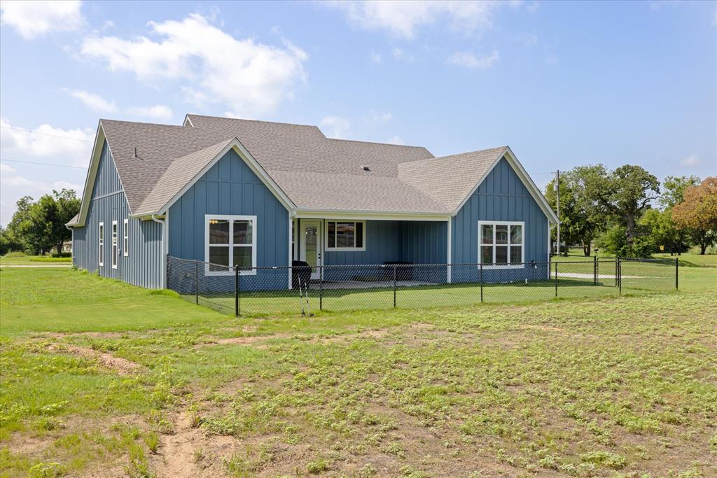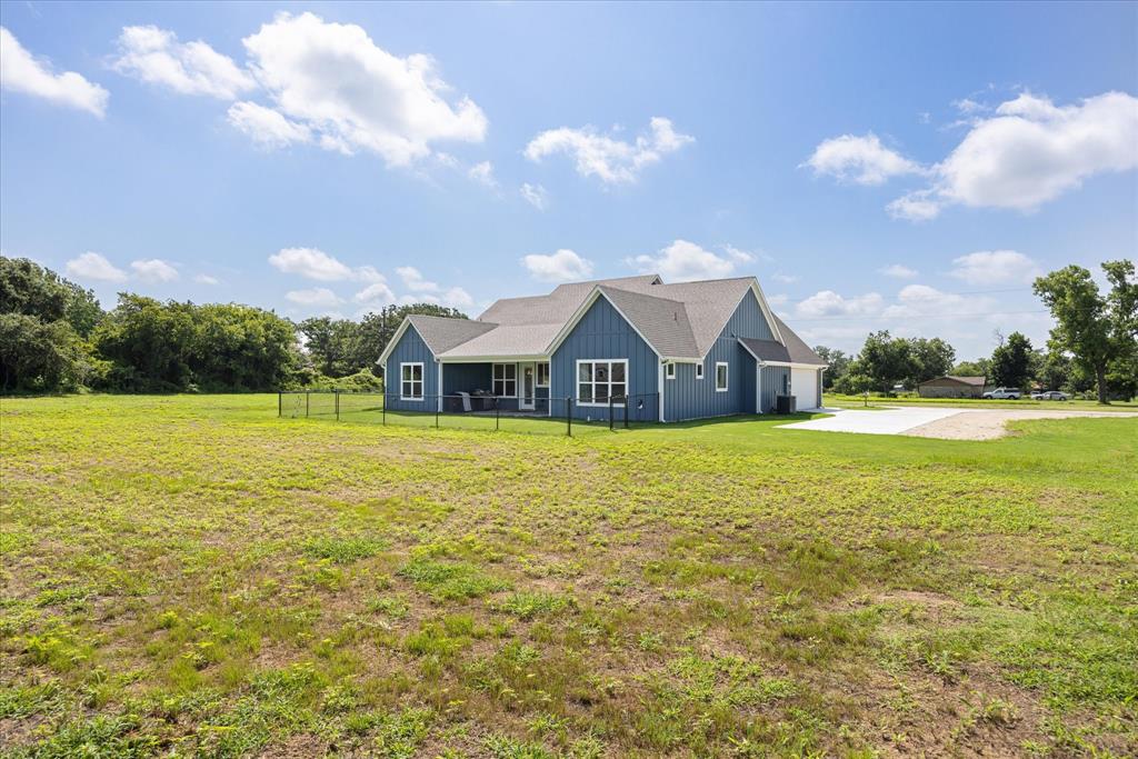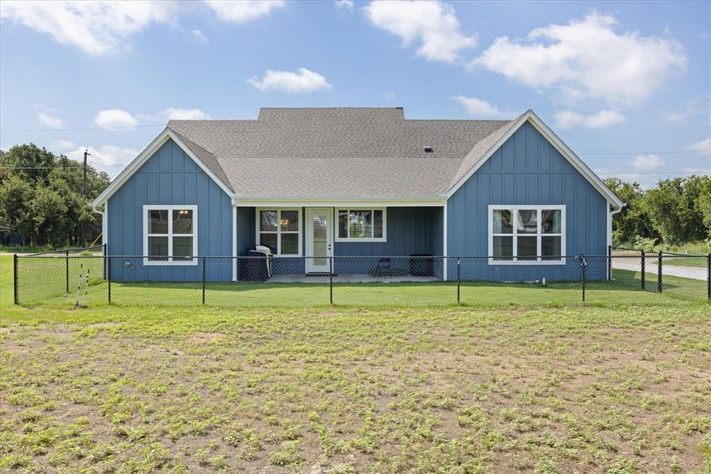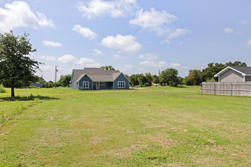 Don’t miss the opportunity to own this stunning home that perfectly blends modern open-concept living with timeless exterior charm, all set on a spacious .847-acre lot. The exterior features a large front porch, covered back patio, and partial fencing—ideal for enjoying outdoor living in comfort and privacy. The thoughtfully designed single-story layout offers a generous living area with a striking vaulted ceiling and exposed beams, creating a warm and inviting atmosphere. The kitchen is a chef’s dream, complete with quartz countertops, a breakfast bar, stainless steel appliances, pot filler, walk-in pantry, built-in microwave, and a sleek vent hood. The split floor plan includes four spacious bedrooms, two and a half bathrooms, a dedicated office, full-size walk through laundry room, mud room and ample storage throughout. Interior finishes include ceramic tile and carpet flooring, decorative lighting, ceiling fans, and central heating and air via an energy-efficient electric heat pump. High-speed internet and cable TV are also available. Located in a quiet, friendly small-town setting, the property benefits from the adjacent vacant lot owned by the City of Tolar—with no current plans for development—providing the homeowner with added privacy and a sense of open space. All this with the added convenience of nearby Granbury amenities just minutes away. French door refrigerator, clothes washing machine and dryer will convey. Sellers are having to move closer to elderly parents to assist them. Hurry and make this great property yours. Chain link fence is for dogs. THE PROPERTY IS is .847 ACRES AND GOES TO THE BACK WOOD FENCE BEHIND HOME. SURVEY IS ONLINE SO ASK YOUR AGENT FOR A COPY. NO HOA! Plenty of room for a shop, pool and playsets.