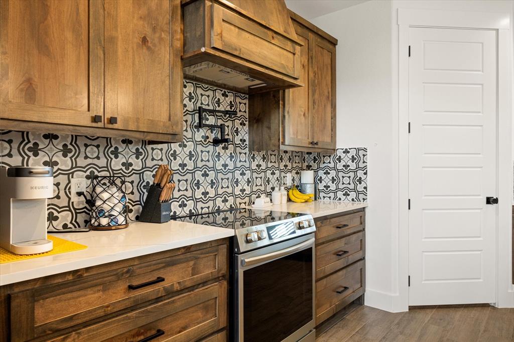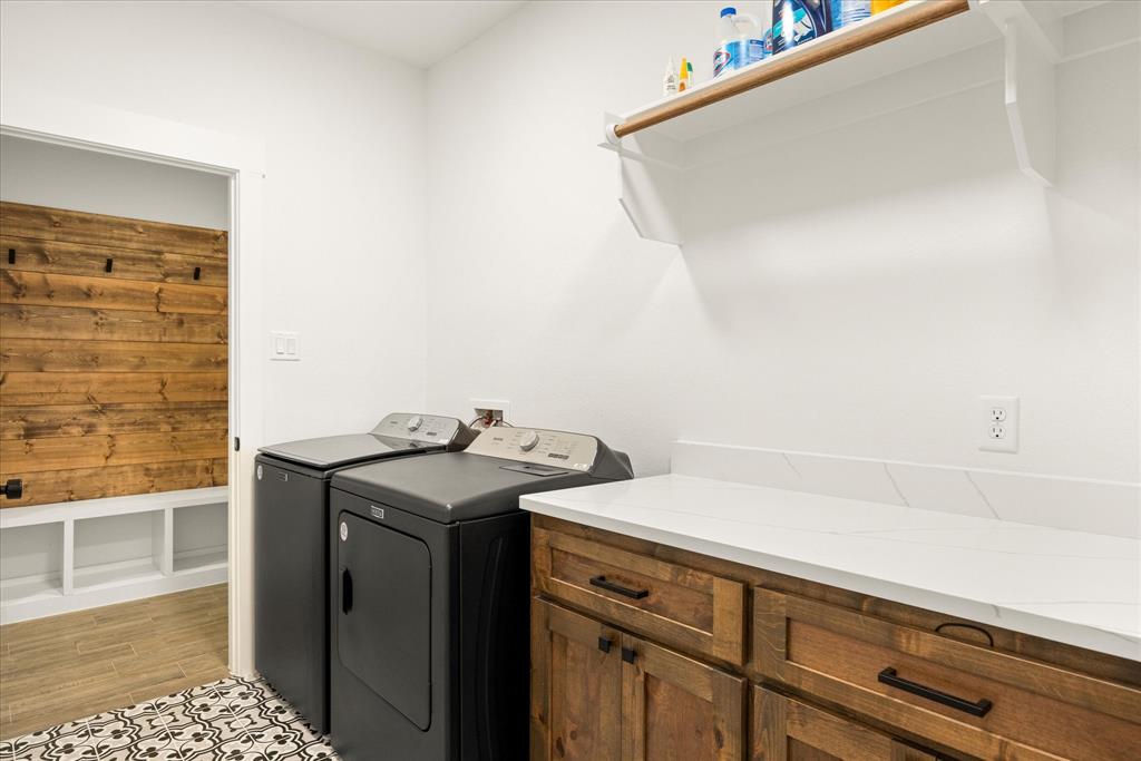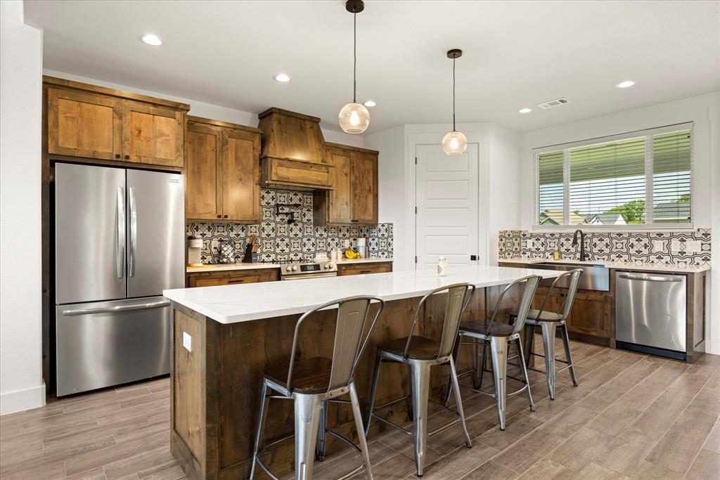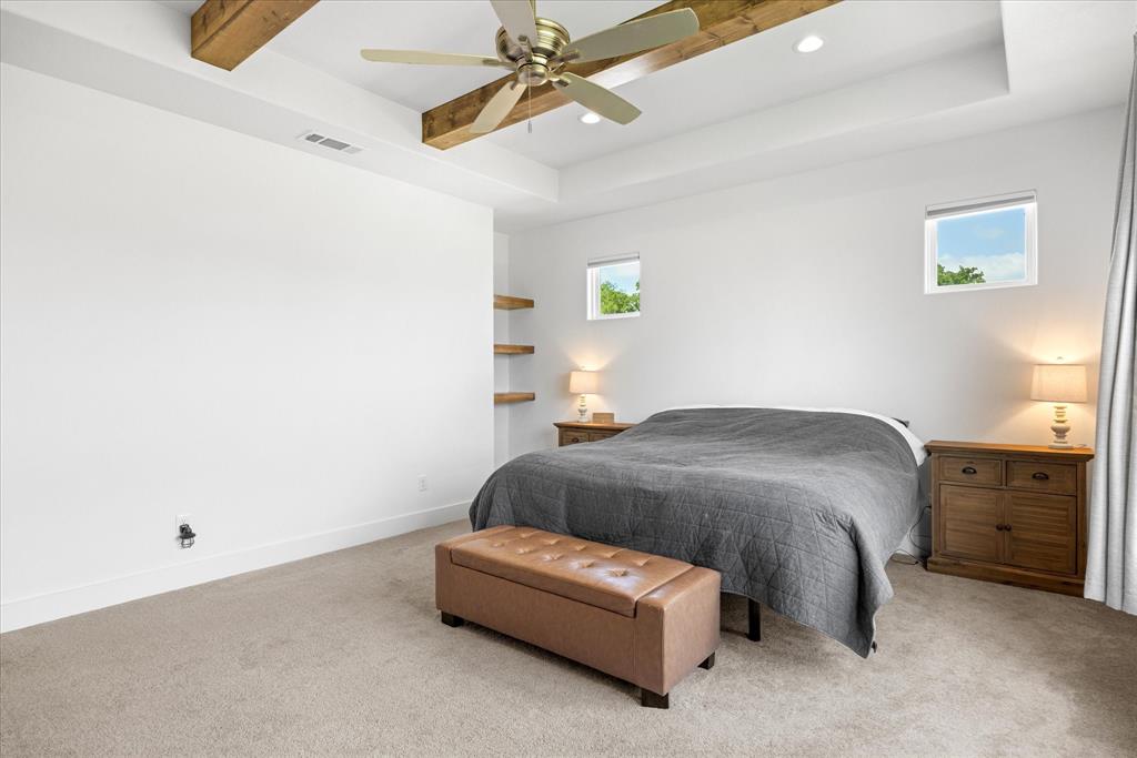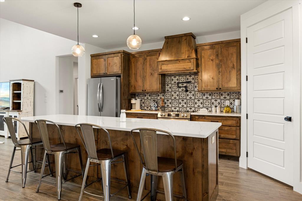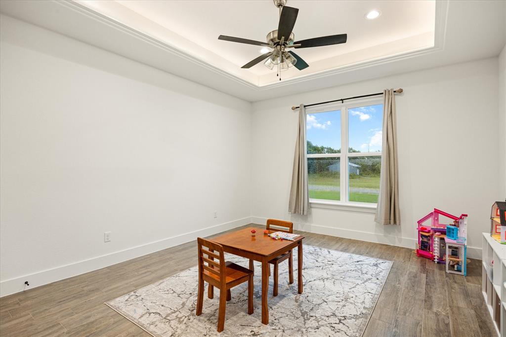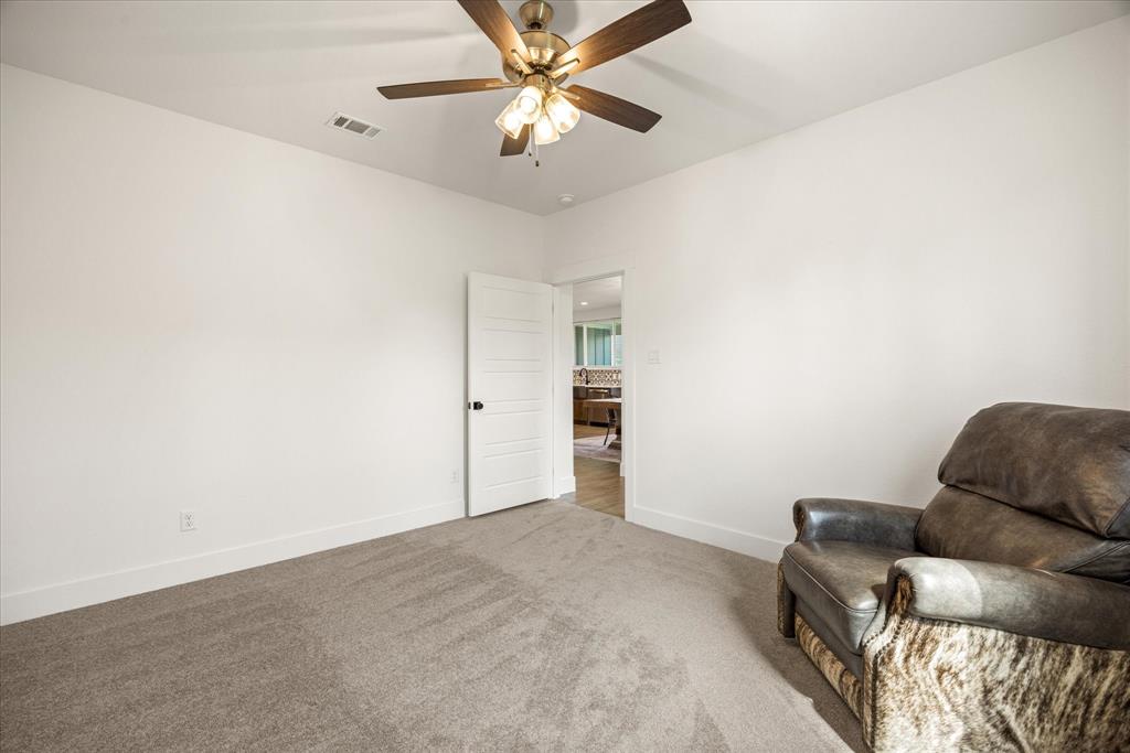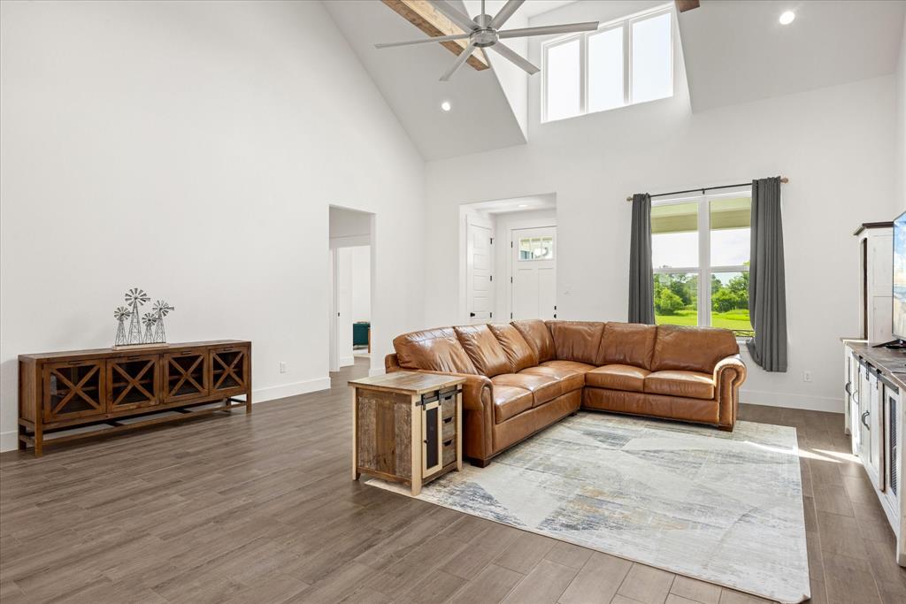 Don’t miss the opportunity to own this stunning home that perfectly blends modern open-concept living with timeless exterior charm, all set on a spacious .847-acre lot. The exterior features a large front porch, covered back patio, and partial fencing—ideal for enjoying outdoor living in comfort and privacy. The thoughtfully designed single-story layout offers a generous living area with a striking vaulted ceiling and exposed beams, creating a warm and inviting atmosphere. The kitchen is a chef’s dream, complete with quartz countertops, a breakfast bar, stainless steel appliances, pot filler, walk-in pantry, built-in microwave, and a sleek vent hood. The split floor plan includes four spacious bedrooms, two and a half bathrooms, a dedicated office, full-size walk through laundry room, mud room and ample storage throughout. Interior finishes include ceramic tile and carpet flooring, decorative lighting, ceiling fans, and central heating and air via an energy-efficient electric heat pump. High-speed internet and cable TV are also available. Located in a quiet, friendly small-town setting, the property benefits from the adjacent vacant lot owned by the City of Tolar—with no current plans for development—providing the homeowner with added privacy and a sense of open space. All this with the added convenience of nearby Granbury amenities just minutes away. French door refrigerator, clothes washing machine and dryer will convey. Sellers are having to move closer to elderly parents to assist them. Hurry and make this great property yours. Chain link fence is for dogs. THE PROPERTY IS is .847 ACRES AND GOES TO THE BACK WOOD FENCE BEHIND HOME. SURVEY IS ONLINE SO ASK YOUR AGENT FOR A COPY. NO HOA! Plenty of room for a shop, pool and playsets.