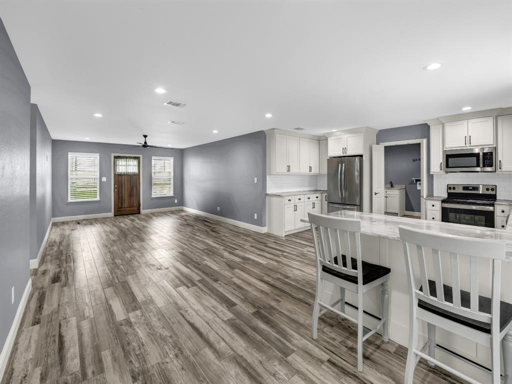 Discover this charming 3-bedroom, 2-bath home on a double lot located minutes from downtown Mineral Wells. This home features a spacious open-concept floor plan with white cabinets, quartzite countertops, porcelain wood tile, and carpeting in the bedrooms. The expansive master bath boasts a comfortably sized walk-in shower with dual heads and a his-and-her vanity, while the spacious kitchen offers abundant counter space and stainless-steel appliances. Enjoy the large laundry room with a pantry, sink, and counter space for folding laundry. The home has a 2-car garage for your storage and cover from the inevitable Texas hailstorms! Outside, you'll have plenty of room on the extended patio for barbeques and an expansive backyard with perimeter privacy fencing for family football or space for your fur babies to run! Assumable mortgage with a 3.07% Interest Rate! Sound like a dream? Call us today for a tour!