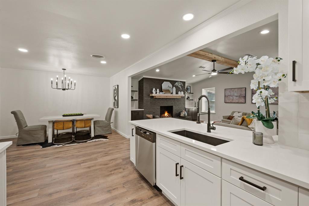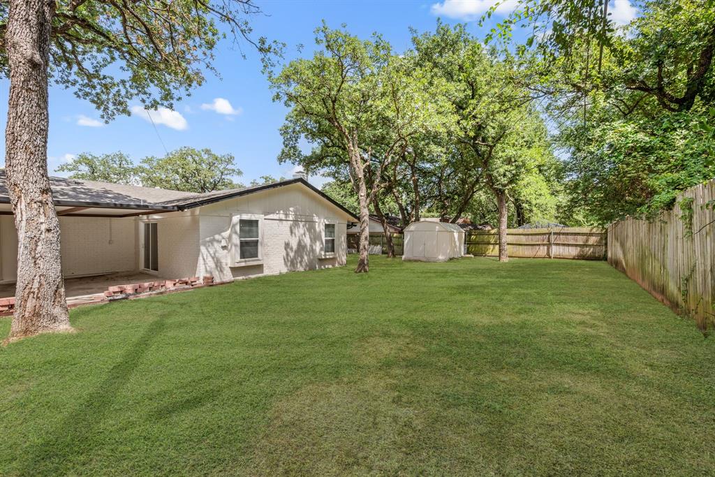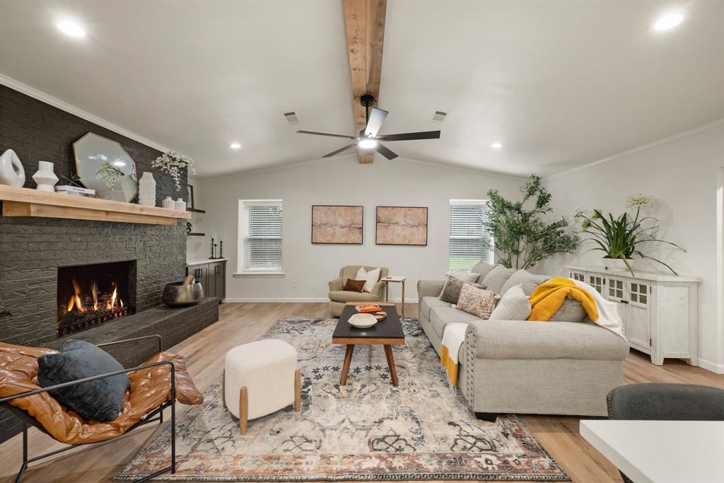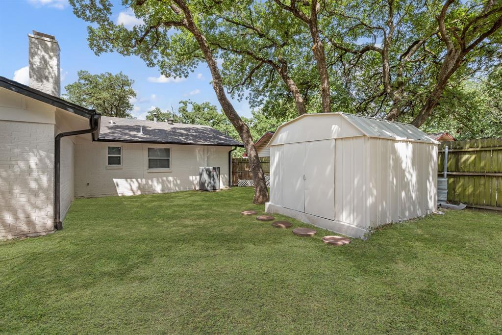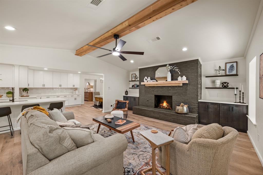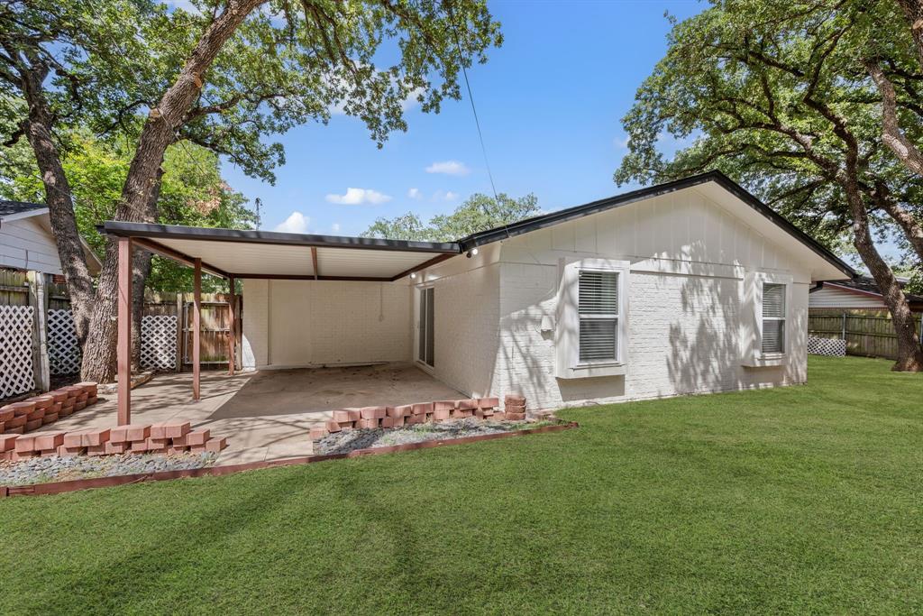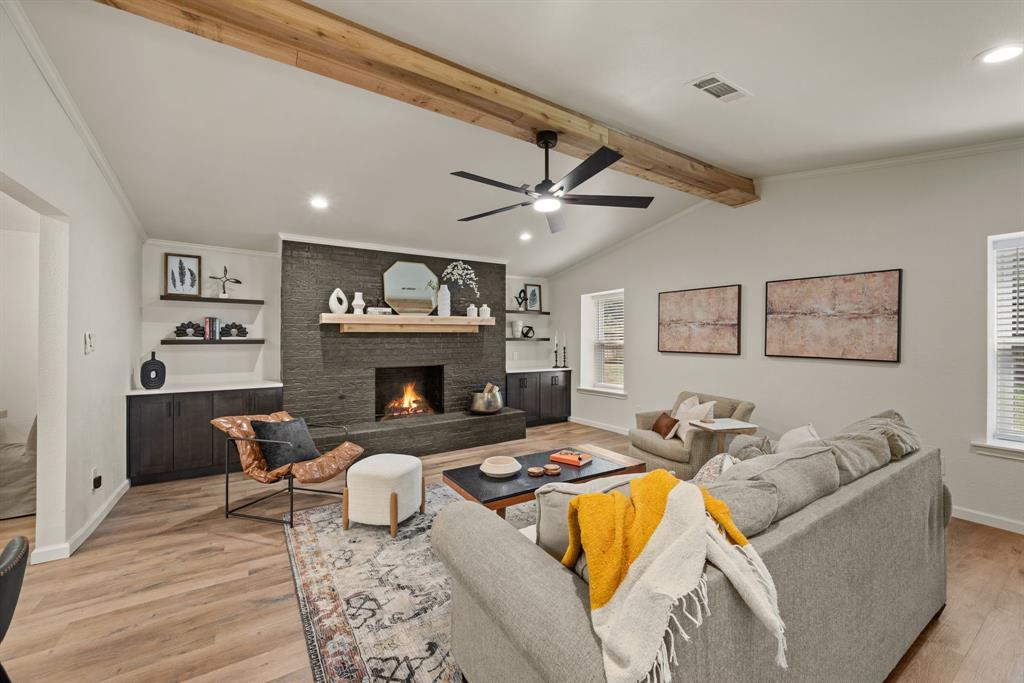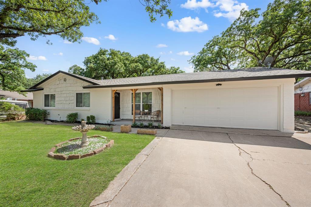 STUNNING fully renovated 3 bedroom 2 bath 1875 square foot home in desirable Bedford neighborhood! Nothing has been left untouched in this open concept home. New HVAC, electric panel, plumbing, windows, insulation, doors, paint inside & out, LVP floors, quartz countertops, crown molding, carpet, matte black fixtures, recessed lighting & much more await you in this one of a kind home. Multiple living & dining areas. Giant kitchen with custom soft close cabinets, quartz countertops, stainless steel appliances, & walk in pantry is perfect for any chef. Primary living area that is open to the kitchen containing vaulted ceilings with cedar beam, built in cabinetry, fireplace, recessed lighting on bluetooth dimmers, is great for entertaining. This property features 2 spacious guest bedrooms along with fully renovated guest bathroom. Large primary bedroom containing fully renovated magazine quality ensuite bathroom with walk in shower is perfect after a long day. Outside you will find a covered porch, sprinklers, large backyard & additional storage shed. Centrally located within minutes to schools, shopping, parks & major highways. Home is in the award wining HED ISD! Come see YOUR new home today!