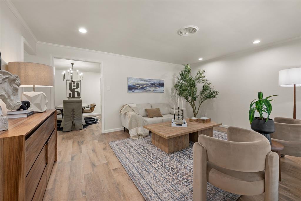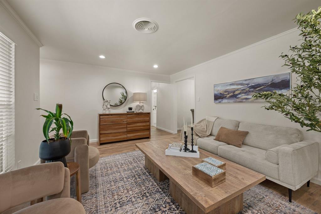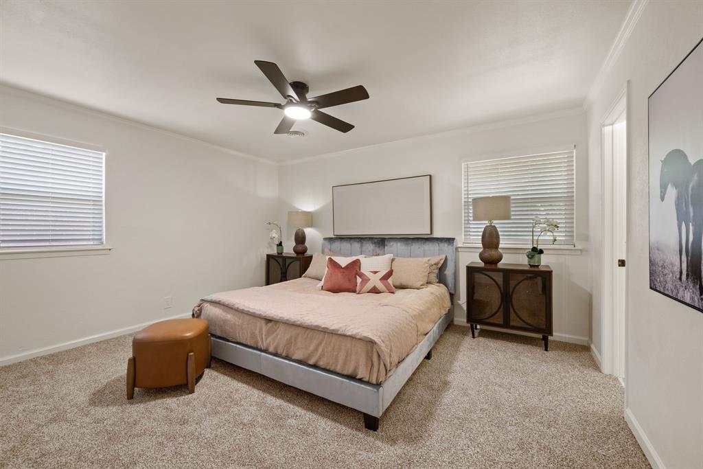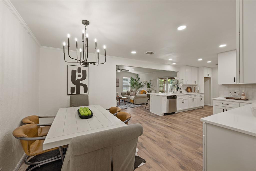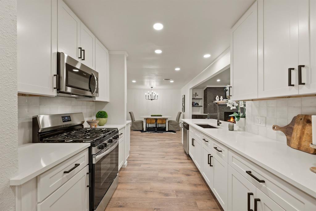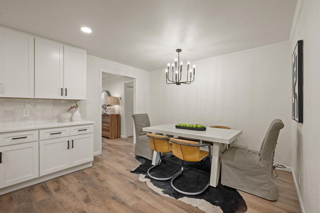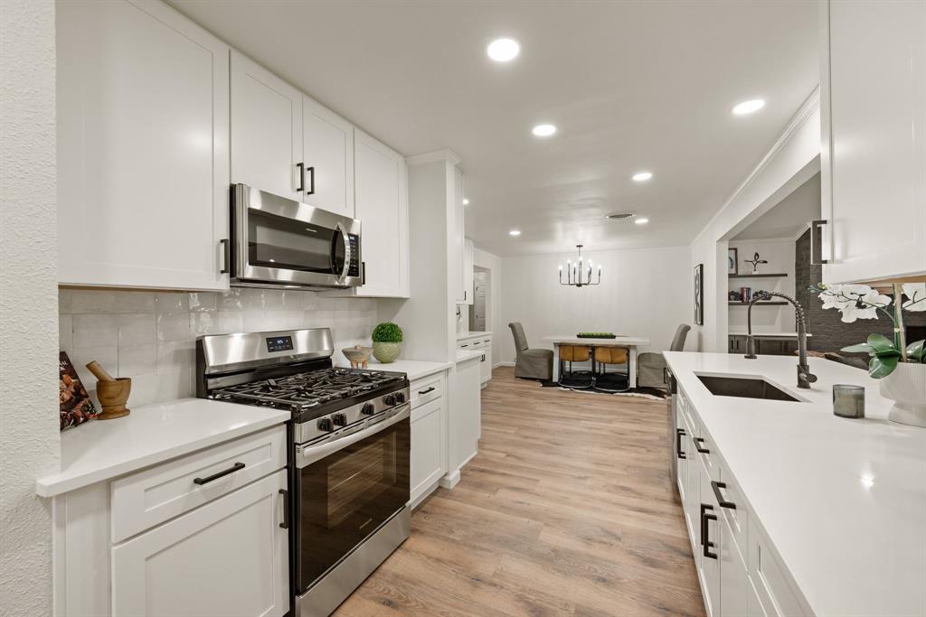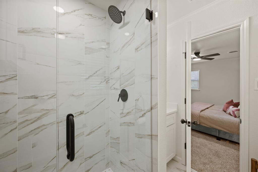 STUNNING fully renovated 3 bedroom 2 bath 1875 square foot home in desirable Bedford neighborhood! Nothing has been left untouched in this open concept home. New HVAC, electric panel, plumbing, windows, insulation, doors, paint inside & out, LVP floors, quartz countertops, crown molding, carpet, matte black fixtures, recessed lighting & much more await you in this one of a kind home. Multiple living & dining areas. Giant kitchen with custom soft close cabinets, quartz countertops, stainless steel appliances, & walk in pantry is perfect for any chef. Primary living area that is open to the kitchen containing vaulted ceilings with cedar beam, built in cabinetry, fireplace, recessed lighting on bluetooth dimmers, is great for entertaining. This property features 2 spacious guest bedrooms along with fully renovated guest bathroom. Large primary bedroom containing fully renovated magazine quality ensuite bathroom with walk in shower is perfect after a long day. Outside you will find a covered porch, sprinklers, large backyard & additional storage shed. Centrally located within minutes to schools, shopping, parks & major highways. Home is in the award wining HED ISD! Come see YOUR new home today!