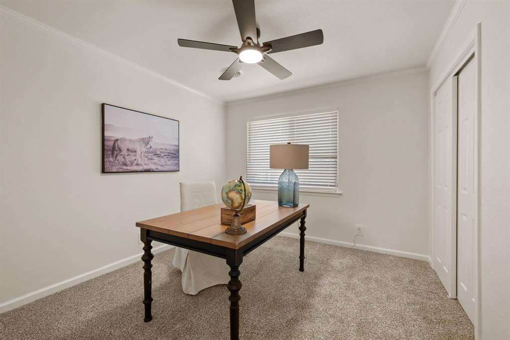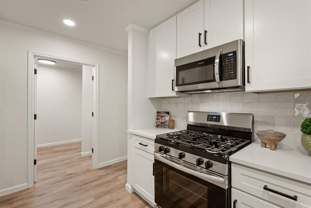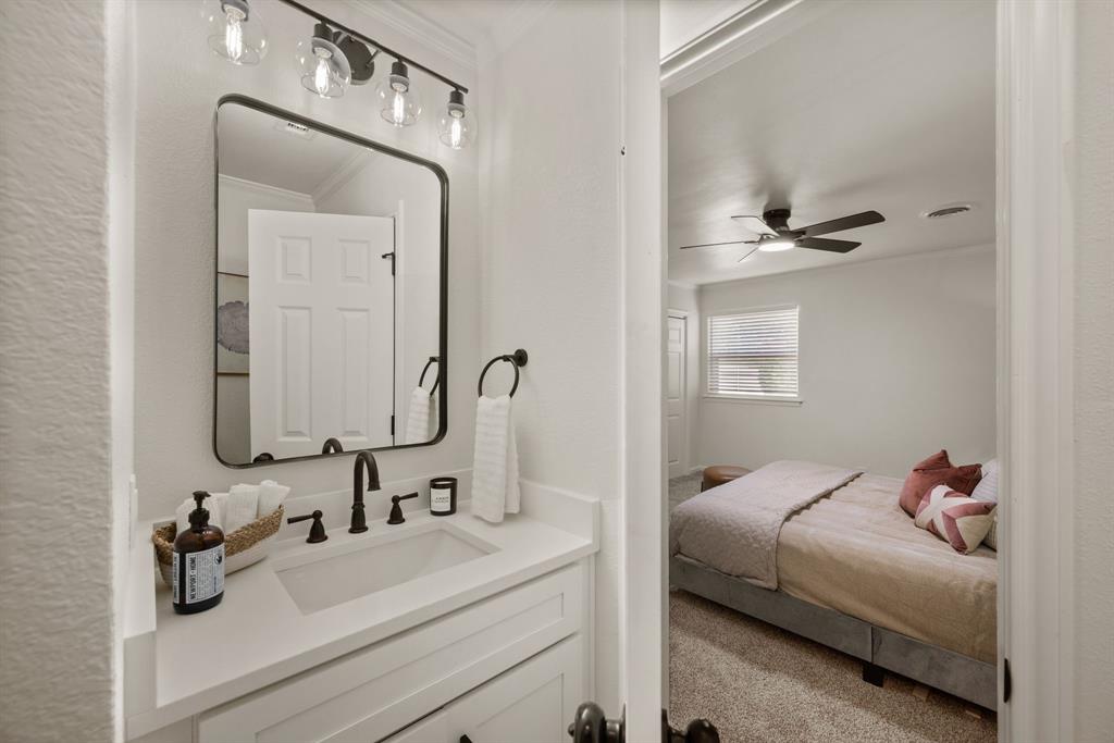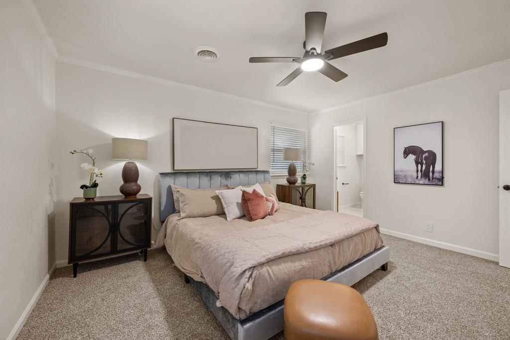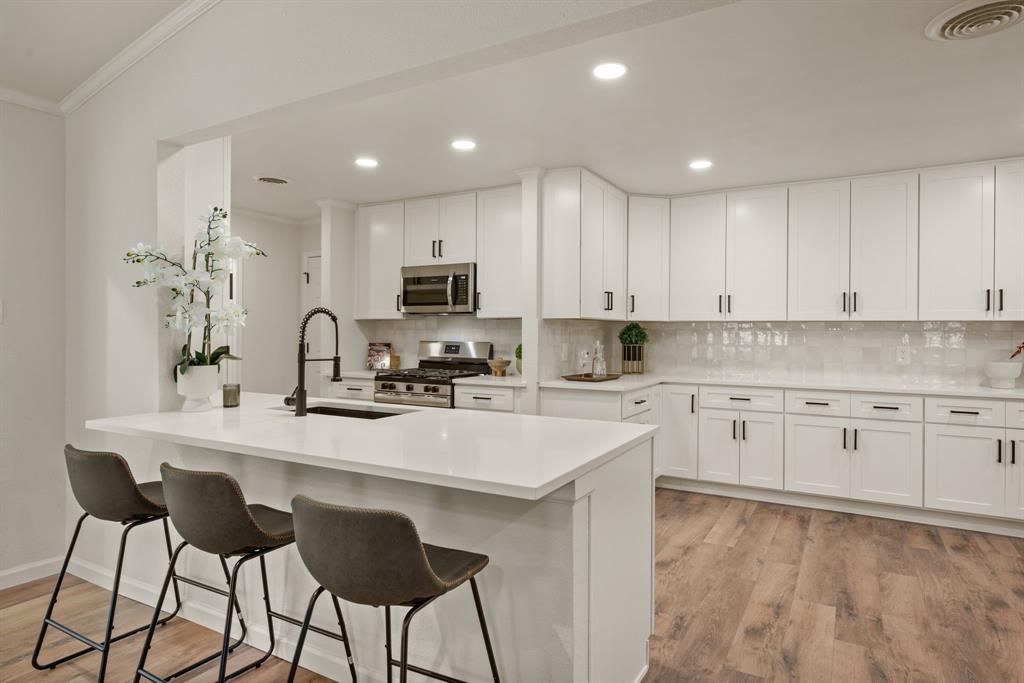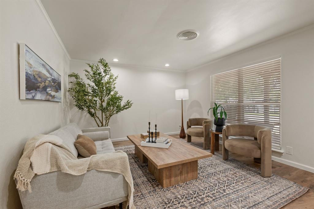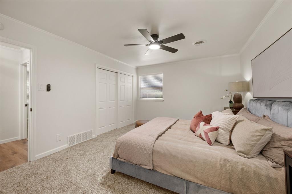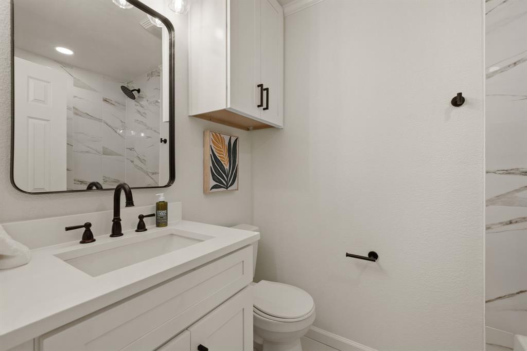 STUNNING fully renovated 3 bedroom 2 bath 1875 square foot home in desirable Bedford neighborhood! Nothing has been left untouched in this open concept home. New HVAC, electric panel, plumbing, windows, insulation, doors, paint inside & out, LVP floors, quartz countertops, crown molding, carpet, matte black fixtures, recessed lighting & much more await you in this one of a kind home. Multiple living & dining areas. Giant kitchen with custom soft close cabinets, quartz countertops, stainless steel appliances, & walk in pantry is perfect for any chef. Primary living area that is open to the kitchen containing vaulted ceilings with cedar beam, built in cabinetry, fireplace, recessed lighting on bluetooth dimmers, is great for entertaining. This property features 2 spacious guest bedrooms along with fully renovated guest bathroom. Large primary bedroom containing fully renovated magazine quality ensuite bathroom with walk in shower is perfect after a long day. Outside you will find a covered porch, sprinklers, large backyard & additional storage shed. Centrally located within minutes to schools, shopping, parks & major highways. Home is in the award wining HED ISD! Come see YOUR new home today!