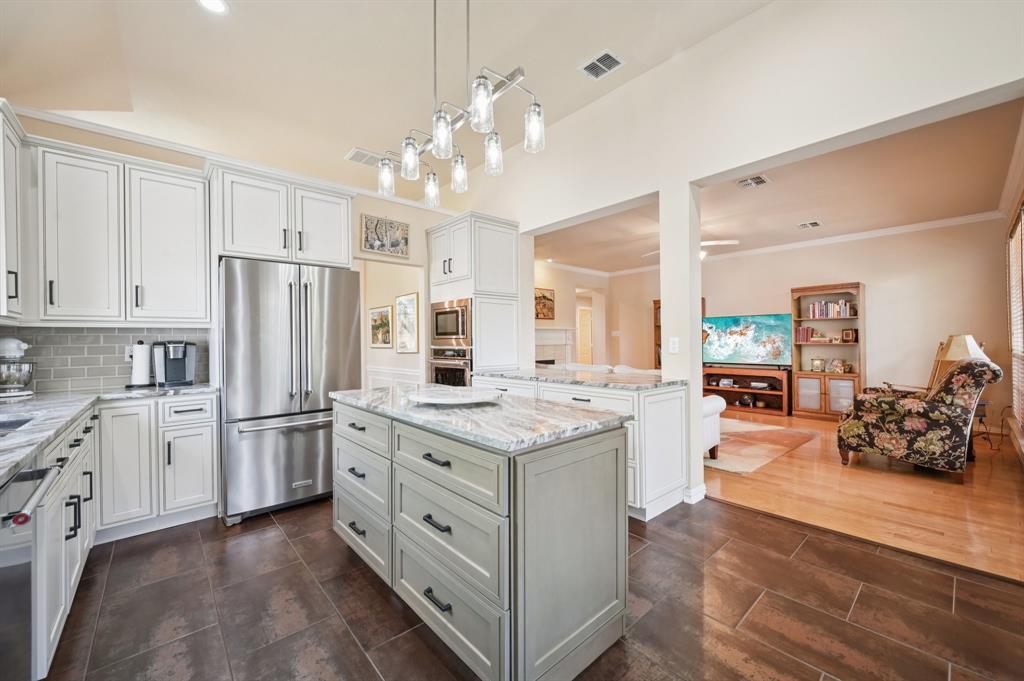 Impeccably reimagined and exquisitely finished, this stunning home in the prestigious Lakeview Estates offers the ultimate in style, sophistication, and convenience. Perfectly positioned near Lake Grapevine and just a short drive to DFW Airport, this property combines an unbeatable location with a show-stopping interior. From the moment you enter, you're welcomed by soaring ceilings and an elegant grand foyer that sets the tone for the rest of the home. Formal living and dining areas provide a refined space for entertaining, while the completely re-designed, down-to-the-studs kitchen is a culinary masterpiece—featuring custom cabinetry, gleaming quartz countertops, top-of-the-line appliances, and an abundance of natural light that pours in through oversized windows.