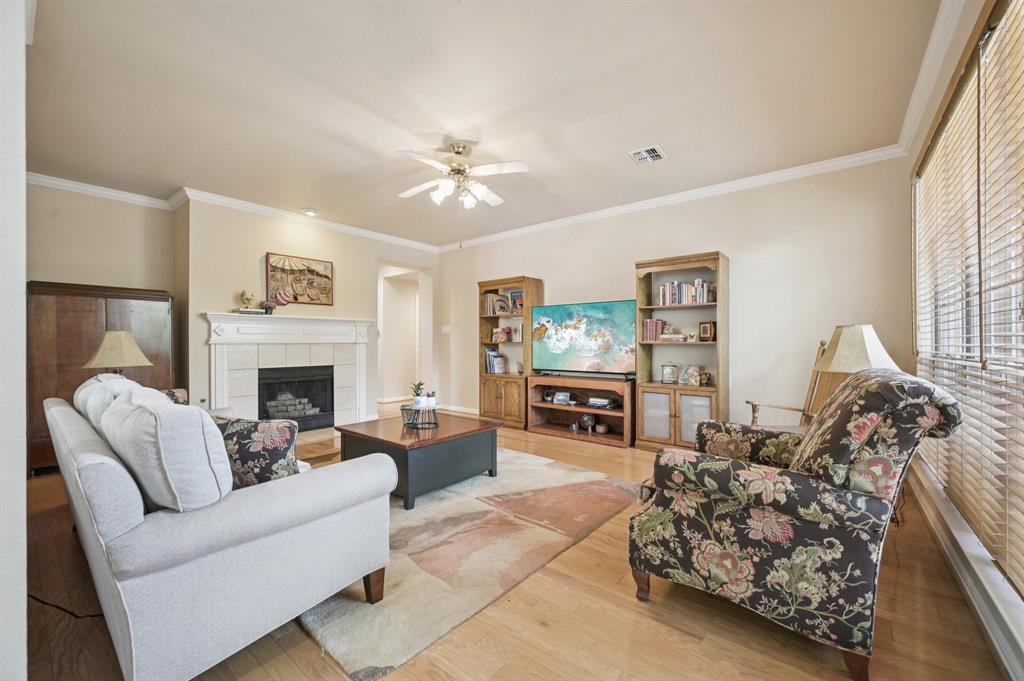 The inviting family room exudes warmth and sophistication, with rich hardwood floors, a cozy fireplace, and picturesque views of the lushly landscaped backyard. The primary suite is a true private retreat—massive in size, with its own sitting area and a breathtaking remodeled spa-inspired ensuite bathroom featuring a frameless glass walk-in shower, dual vanities, and luxurious designer touches throughout.