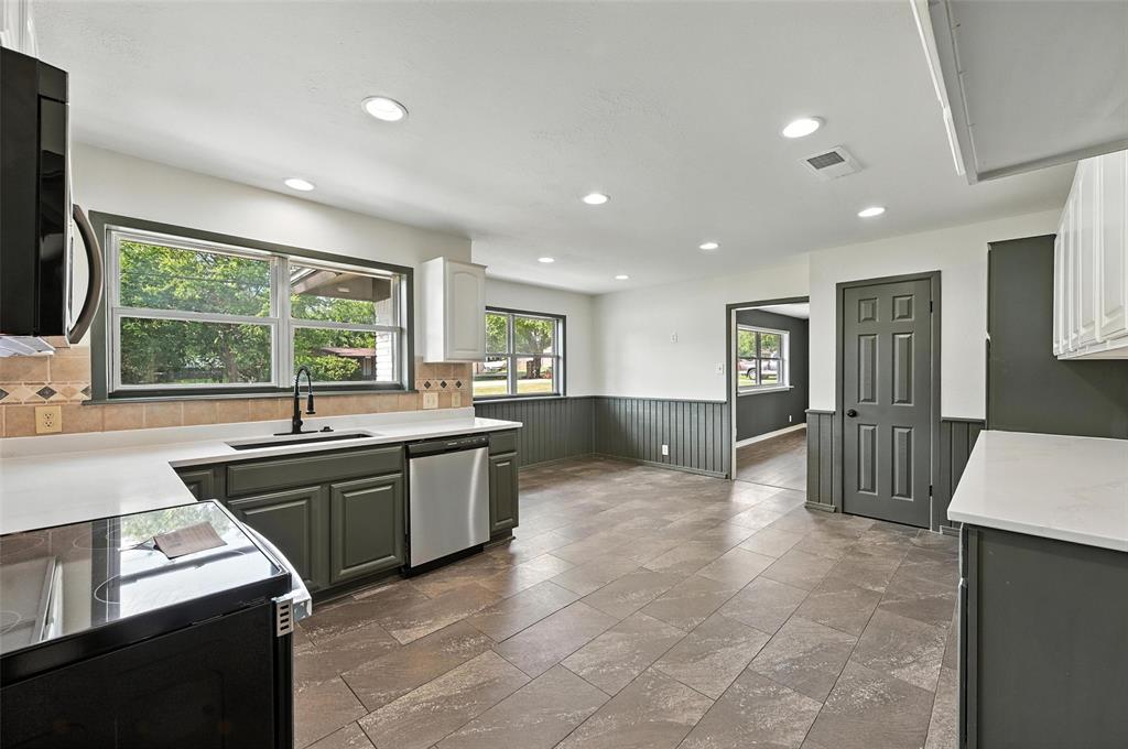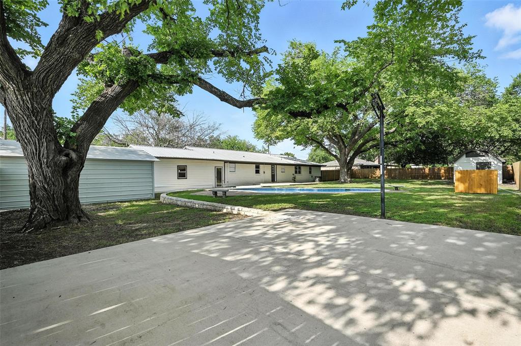 This beautifully remodeled Aledo home blends stylish design with a smart, functional layout. Light oak flooring and bright interiors are accented by rich, moody green cabinetry and trim for a modern yet inviting feel. The heart of the home features an updated kitchen with quartz countertops, new appliances, and a stunning backsplash, flanked by two spacious living areas perfect for entertaining or relaxing. Step outside to a backyard designed for fun and gatherings—complete with a diving pool, sports court, and mature shade trees. The home features a durable metal roof, attached two-car garage, detached two-car carport, extended driveway, and gated access to a rear barn provide exceptional utility for hobbyists or tradespeople. Covered parking for four vehicles and plenty of room to grow—this property has it all and will move quick. Schedule a showing today!