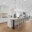 At the heart of the home, the chef’s kitchen delivers on every detail—quartz countertops, custom cabinetry, upgraded built-in appliances, and a massive island perfect for gathering. The space flows effortlessly into the dining and living areas, where a beautiful fireplace, warm wood floors, and panoramic backyard views set the scene for memorable evenings at home.