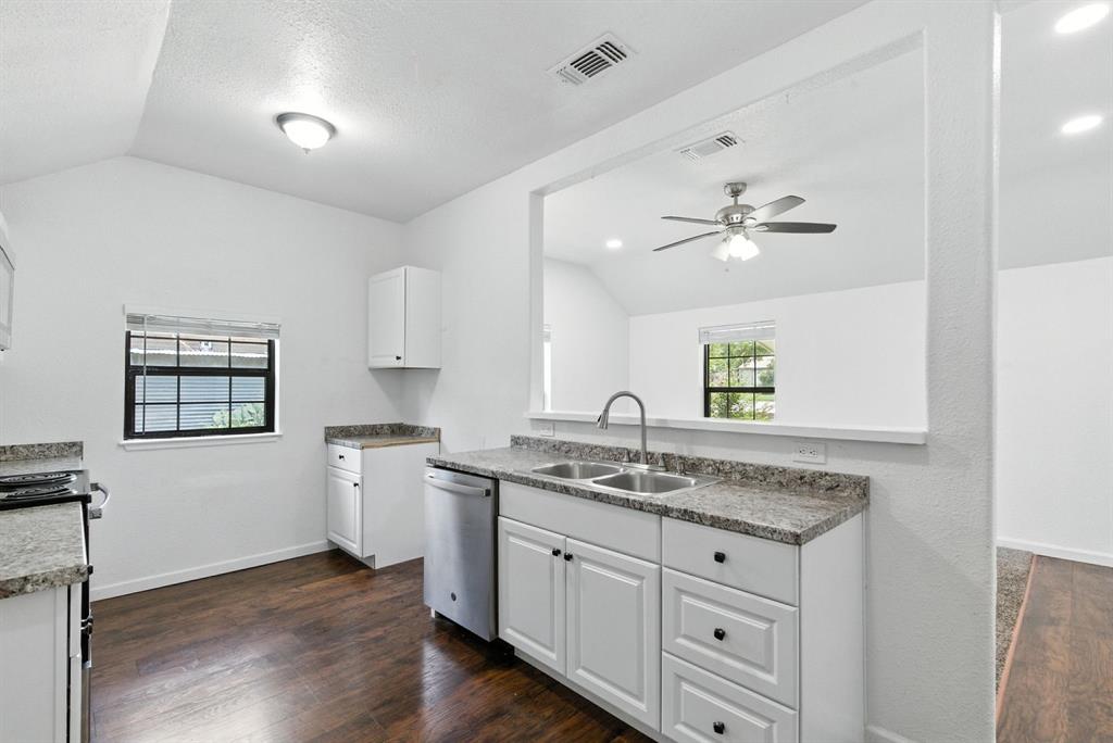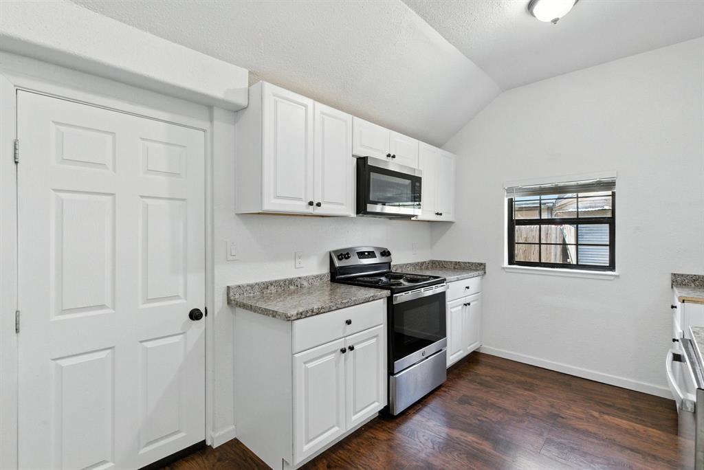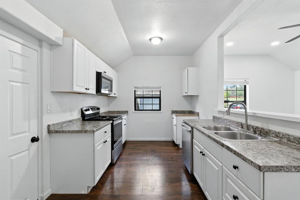 Welcome to this beautifully remodeled 2-bedroom, 2-bathroom home nestled on nearly half an acre in the heart of historic Downtown Weatherford. Featuring modern finishes throughout, this move-in ready home has luxury vinyl and tile flooring, a spacious primary suite with dual vanities, a large walk-in closet, and an oversized laundry room. All appliances are less than three years old, including the water heater. New HVAC installed this year. Enjoy outdoor living with a privacy-fenced backyard, storage shed, and a charming covered front porch. The expansive lot offers additional parking with room to build a shop — rare finds in this area! Located within a few blocks to Weatherford's charming shops and local dining on the square, this home combines convenience with comfort. Ideal for first-time buyers or small families looking for style, space, and flexibility. Come experience all the possibilities this oversized lot and turnkey home have to offer!