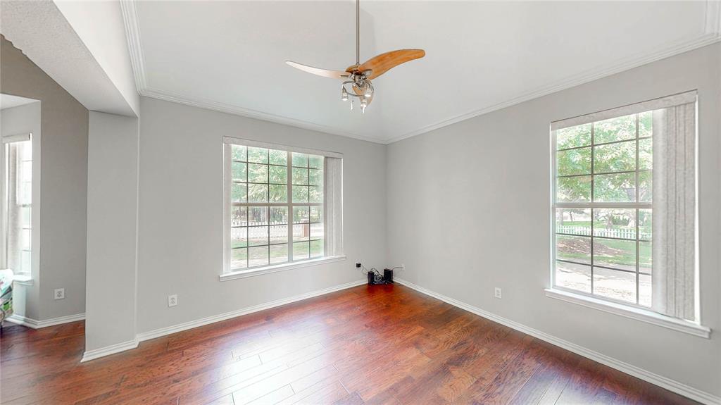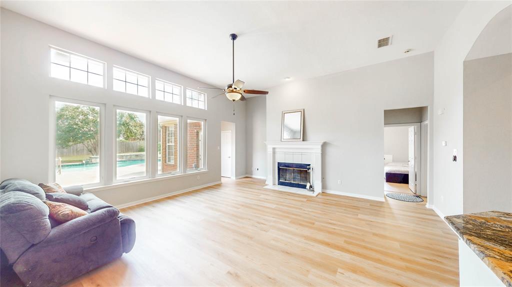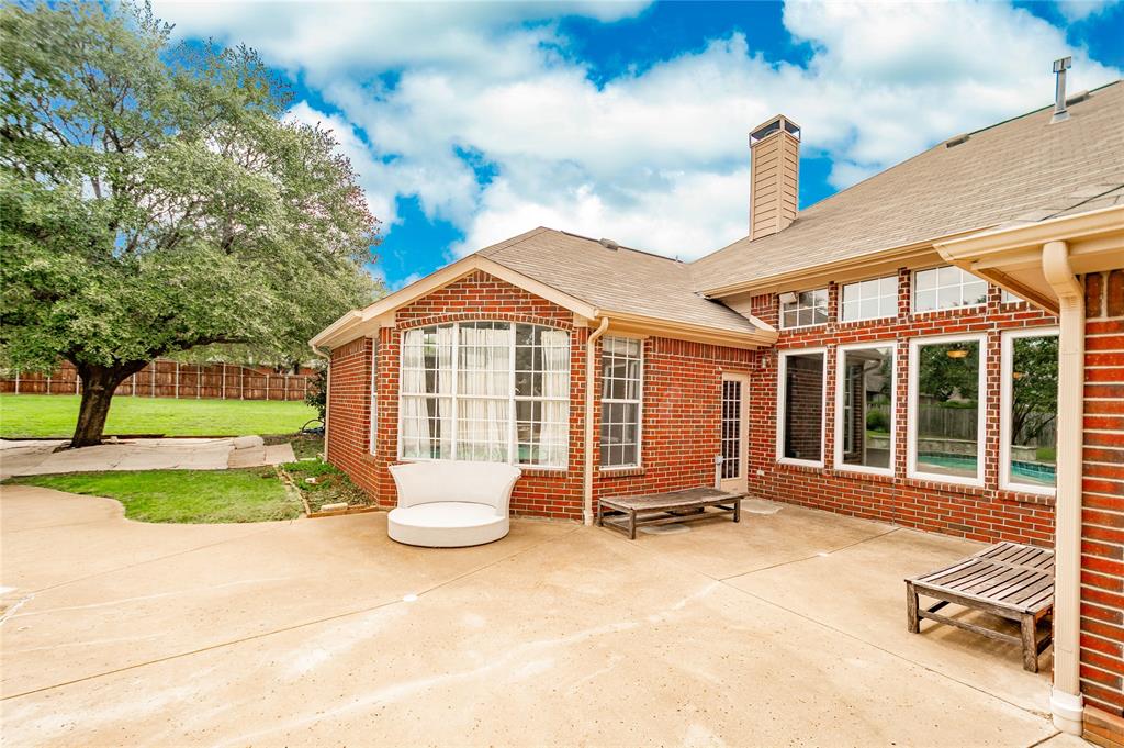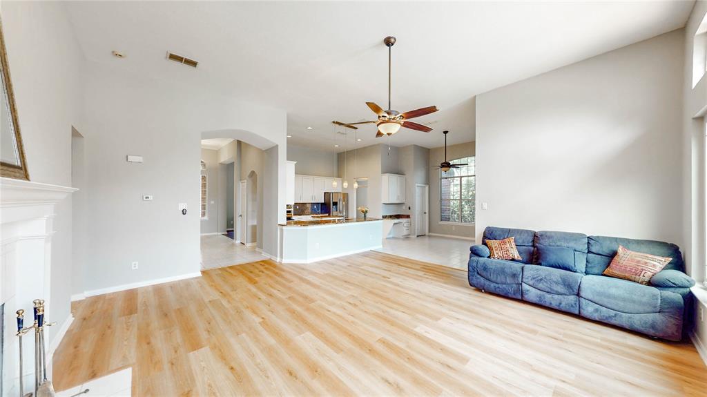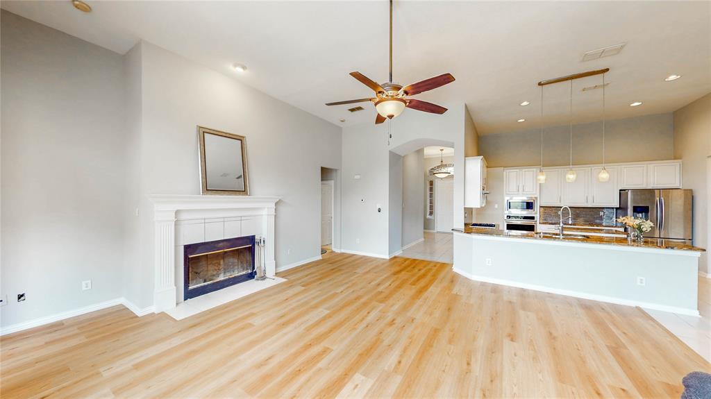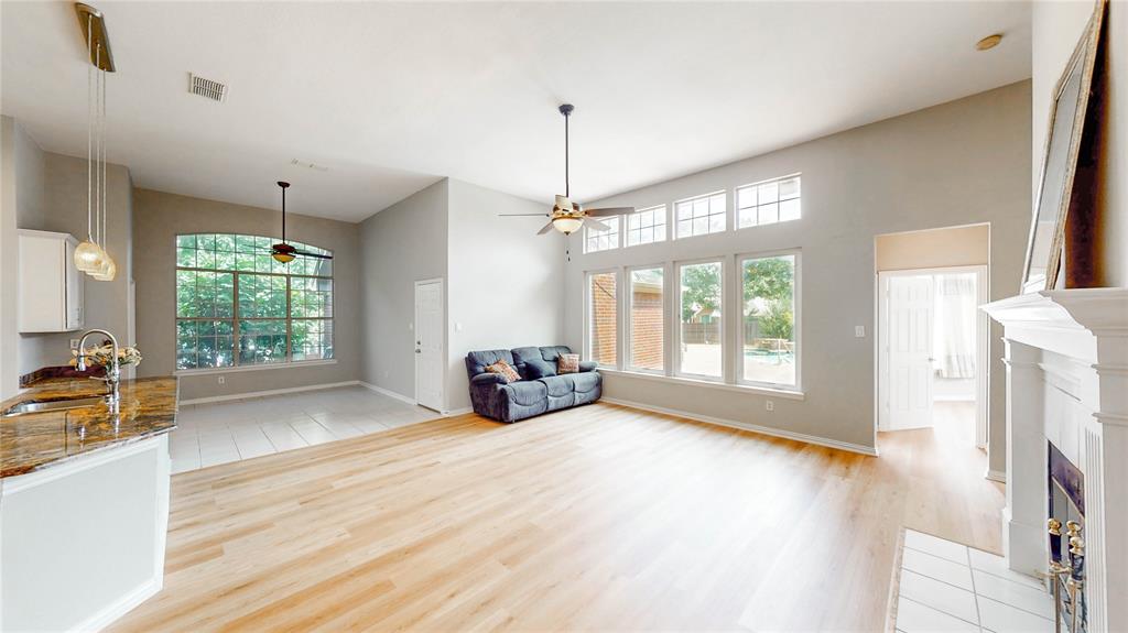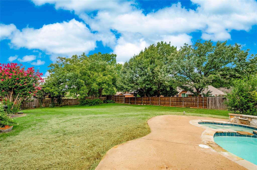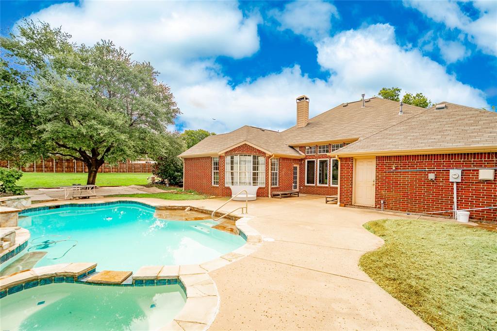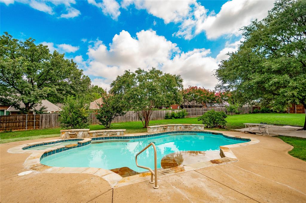 Nestled on just over an acre in one of Flower Mound’s most sought-after locations, this charming one-story home combines privacy, space, and unbeatable curb appeal. Surrounded by a white picket fence straight out of a storybook, this home offers peaceful living with the occasional visit from the famous Sagebrush peacocks – a beloved local treasure! Inside, you’ll find 4 spacious bedrooms and 3 full baths, all recently updated with fresh paint and warm wood flooring throughout. The heart of the home is the beautifully updated kitchen, featuring stainless steel appliances, granite countertops, and a convenient built-in desk nook—perfect for remote work or homework sessions. The thoughtfully designed floor plan places the primary suite privately at the back of the home, overlooking the gorgeous pool and expansive backyard. The ensuite bath boasts a new walk-in shower, dual vanities, soaking tub, and a generous walk-in closet. Secondary bedrooms are located toward the front of the home for optimal privacy. Enjoy the light-filled living room with its cozy gas fireplace and large windows framing views of the pool and yard. At the front of the home, two versatile flex rooms are ideal for a formal living or dining room, home office, playroom—or whatever suits your lifestyle. Outside, enjoy your very own private backyard oasis featuring a beautiful, sparkling pool—perfect for cooling off on warm Texas days or entertaining guests. Surrounded by mature trees and plenty of open space, it’s an ideal setting to relax, host, or play. The sprawling lot offers incredible space on all sides. Whether you dream of a lush garden, expanded outdoor living area, or just extra room to roam, this property has the flexibility to make it your own. Located near top-rated schools, shopping, dining, and all that Flower Mound has to offer, this home is a must-see!