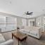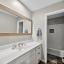 Inside, you'll find elegant panel molding, designer paint colors, and rich wood-look flooring throughout the main living areas. The kitchen is a showstopper, complete with quartz countertops, a farmhouse sink, glass-front cabinetry, and a functional island ideal for everyday living and entertaining.