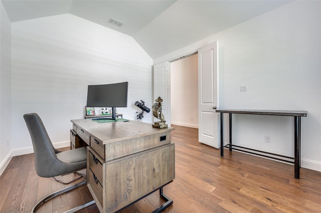 Located in the highly sought after golf club community of Castle Hills, this ONE STORY 3 bed - 2 bath home with a separate office is calling your name. Upon entering, the home greets with soaring 11' ceilings and beautiful wide plank wood floors throughout all the common areas and primary suite and office. The open and airy kitchen features SS appliances, a 5 burner gas cooktop and quartz counters which seamlessly flows into the living room, perfect for entertaining. The large primary sweet offers unobstructed views of the greenbelt directly behind this home and an oversized primary bath with dual vanities, dual walk in closets, garden tub and separate shower. Centrally located in DFW’s most desirable location, with easy access to all major highways, and multi-billion developments in Plano, Frisco, The Colony. Castle Hills Golf & Country Club Community offers 26 parks, 6 pools, sports fields, fitness facilities, multiple fishing ponds, lakes, walking and biking trails. Additionally, it's just a 10-15 minute drive to world-class shopping, dining, and entertainment at multiple venues including Grandscape, Legacy West, The Star Cowboys, and PGA headquarters.