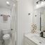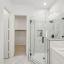The spacious first-floor primary suite is a true retreat, complete with serene backyard views and a spa-inspired bath featuring double vanities (including a seated vanity), a soaking tub, separate shower, and large walk-in closet.