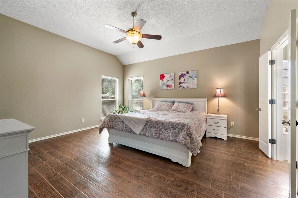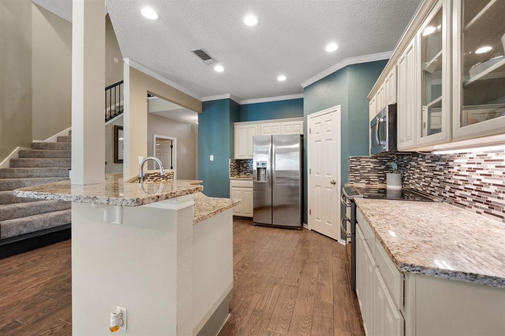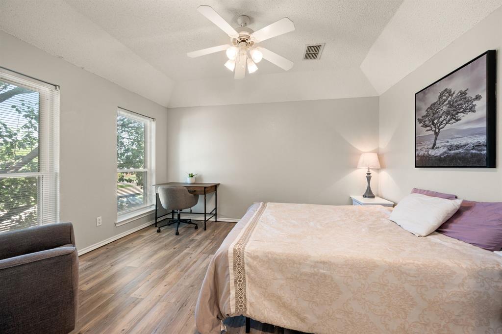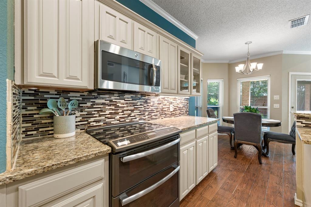 Welcome to this beautiful 3-bedroom, 2.5-bath home located in the highly desirable Whitestone Ranch addition in Benbrook, TX—just steps from Whitestone Golf Club and within walking distance to Westpark Elementary. This thoughtfully designed home offers a spacious and functional floor plan, starting with a grand entry featuring soaring ceilings, a dramatic staircase, and an open-concept living, dining, and kitchen area perfect for entertaining. At the front of the home, you'll find a versatile flex room currently staged as an office, but easily adaptable as a formal living or dining space to suit your needs. The well appointed kitchen features granite countertops, stainless appliances including a double oven with a convection feature and a large pantry for storage. The primary suite is conveniently located downstairs and feels like a private retreat with its large garden tub, separate tiled shower, dual sinks, and walk-in closet. Upstairs, you'll find two generous guest bedrooms, a full bath, and a versatile flex room - currently in use as a 4th bedroom - but ideal for a media room, game room or home gym. Enjoy peace of mind with energy-efficient upgraded windows (2020 & 2023) and a brand-new roof installed in 2024. Additional features include a private backyard with a covered porch, walk-out attic storage, and a location in a quiet, tree-lined neighborhood with bike paths and a welcoming community feel. This home combines comfort, convenience, and style in one of Benbrook’s most charming neighborhoods. Don’t miss it!