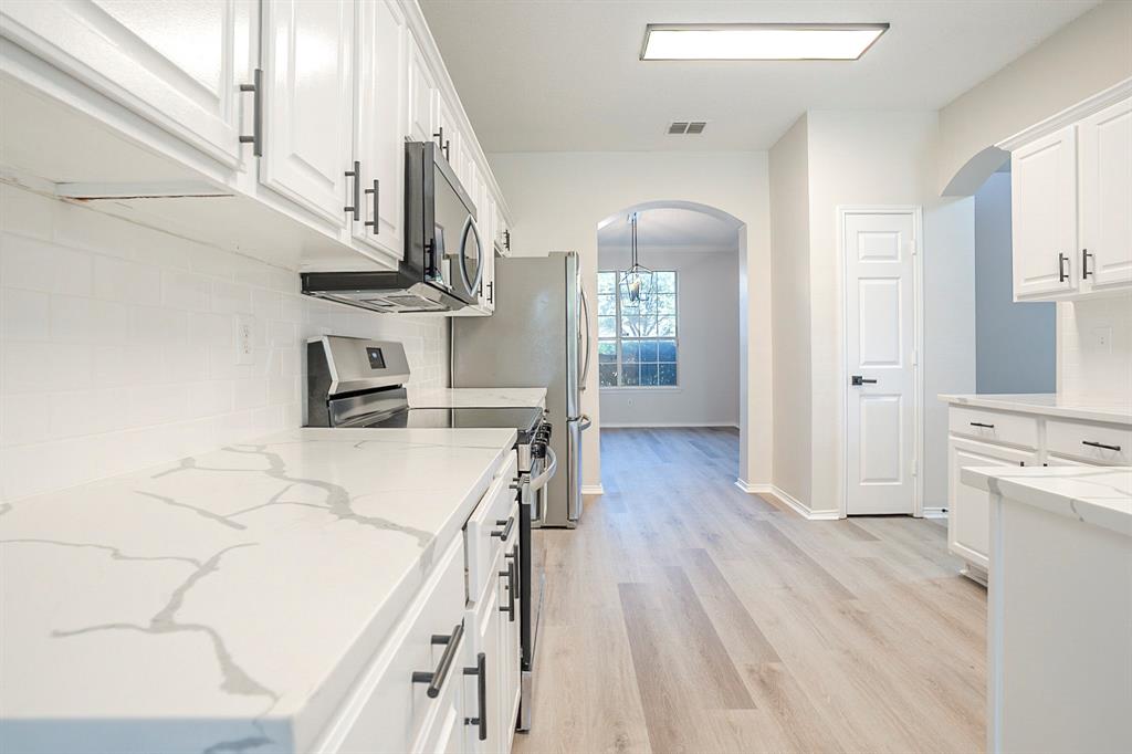 Welcome to 2908 Blacksmith Court—an updated and move-in-ready home tucked away on a spacious cul-de-sac lot in the heart of Grand Prairie. This charming two-story offers the perfect blend of style, function, and comfort with recent upgrades throughout. From the moment you arrive, you’ll appreciate the fresh exterior paint and inviting curb appeal. Step inside to discover all-new luxury vinyl plank flooring, fresh interior paint, updated lighting, and plush new carpet in the bedrooms. The refreshed kitchen is the heart of the home and features a brand-new stainless steel appliance package including range, microwave, and dishwasher. Elegant quartz countertops, a modern tile backsplash, and generous cabinet space make this kitchen as practical as it is beautiful. The open floor plan flows seamlessly from the kitchen into the dining and main living area, making it perfect for entertaining or everyday living. You will enjoy the large primary suite with a walk-in closet and a beautifully updated ensuite bath with soaking tub and stand-up shower. Upstairs, you'll find three spacious bedrooms and plenty of additional living space. All bathrooms have been tastefully refreshed to feel clean, bright, and up to date. Additional highlights include new ceiling fans and fixtures, updated hardware, and a versatile layout with two living areas. Situated on an oversized lot, the backyard offers plenty of space to play, garden, entertain, or build your dream outdoor setup. Whether you're hosting a cookout or enjoying a quiet evening under the trees, there's room for it all. Located near shopping, dining, parks, and highways for easy commuting, this home checks all the boxes. Don't miss your chance to own this thoughtfully updated gem in an established neighborhood—schedule your showing today!
