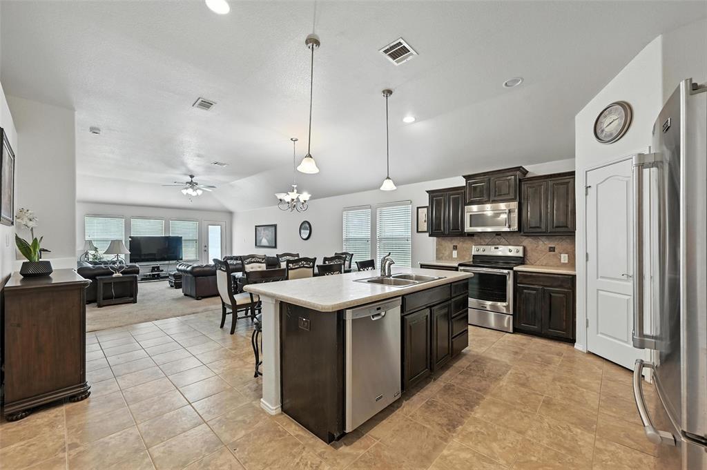 Step into this super clean, well-maintained brick home featuring 4 spacious bedrooms plus an office, 2 full baths, and a 2-car garage. Built in 2014 and lovingly cared for by its original owner, this home offers a bright, open-concept floor plan perfect for everyday living and entertaining. The kitchen shines with a large island (complete with sink), abundant cabinetry, and a stylish backsplash—flowing seamlessly into the inviting living area.