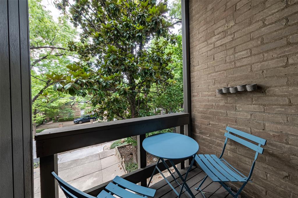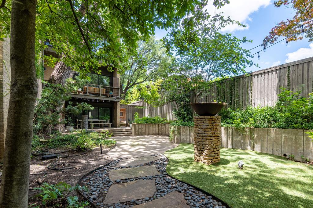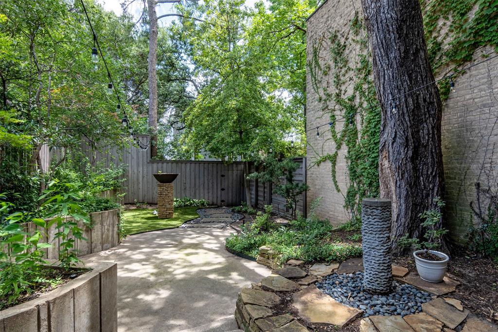 Check out this rarely available Frank Welch designed townhouse in Uptown. This unique townhouse has a large, private backyard viewable from each level of the home. Covered outdoor patios, walk-out deck & balcony on each level allow the owner to easily walk out and enjoy views of the lush garden & surrounding trees. The backyard flanked by the beige brick wall is a combination of green vegetation, molded concrete planters & blue river rock to create a tranquil place to relax in the middle of the bustling city. The house was recently updated with lightly stained hard wood floors, large bookcases on the first & third levels, coffee bar & new lighting. On the first floor is a bedroom or study and full bath with walk-out covered porch with dining table. On the second floor a cozy living area with fireplace, kitchen & eating area. The second floor also has a walk-out balcony with sitting furniture to enjoy the exterior views. The third floor is all master suite. It has a fireplace, coffee bar with sitting area, huge book case, walk-in closet, bathroom with balcony overlooking Buena Vista. Come see this urban oasis half a block from the Katy Trail and 2 blocks from West Village. Truly this is a one-of-a-kind property.