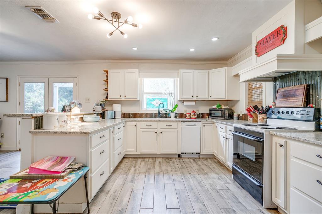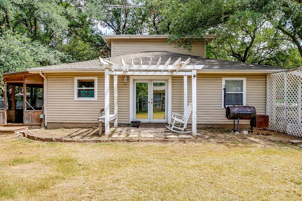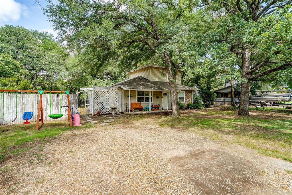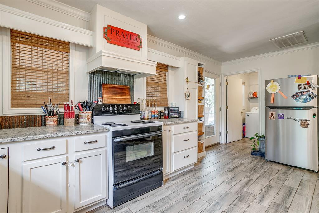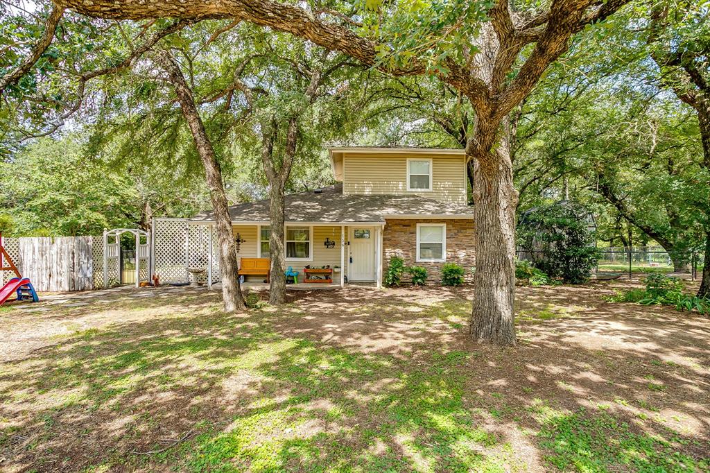 COUNTRY COTTAGE surrounded by mature trees in a beautiful, tranquil setting! Come take a look at this well kept home featuring newer wood look tile, paint, ceiling fans and 3 full baths. The modern farmhouse kitchen features granite countertops, breakfast bar, shaker style cabinets with a huge walk in pantry! The downstairs primary ensuite bedroom has a beautiful, updated large shower. The upstairs ensuite second primary bedroom has a full bath, too, with a walk in closet. As you exit the French doors, you have a sitting area under the pergola. The covered back deck is a great place to enjoy your morning coffee and watch the wildlife. Actually, there are several outdoor sitting areas! The backyard is fenced with great pipe fencing. There is a detached carport and nice storage building. You will have plenty of room to park your RV, toys, have a garden or playset. You really need to take a look at this home and property and make it yours! (Buyer to verify all measurements, SF, ISD)