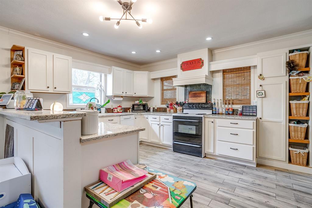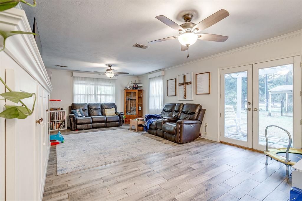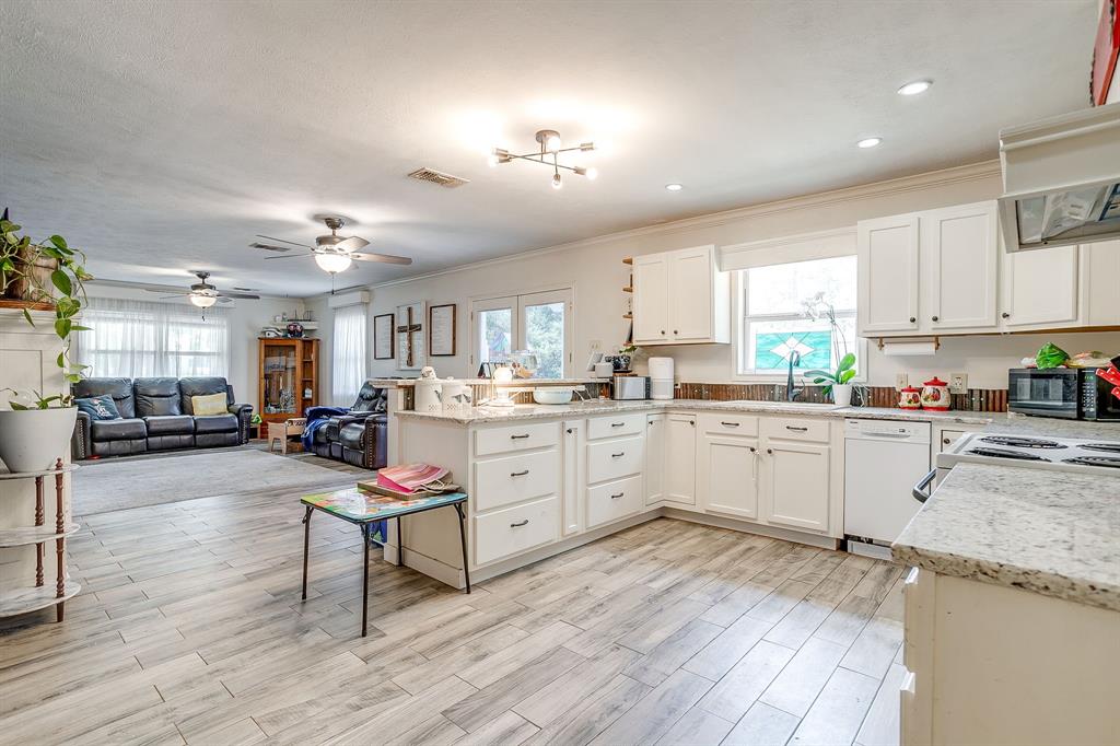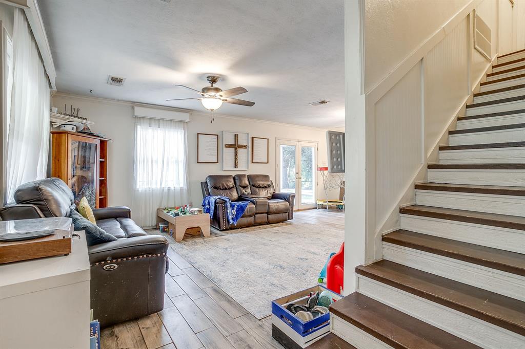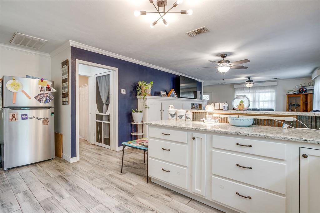 COUNTRY COTTAGE surrounded by mature trees in a beautiful, tranquil setting! Come take a look at this well kept home featuring newer wood look tile, paint, ceiling fans and 3 full baths. The modern farmhouse kitchen features granite countertops, breakfast bar, shaker style cabinets with a huge walk in pantry! The downstairs primary ensuite bedroom has a beautiful, updated large shower. The upstairs ensuite second primary bedroom has a full bath, too, with a walk in closet. As you exit the French doors, you have a sitting area under the pergola. The covered back deck is a great place to enjoy your morning coffee and watch the wildlife. Actually, there are several outdoor sitting areas! The backyard is fenced with great pipe fencing. There is a detached carport and nice storage building. You will have plenty of room to park your RV, toys, have a garden or playset. You really need to take a look at this home and property and make it yours! (Buyer to verify all measurements, SF, ISD)