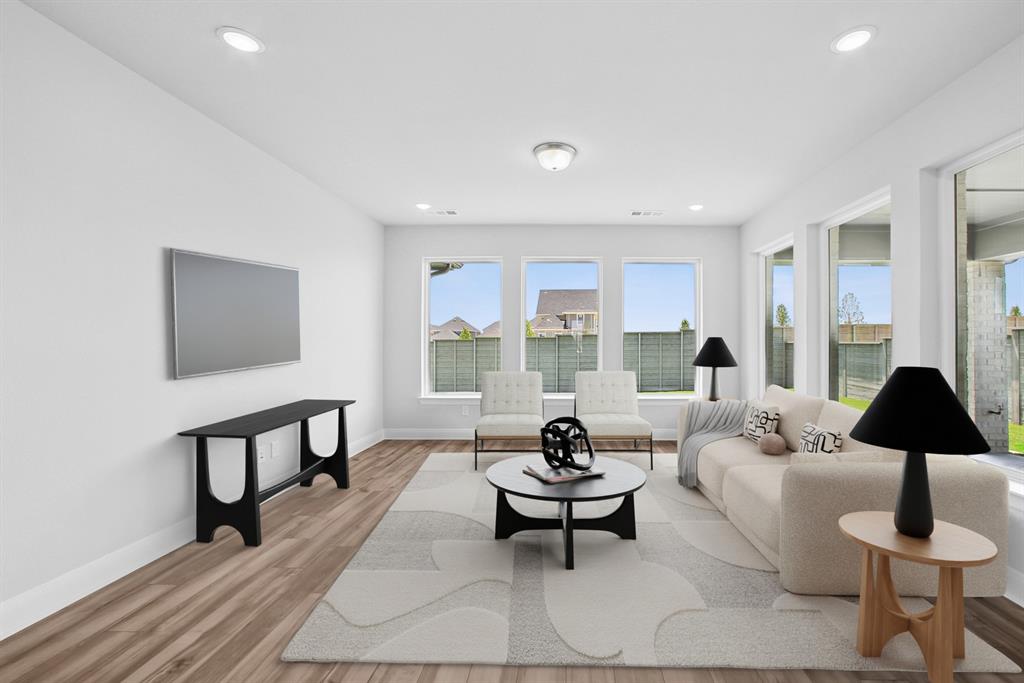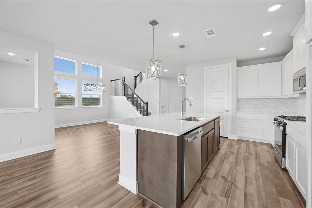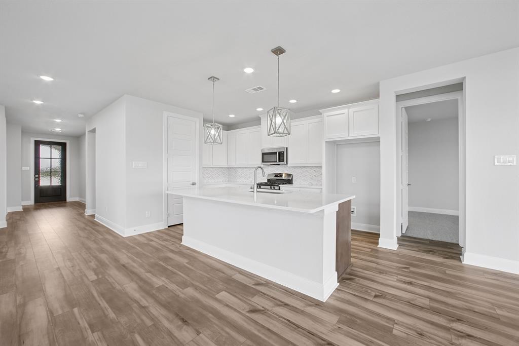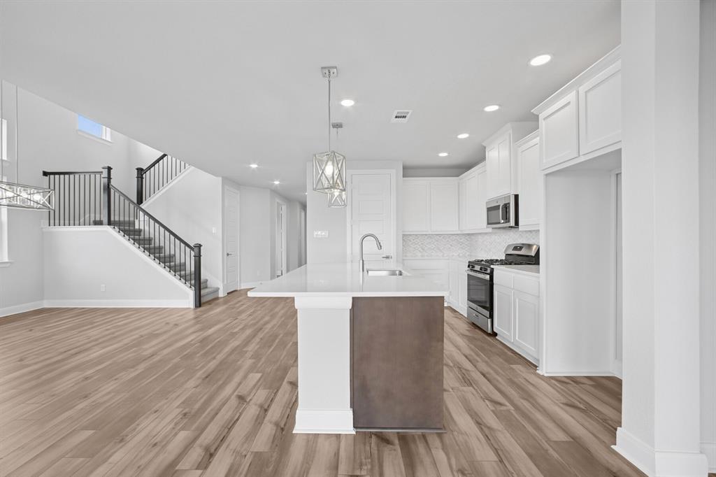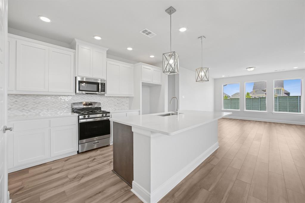 Welcome to the classic and contemporary luxuries of this new home for sale in Treeline located in Justin, Texas. Here, you can play host and get the most out of everyday life in your elegant and inviting open-concept living spaces. The epicurean kitchen offers a superior storage, meal prep, and presentation experience. Create your ultimate home office in the downstairs study and a brilliant family fun parlor in the upstairs retreat. Each spare bedroom features ample closets, unique appeal, and plenty of room for personalization. Your inspired Owner’s Retreat provides a peaceful escape from the world with a pamper-ready bathroom and a deluxe walk-in closet. Call or chat with the David Weekley Homes at Treeline Team to learn about the industry-leading warranty included with this new construction home in Justin, Texas.
