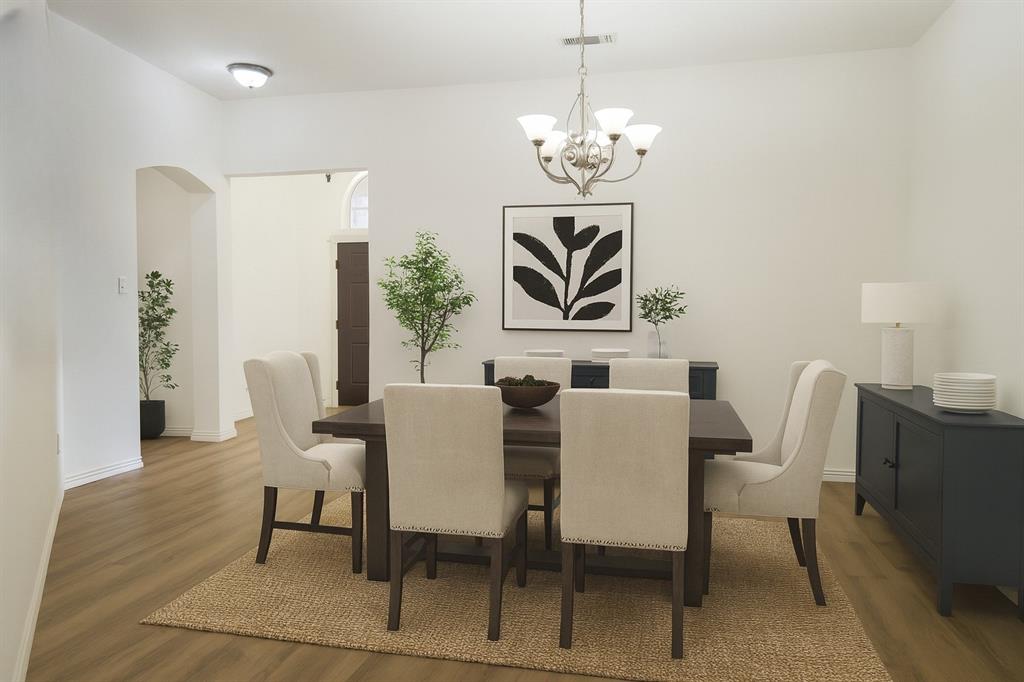 Move-in Ready single-story home in the heart of Frisco! With over $35K in thoughtful renovations, this home features 4 bedrooms + study ! You'll love the brand-new flooring throughout, sleek quartz countertops in both the kitchen and bathrooms, and the refreshed hallway bath featuring a new vanity and bathtub. The layout is perfect for everyday living and entertaining, with four comfortable bedrooms, a spacious family room, and a separate office with elegant double doors that is ideal for working from home or creating a quiet retreat. Fresh paint inside and out gives the home a bright, clean feel. New water heater. Step outside and enjoy all that the community has to offer, including a pool and a fun play area just down the street. Plus, you're within walking distance of a top-rated elementary school.