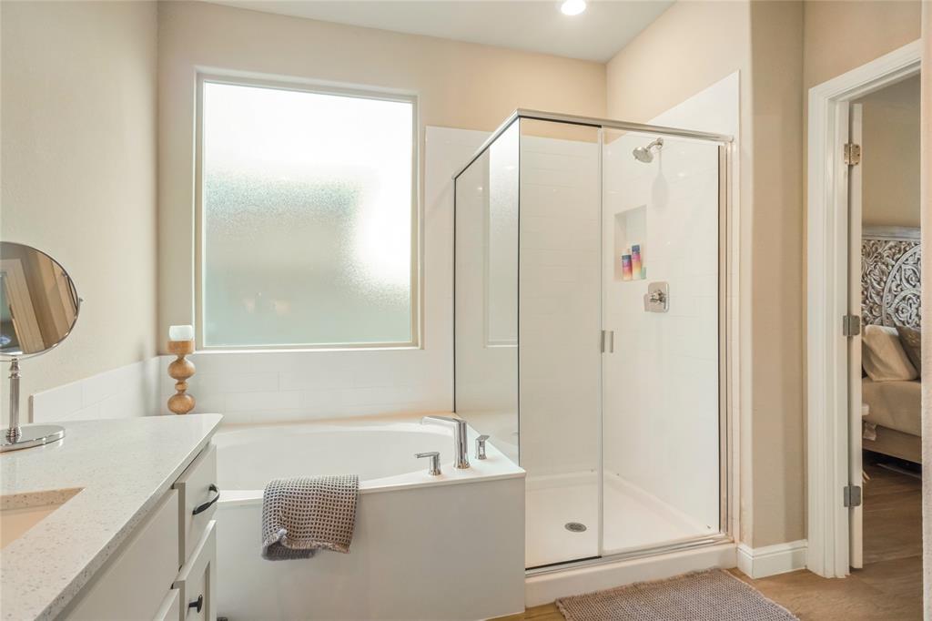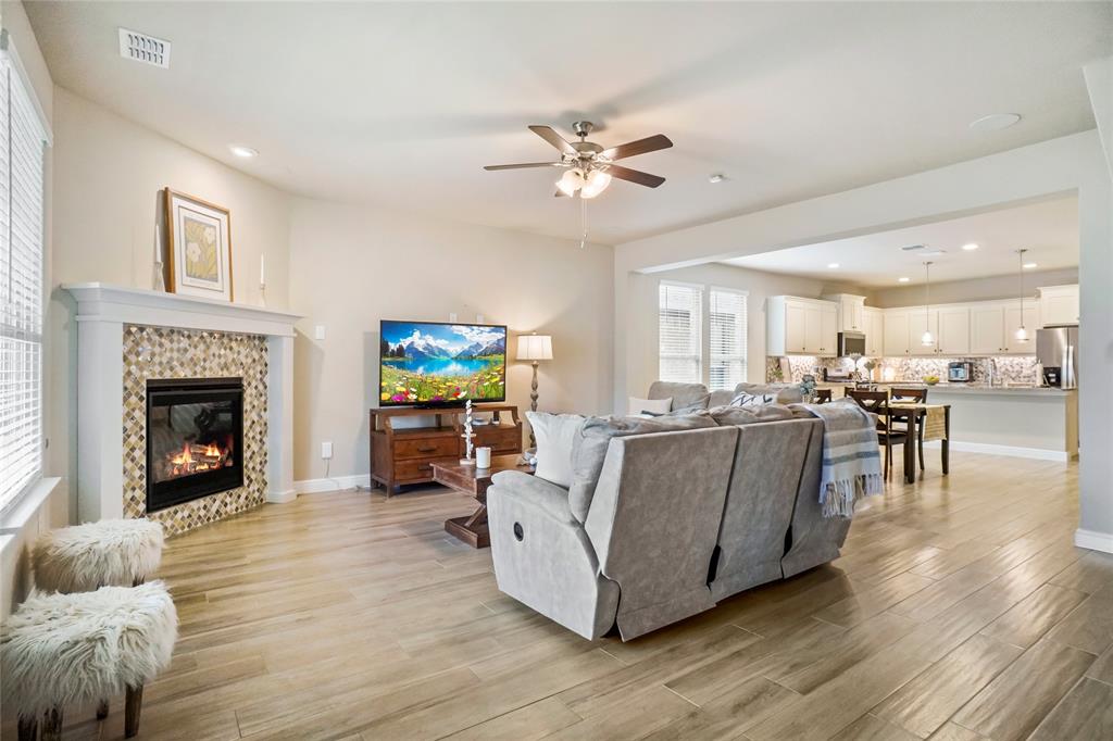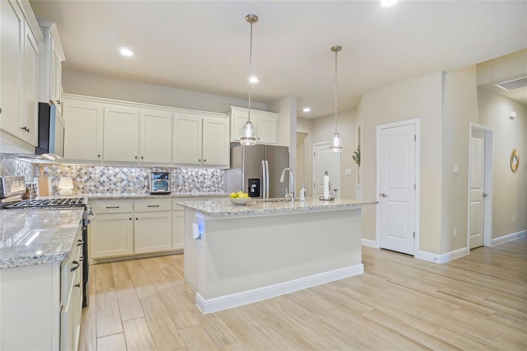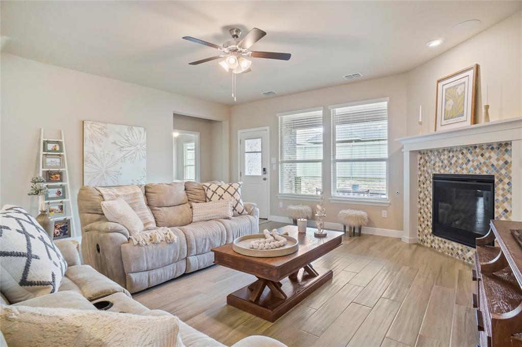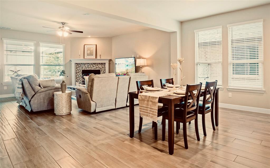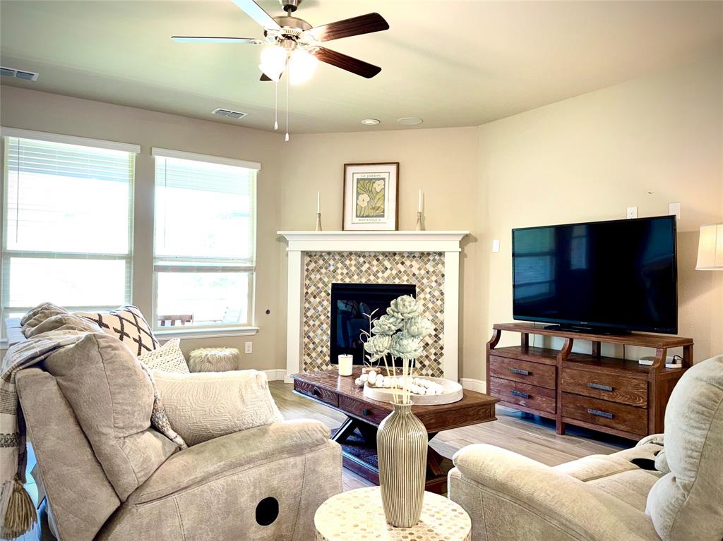 VA BUYERS!! 3.625% interest rate-save hundreds of dollars PER MONTH! Resort style amenities! Immaculate 1.5 story in FABULOUS Pecan Square on a Premium Cul-de-sac lot. REFRIGERATOR, WASHER AND DRYER can stay! 4 bedrooms, 3 full baths, plus an office(or 5th bedrm?) Almost all of the living, bedroom spaces are down, but the huge 4th bedroom is up with full bath and large walk-in closet. This wonderful open concept floorplan is light and bright! Seller extended the wood-look tile floors throughout, carpet is only in the secondary bedrooms. Kitchen features white cabinetry, upgraded appliances and a big island, and is open to the spacious dining and family room with gas fireplace. Plenty of storage with a 2nd oversized pantry off of the mudroom across from office. The HUGE light filled owners retreat is split from the other bedrooms offering the perfect getaway. 4th bedroom up could also be a game or media room. Relaxing at home is made easy-from hanging out on your covered front porch or entertaining in the backyard with its large covered patio, a natural gas stub to hook up your grill and plenty of grassy area for kids, pets, AND best of all-no visible neighbors behind you. Pecan Square is an AWARD winning community due to all its amenities. Residents love the gathering spaces and community events, multiple pools ,playgrounds (for kids and dogs:),work-out facilities and covered pickleball and basketball courts, tennis courts, Amazon Hub... You also get high speed internet and a Smart Home system included as part of your HOA fees. Dog lovers will appreciate the Dog Park just around the corner, again this location-street is one of the best in Pecan Square
