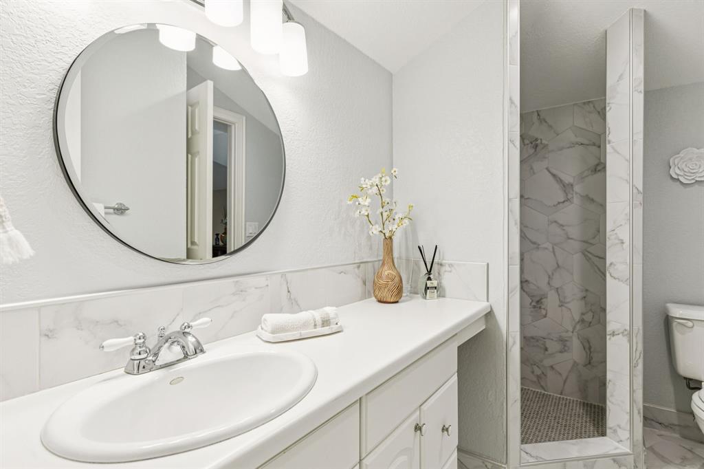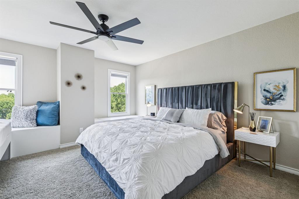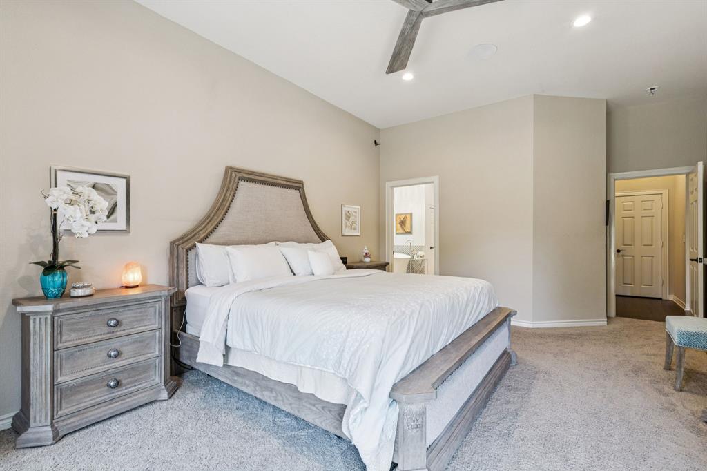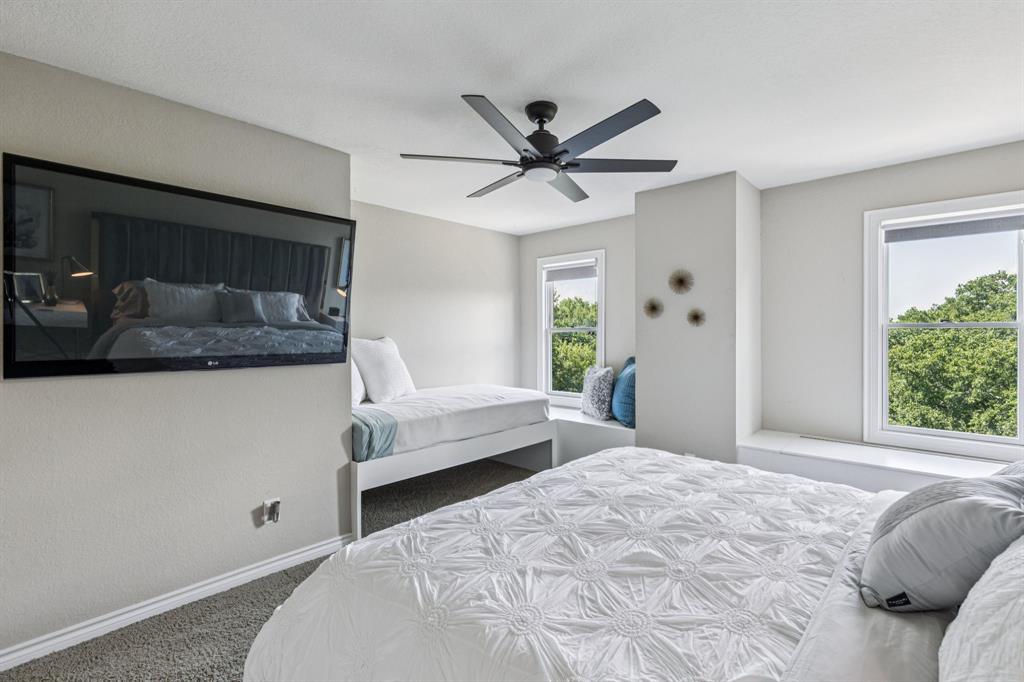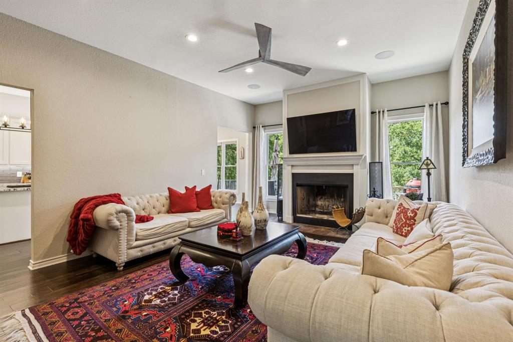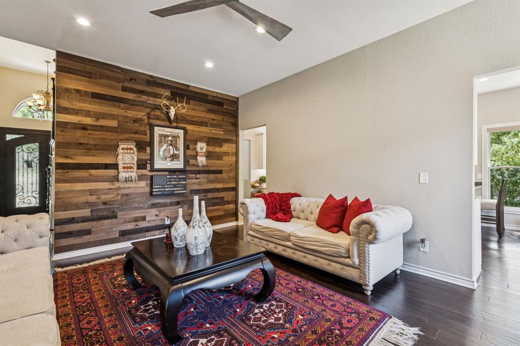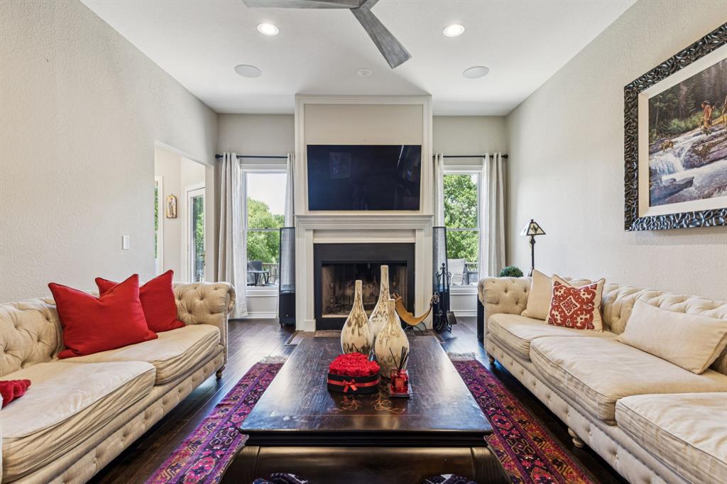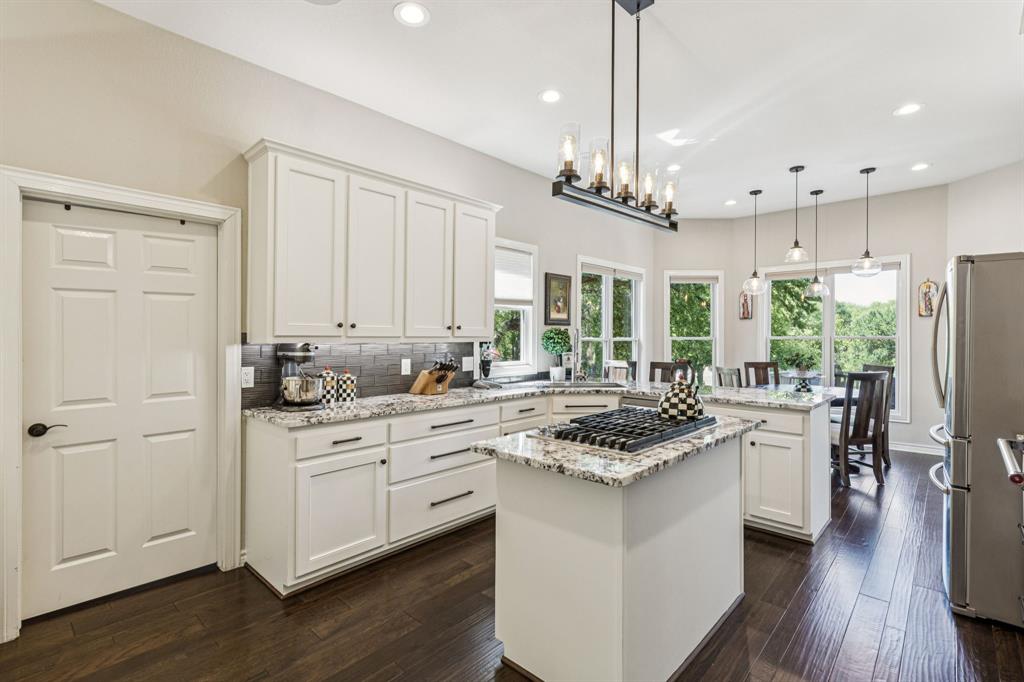 Brilliantly remodeled 4-bedroom, 3.5-bathroom sitting on a scenic 1-acre lot just down the cul-de-sac from Lewisville Lake! Upon arrival, the circle driveway, textured stucco facade, and spacious front porch make a lasting first impression. Rich, dark engineered hardwood floors greet you as you enter, and they run throughout the home's common areas. With numerous welcoming living areas, you'll have more than enough room to host friends and family. The private office, with a wood-burning fireplace and an abundance of built-in shelving, is an ideal space to work from home or focus on your favorite hobbies. The remodeled eat-in kitchen is outfitted with sleek granite countertops, shaker cabinets, a gas range, stainless steel appliances, and updated fixtures. A section of custom glass-front cabinets with built-in lighting adds character to the space. The bay window of the breakfast room floods the space with natural light. Escape to the private primary suite with a remodeled ensuite bathroom highlighted by a standalone tub, massive frameless walk-in tile shower, dual quartz vanities, and dual walk-in closets. Secondary full bathrooms have been updated with similar high-end finishes. Rich wood stairs with stylish, dark treads lead to a flexible living space upstairs, perfect for a game room or playroom. The sink installed in the utility room makes doing laundry more convenient and efficient! Take in the expansive lot from the elevated vantage point of the back deck. The detached storage shed features roll-up doors and electricity. Enjoy the peace of mind that comes with purchasing a home where foundation work was completed this summer, plus a Class IV roof installed in 2024! Keep energy bills down year-round with the help of double-hung Pella windows throughout the home. The entire home is pre-wired for audio, and the whole home generator will ensure you're never without electricity, even in the face of severe weather.