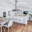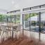 Five new VELUX skylights and floor-to-ceiling windows flood the home with natural light, while patios seamlessly connect indoor and outdoor living. The open-concept kitchen, anchored by a 48” Wolf range and oversized island, flows into the living and dining areas—perfect for hosting or relaxing.