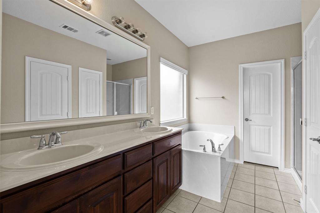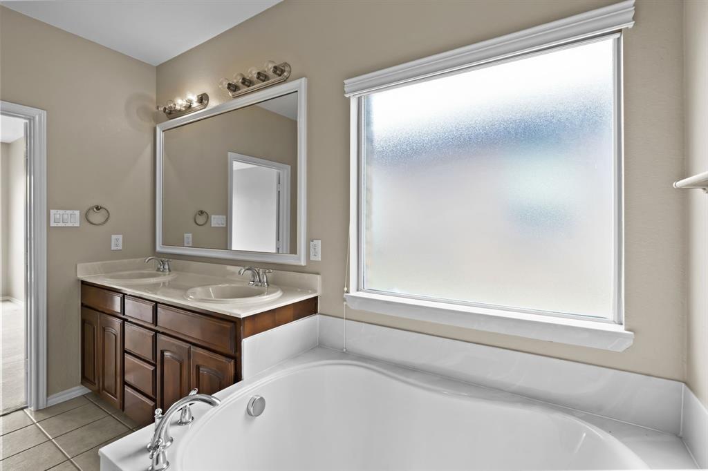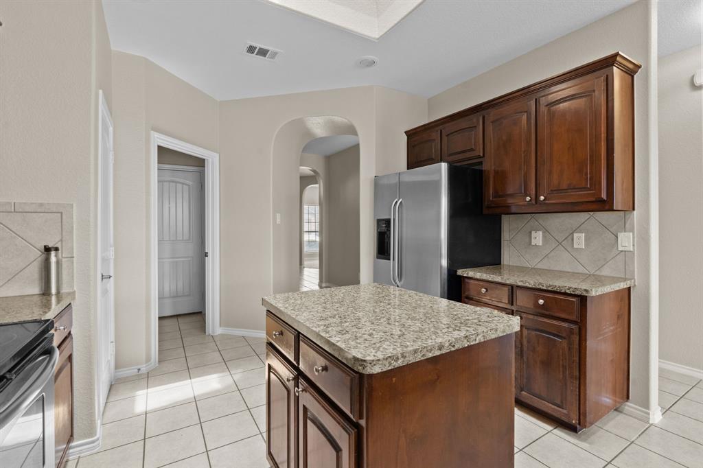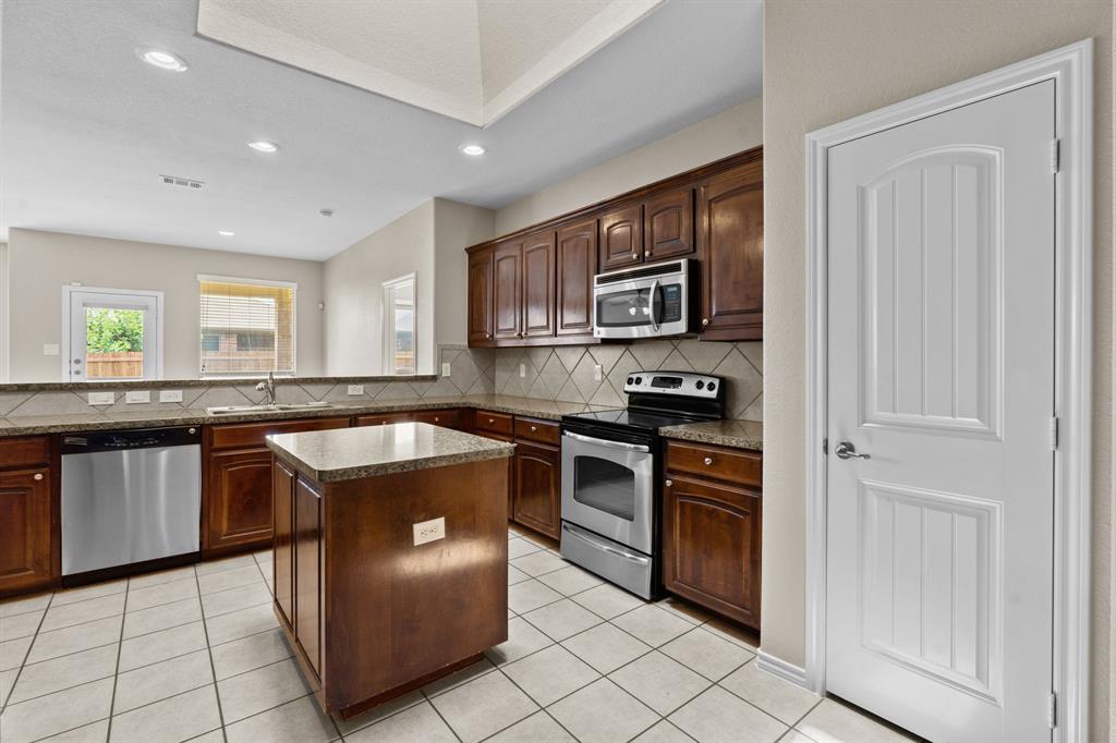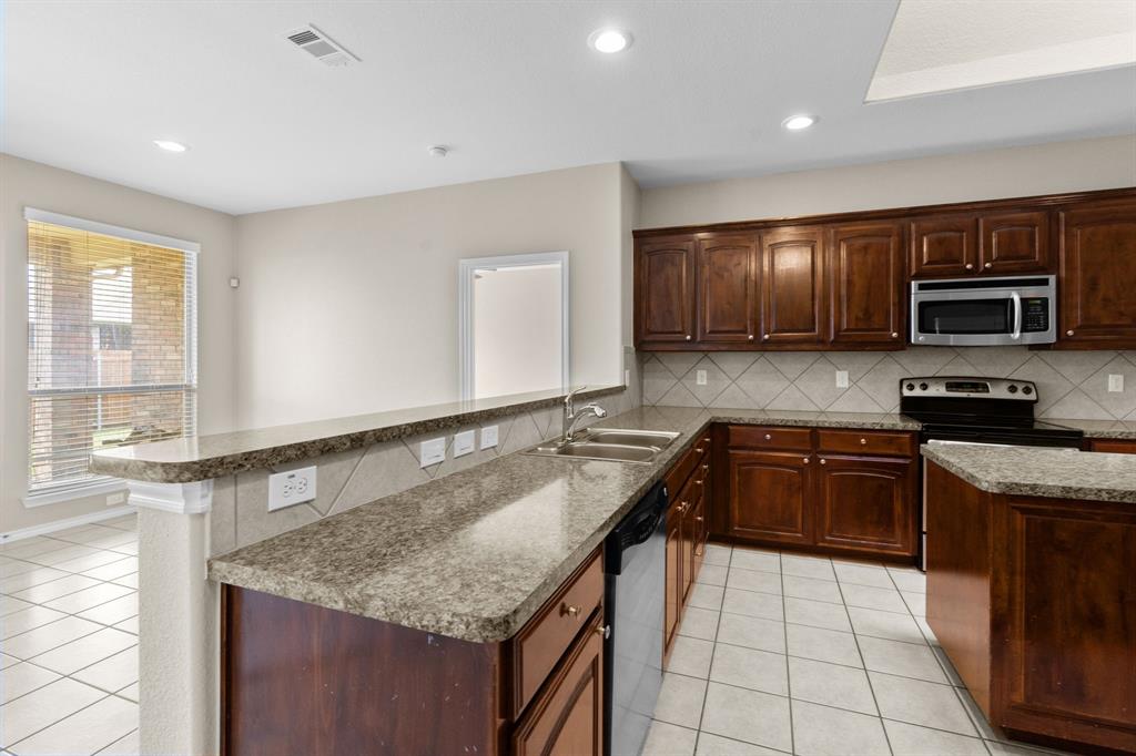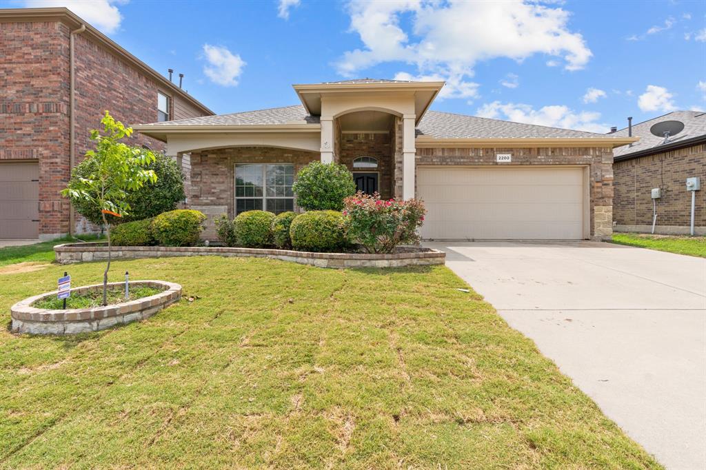 Location, Location, Location! Don’t miss this lovingly maintained one-story Tehama Ridge home in the desirable Northwest ISD. This gorgeous 3-bedroom, 2-bath residence features one of the community’s most popular open-concept floor plans, filled with natural light. Recent updates include updated paint, plush carpet, and luxury vinyl plank flooring. The chef’s kitchen offers a center island, breakfast bar, ample cabinetry, large pantry storage, skylight, cooktop range, built-in microwave, dishwasher, and sleek countertops — the perfect blend of function and style. The serene primary suite is privately tucked away. It has a spacious walk-in closet, a spa-like bathroom with double vanities, a relaxing soaking tub, and a separate shower. Step outside to a covered backyard patio, ideal for entertaining or enjoying peaceful evenings. Conveniently located diagonally across from O.A. Peterson Elementary, this home offers access to community amenities, including a pool and playground. The location provides comfort and connectivity just minutes from Alliance Town Center and major highways. Welcome home!