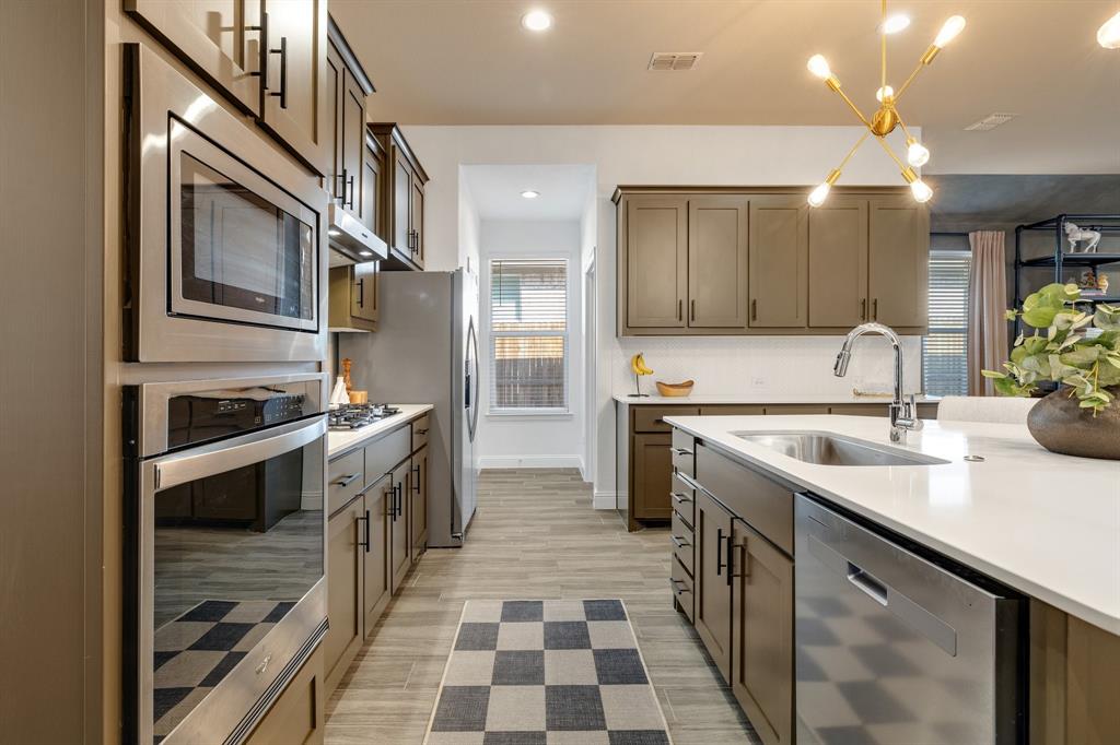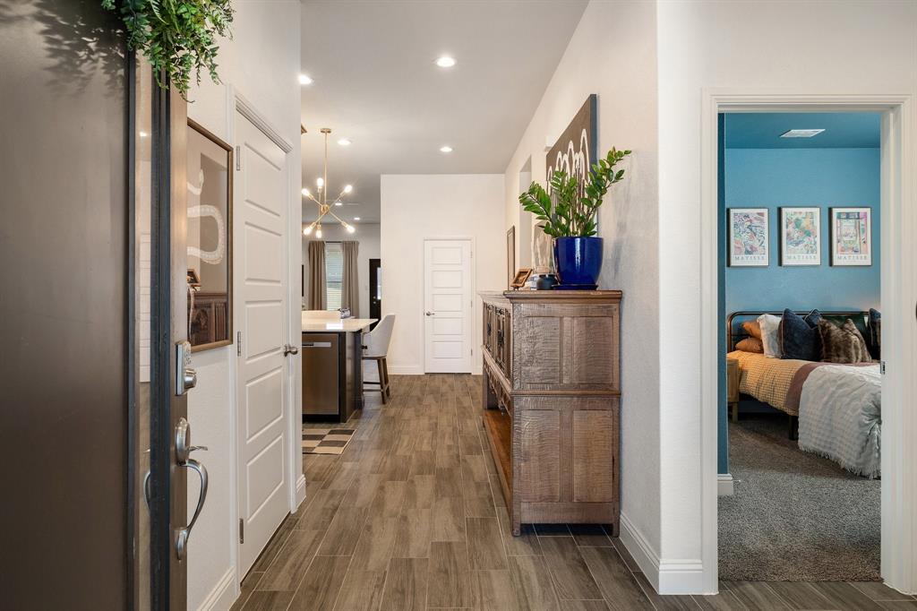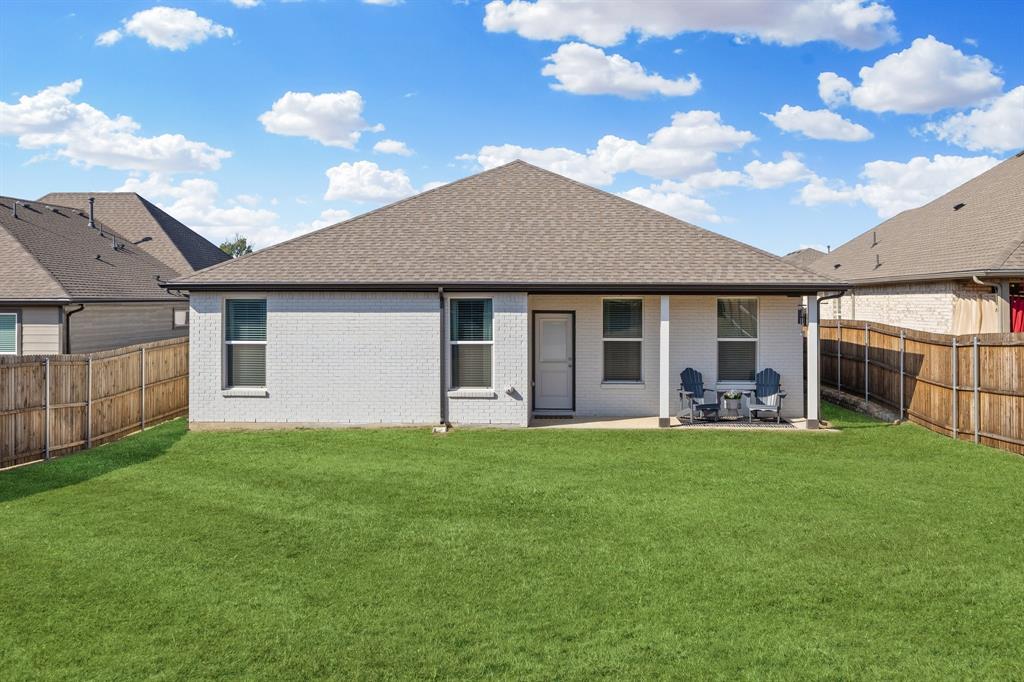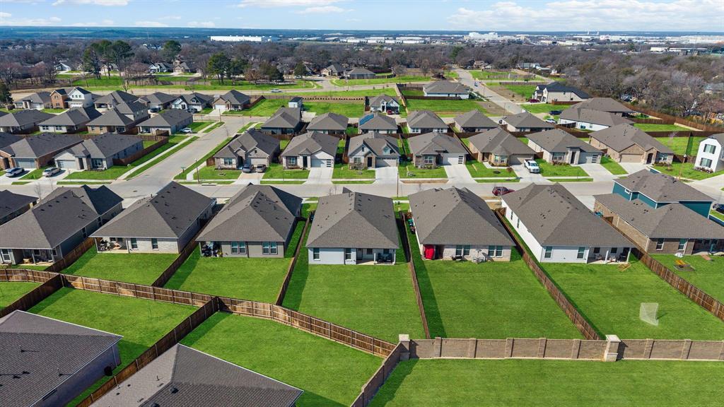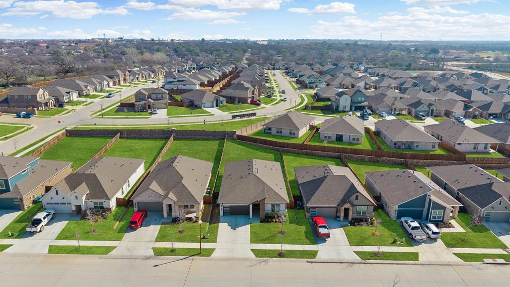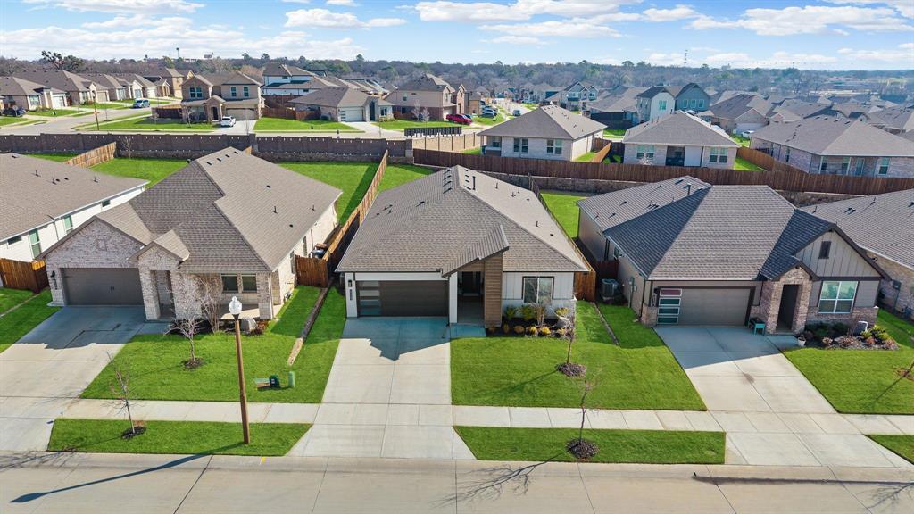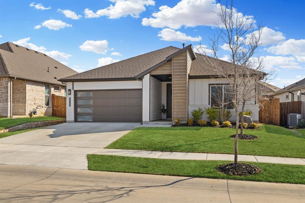Discover your dream home with this stunning, single-story 4-bedroom on an expansive lot. This open-concept design features a chef’s kitchen equipped with a spacious seating island, pendant lighting, plentiful cabinetry, a tiled backsplash, stainless steel appliances, and a roomy pantry. The living area is bright and inviting, while the luxurious primary suite offers a dual-sink vanity, oversized shower, linen storage, and a walk-in closet. Enjoy quartz countertops in the kitchen and bathroom vanities, and a luxury touches that includes tiled flooring in the entry, halls, living room, kitchen, and wet areas. This home is equipped with Smart Home Technology, a high-efficiency 16 SEER HVAC system, a tankless water heater, and a covered back patio. Additional features include full gutters, a 6-foot privacy fence, professional landscaping, and a full sprinkler system. Future amenities will include the Eagle Creek Clubhouse and Pool. Located near Downtown Denton, UNT, TWU, The Square, Rayzor Ranch Town Center, and major highways I-35E and I-35W, this home offers both convenience and comfort.