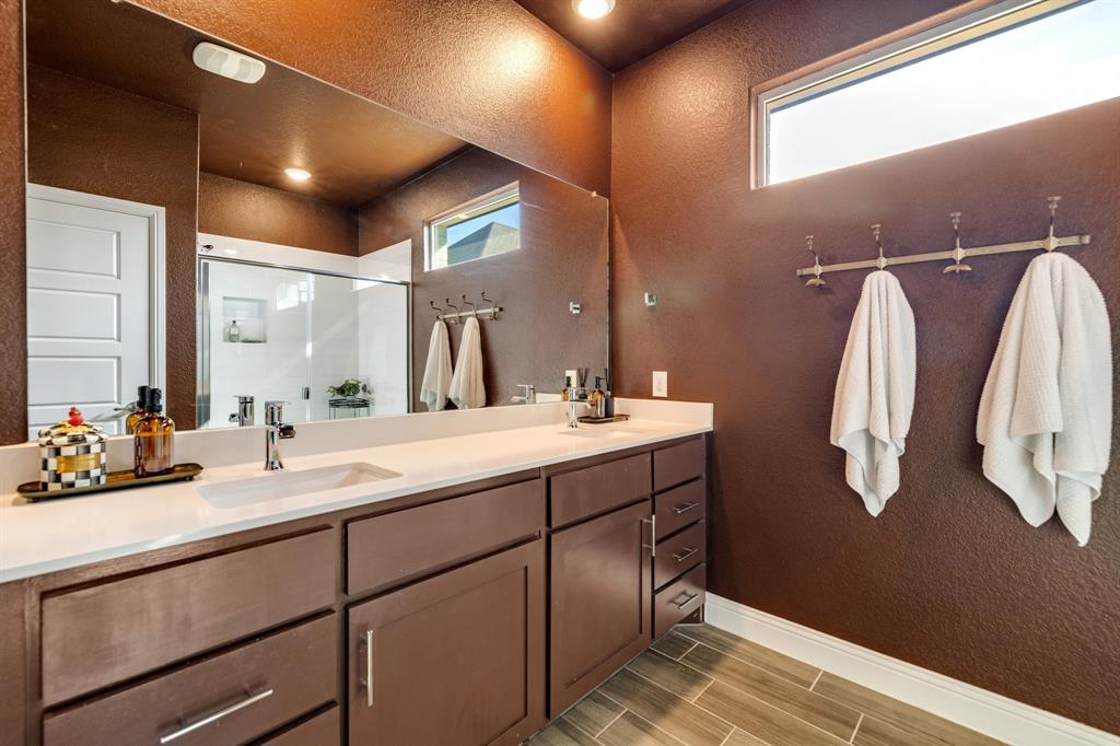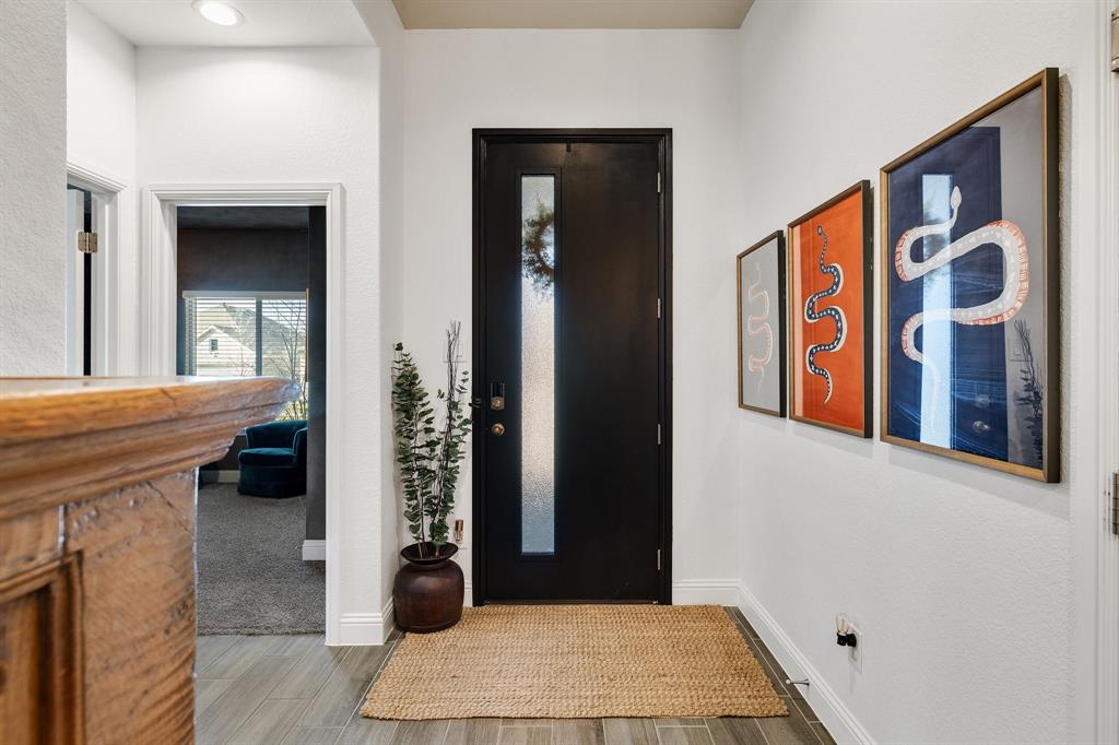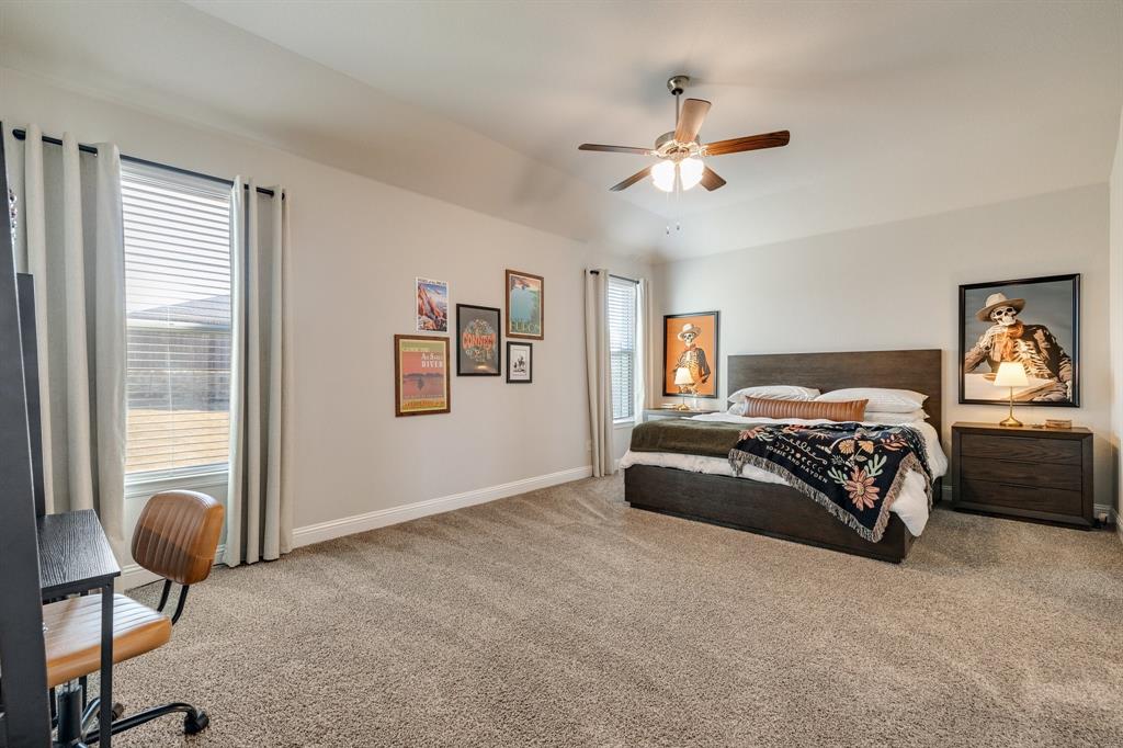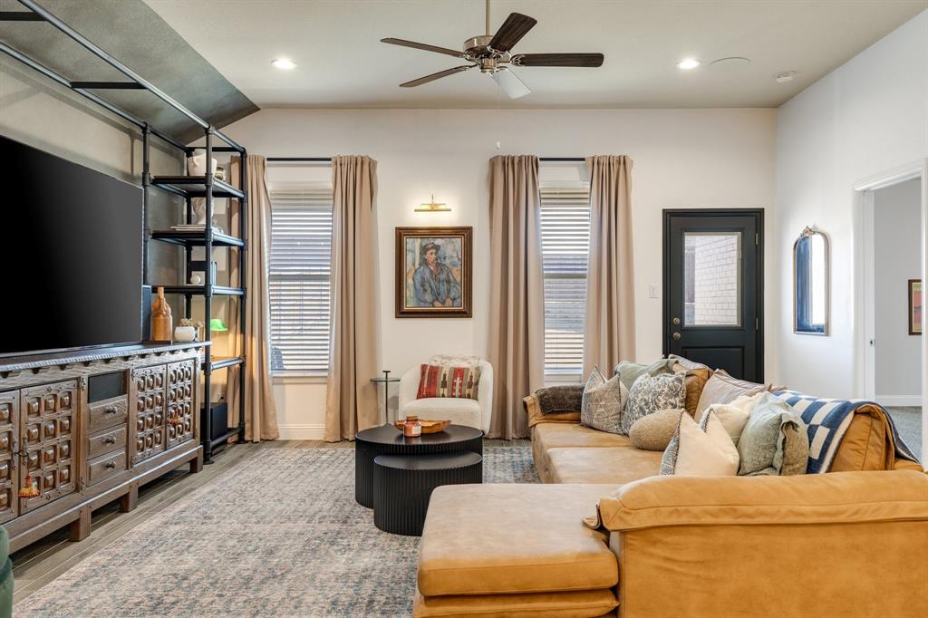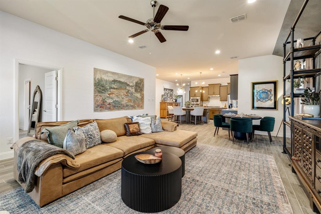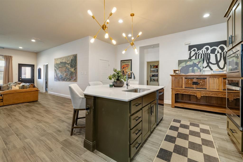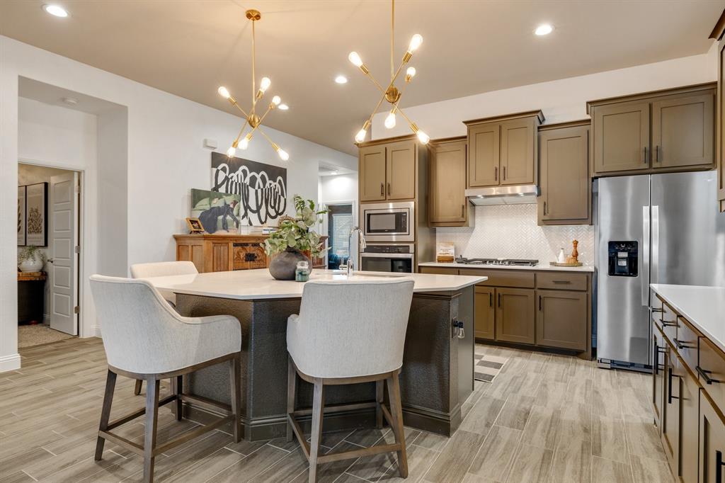 Discover your dream home with this stunning, single-story 4-bedroom on an expansive lot. This open-concept design features a chef’s kitchen equipped with a spacious seating island, pendant lighting, plentiful cabinetry, a tiled backsplash, stainless steel appliances, and a roomy pantry. The living area is bright and inviting, while the luxurious primary suite offers a dual-sink vanity, oversized shower, linen storage, and a walk-in closet. Enjoy quartz countertops in the kitchen and bathroom vanities, and a luxury touches that includes tiled flooring in the entry, halls, living room, kitchen, and wet areas. This home is equipped with Smart Home Technology, a high-efficiency 16 SEER HVAC system, a tankless water heater, and a covered back patio. Additional features include full gutters, a 6-foot privacy fence, professional landscaping, and a full sprinkler system. Future amenities will include the Eagle Creek Clubhouse and Pool. Located near Downtown Denton, UNT, TWU, The Square, Rayzor Ranch Town Center, and major highways I-35E and I-35W, this home offers both convenience and comfort.