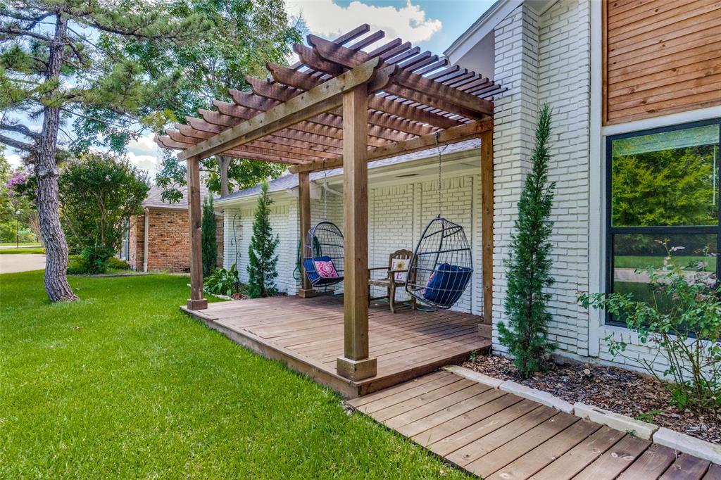 100% REMODEL FOR UNDER $1 MILLION!!! This Prestonwood Estates beauty was remodeled from top to bottom in 2023, with high quality finishes, right down to the roof, fence, and insulation. Situated on a quiet street across from the wooded greenbelt, you will enjoy what is arguably one of the best locations in the neighborhood! The large central living area is open to the kitchen, has raised ceilings, a gas log fireplace, doors to the patio, and is filled with natural light! Wonderful split layout with the primary suite, plus 2 bedrooms on one wing, and 2 more bedrooms on the other wing. Gorgeous kitchen with quartz countertops, Thor appliances only 2 years old, including a commercial grade gas range with 6 burners, a griddle, a pot filler, and double ovens. There is an abundance of counter space, breakfast bar seating, and the large Thor refrigerator stays.The luxurious primary bathroom has smart features, soaking tub with jets, an oversized shower with dual shower heads and a rain shower in the center. The bidet toilet is in a separate closet. This owners' suite has it's own patio, accessed through French doors. The home has 2 great flex spaces for office or gameroom options, one with a wet bar & wine fridge, and a generous covered patio to enjoy the backyard, which features lush landscaping and a horizontal board-on-board privacy fence.There is also a front deck with a pergola, to enjoy a serene of the wooded greenbelt.The garage is well-lit, and has an epoxy floor; the driveway is wide enough to park 3 cars. The oversized 5th bedroom with patio access could also be a 3rd living area. Roof replaced in 2023, inside AC unit 2024. List of the most recent upgrades in transaction documents. Walk to Spring Creek Elementary!