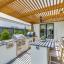 Step outside to a beautifully turfed backyard with lush landscaping, a resort-style pool, and a lighted pergola. The outdoor kitchen includes a grill, island, sink, and refrigerator and freezer drawers, creating an ideal setup for entertaining. For the little ones, a custom-built playhouse—complete with air conditioning and modeled after the main home—adds a whimsical finishing touch.