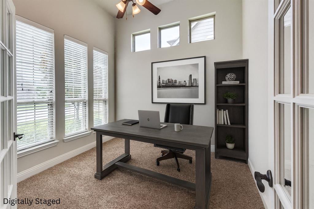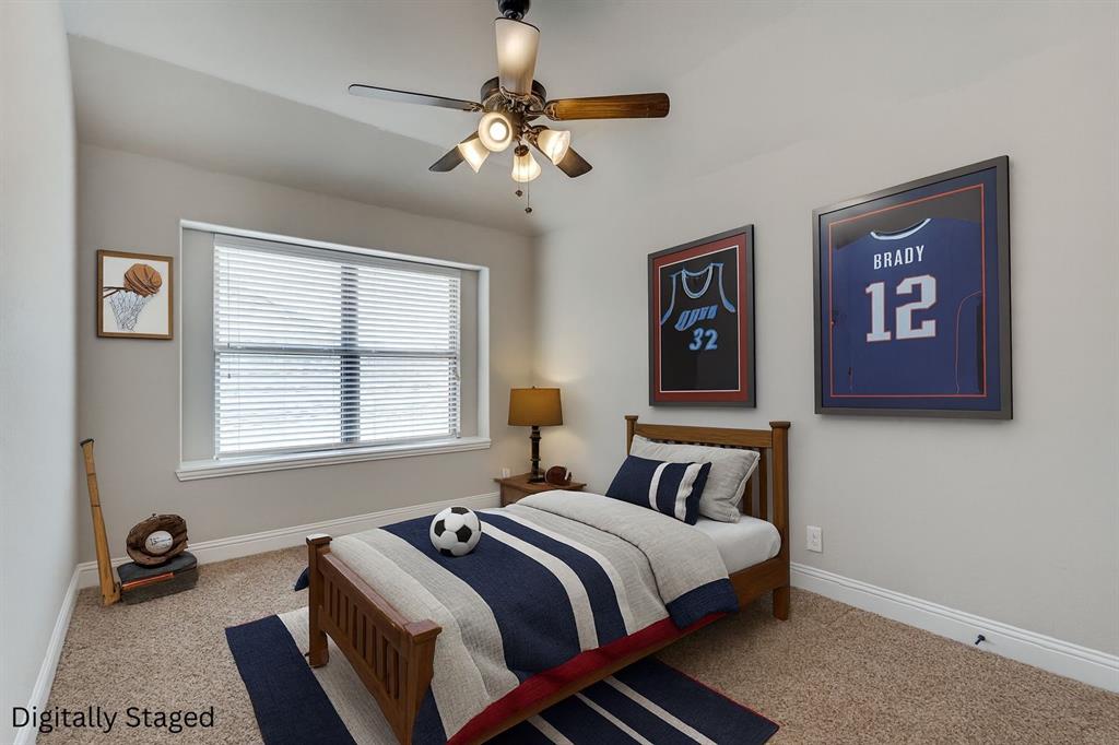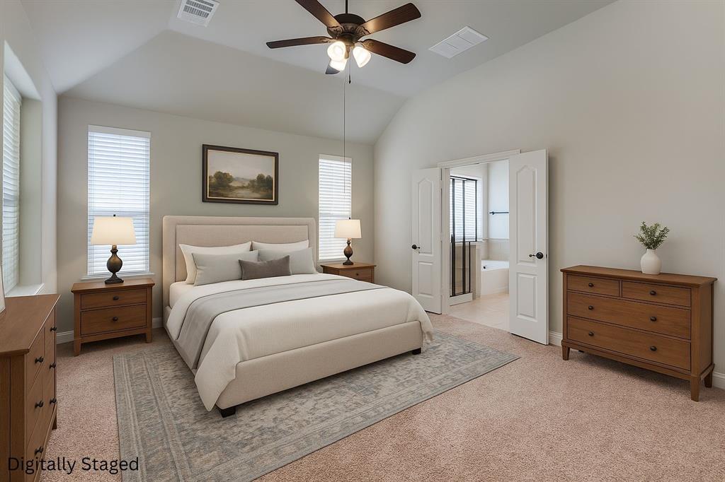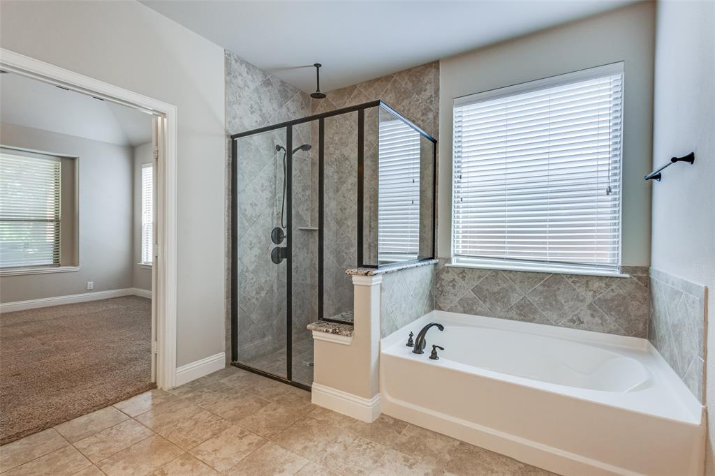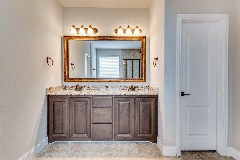 The dreamy primary suite is a true escape, complete with his-and-hers vanities and closets, framed mirrors, and a luxurious granite-accented bath. Additional highlights include: