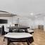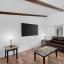 Inside, you’re welcomed by a bright open living area with stunning wood beam ceilings, a cozy whitewashed brick fireplace, and plenty of natural light streaming through large windows and French doors that lead to the backyard. The layout is thoughtfully designed, offering both functionality and space to entertain or relax with family.