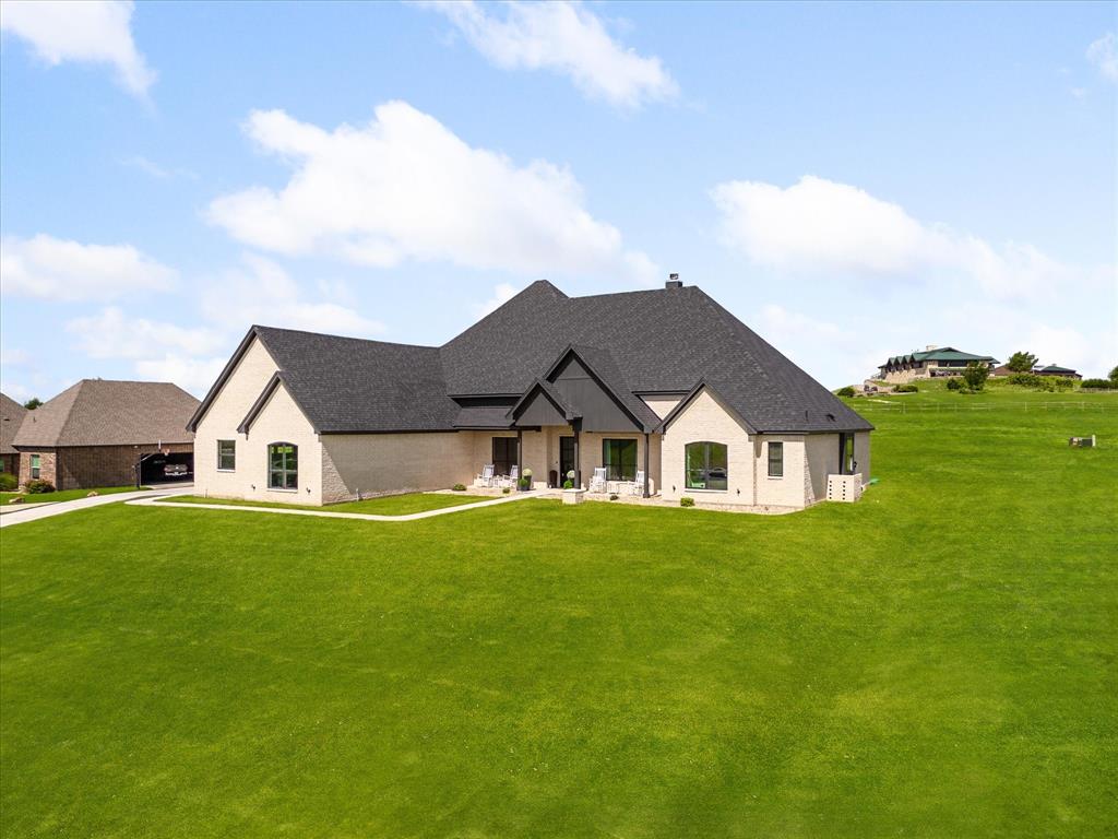 Additional features include a 4-car garage, dedicated office or flex room, hardwood floors, crown molding, and a beautifully landscaped yard. Located in Brock ISD and just minutes from I-20, this home offers luxury living with country charm and easy access to Fort Worth.